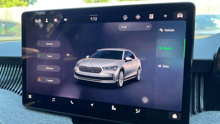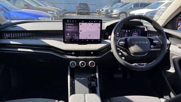 13" touchscreen display with satellite navigation, 4x USB-C ports (2x in front centre console and 2x in rear) (45W), Adaptive cruise control with speed assist, lane assist plus and traffic tram assist, Blind spot detection with door exit warning, Bluetooth system, CareConnect and Emergency Call, ChatGPT functionality, Driver fatigue sensor, Front assist with extended predictive pedestrian protection, Front cross traffic assist, PAS, Quick start all heating software functionality, Stop/start engine system, Traffic sign recognition, Turn assist with evasive assistance, Virtual Cockpit - 10.25" digital display, Voice control system, Washer for rear camera, Wireless charging for one smartphone (15W) with cooling function, Wireless smartlink apple carplay, SmartLink+ android auto, 8 Speakers, DAB Digital radio, Display cleaner, FM radio connection, Web radio connection, Acoustic side windows and interior noise suppression, Backdrop lighting, Body colour door handles, Body coloured door mirrors, Chrome window surround, Dark chrome grille surround, Electrically adjustable, heated, folding and driver side auto-dimming door mirrors with integrated indicators and logo projection, Frameless auto-dimming rear view mirror with USB-C, Ice scraper in fuel tank cap, LED 3rd brake light, Light assist with High beam control, Light assistant (coming/leaving home/tunnel light), Privacy glass, Rear fog light (x1), Rear side wing doors, Unique dark chrome design logo on alloy wheels, Windscreen wipers with rain sensor, 12V socket 1x centre console 1x boot, 2x cargo elements in boot, 2x light in boot, 3 seat bench in 2nd row, 60:40 Split folding rear seats, Bottle holders in the front doors 1.5 litre bottle and rear 1.5 litre bottle, Cup holder in front with easy open mat, Front armrest with storage box, Front comfort seats, Heated front seats, Height adjustable front and rear head restraints, Illuminated glovebox, Interior lights with control switches, Isofix child seat fittings in outer rear and front passenger seats, LED front and rear reading lights, Single front passenger seat, Skoda lettering on steering wheel, Storage compartment with cover, Storage pockets on back of front seats, Sun visors with illuminated vanity mirrors, Ticket holder on A Pillar, Tri zone climate control, Umbrella in driver's door, 3 rear seatbelts, 8 Airbags - Front driver and passenger, front side driver and passenger, centre, curtain front and rear, drivers knee, Crew protect assist, Driver and passenger seatbelts with warning light, Electronic parking brake, ESC including ABS, EBV, MSR, ASR, EDS, HBA, DSR, RBS, CBC, multi-collision brake (MKB) and Auto hold, Hill hold assist, Power operated child lock in rear doors, Alarm with interior monitoring tilt sensor and back up horn, Backrest remote release from trunk, Electronic engine immobiliser, Keyless start/stop, Remote central locking with SAFE system, Third key, Decorative front door sills,