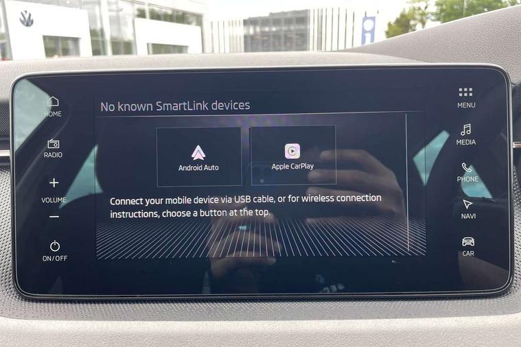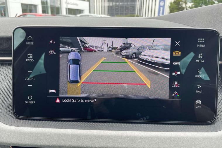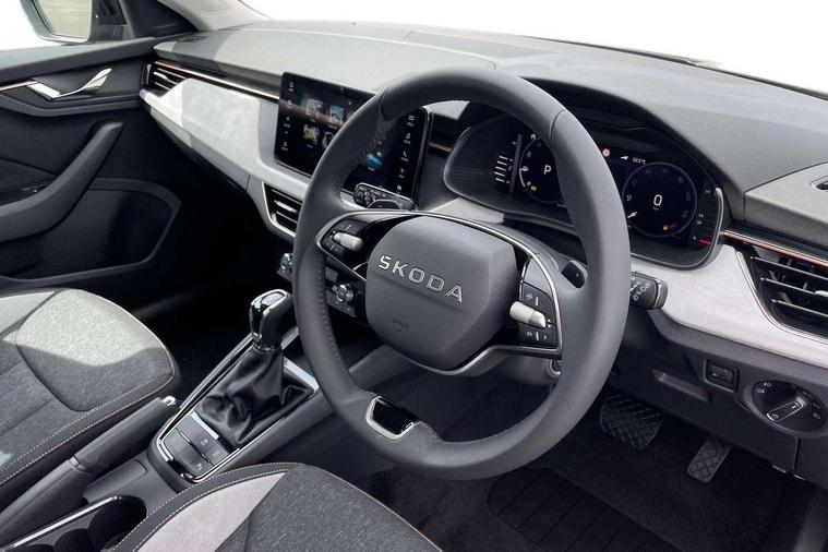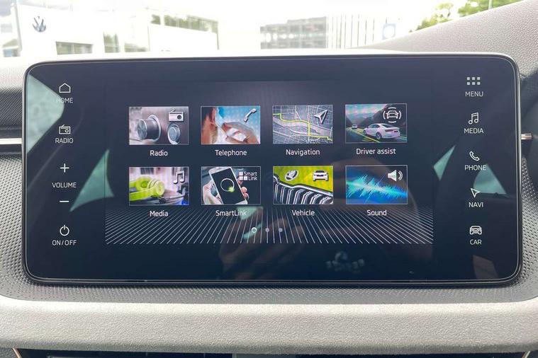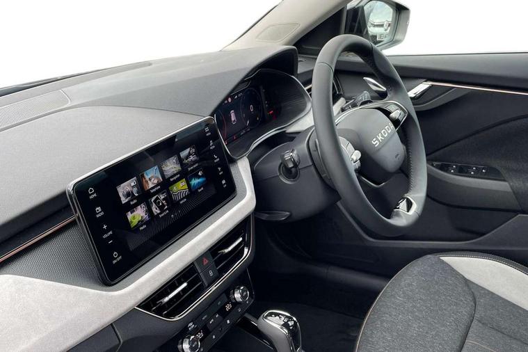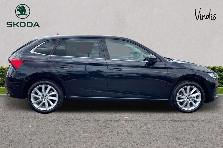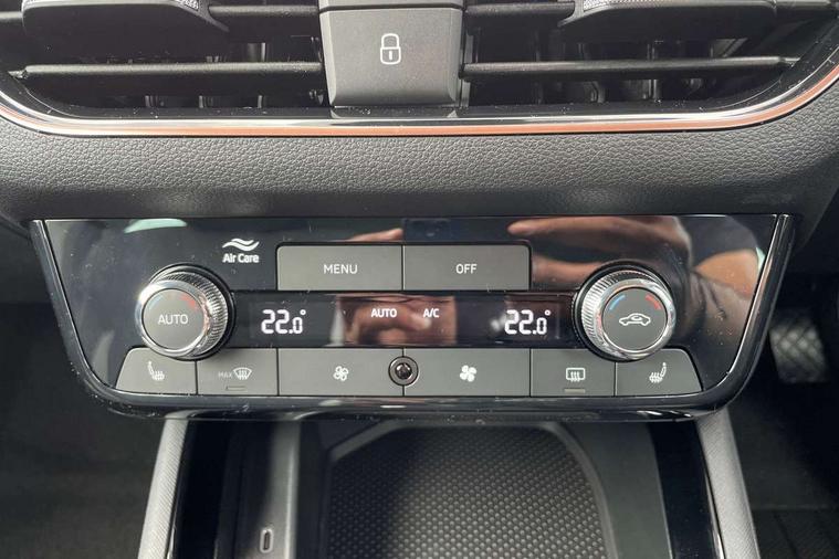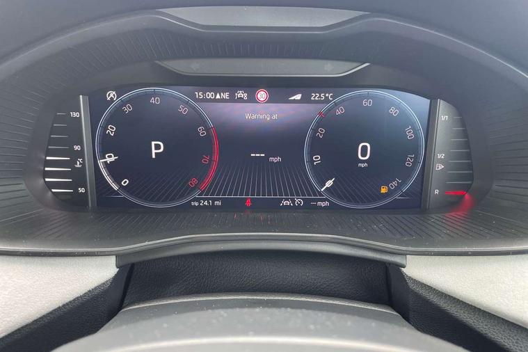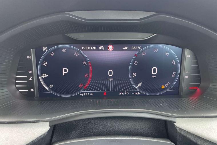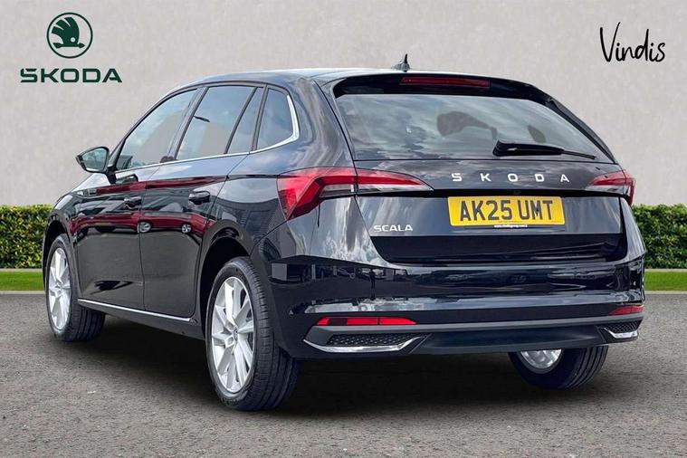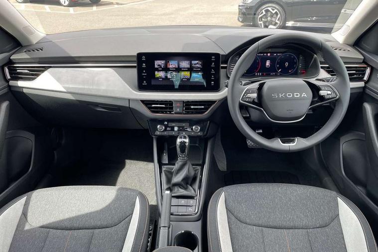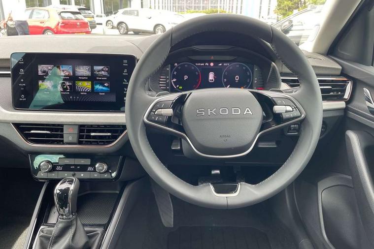 Advanced driver attention and drowsiness monitor, Bluetooth, e-Call (emergency call), Front assist system, PAS, Rear parking sensors, Rear view camera, Speed limiter, Tailgate, Traffic sign recognition, Virtual Cockpit - 10.25" digital display, Voice control system, Wireless smartlink, 4 USB C ports, 8 Speakers, 9.2" Skoda navigation display, DAB radio, Auto dimming rear view mirror, Automatic headlamp activation with Coming home and Leaving home feature, Automatic high/low beam, Automatic intermittent wipers, Body colour bumpers, Body colour door mirrors and handles, Chrome moulding around grille, Chrome window frames, Front and rear electric windows, Heated rear window, LED 3rd brake light, LED brake lights, LED daytime running lights, LED front turning lights, LED high beam, LED low beam, Light sensors, Privacy glass, Rear LED fog light, Rear side wing doors, Rear wiper, Tinted windows, Unique dark chrome design logo on alloy wheels, 12V socket in luggage compartment, 3 seat bench in 2nd row, Ambient lighting in white/red, Black / Copper armrest stitching, Cargo elements, Chrome inner door handles, Copper hotstamping, Door inserts in accent black, Driver and passenger sun visors with vanity mirror, Dual zone climate control, Front and rear roof lights, Front centre armrest, Front head restraints, Glasses storage in roof liner, Height adjustable driver seat, Height adjustable passenger seat, Ice scraper, Illuminated glove compartment, Inner circulation control with pollen filter, ISOFIX for front passenger seat, Isofix preparation for back seats, Leather gearknob and handbrake lever, Lodge cloth upholstery, Luggage net under rear parcel shelf, Manual lumbar support for front seats, Net package and top tether hooks in boot space, Pearl grey ceiling, Pocket on the back of both front seats, incl. mobile phone pockets, Rear centre armrest, Single front passenger seat, Skoda lettering on steering wheel, Textile floor mats, Third rear headrest, Ticket holder, Top tether for front passenger seat, Umbrella in driver's door, Convenience pack without rear camera - Scala, 3x3 point rear seatbelts, ABS, Child locks, Curtain airbags and front side airbags, Disc brakes, Driver and front passenger airbags, ESP, Hill hold control, Manual leather parking brake, One tone horn, Passenger airbag switch off function, Seatbelt reminder for driver and front passenger, Tyre pressure monitoring system, Anti theft alarm system with interior monitoring, backup horn and towing protection, Anti-theft wheel bolts, Remote central locking with 2 remote folding keys, SAFE function for remote central locking, Decorative inserts,