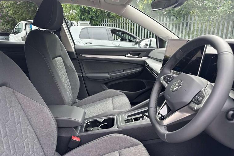 Activated carbon canister, Adaptive cruise control (ACC), Advanced driver attention and drowsiness monitor, Dynamic road sign display, E-Sim card for online connectivity, eCall emergency call system, Multi-color Digital cockpit pro, selection of different info profile possible, Multifunction front facing camera for distance control, Navigation system, Oncoming vehicle braking when turning including swerve support, Preparation for light assist system, Speed limiter, Speedo, rev counter, electronic odometer, trip, service interval display, exterior temperature and fuel gauge, Voice enhancer and voice control, Warning signal and warning light for front and rear seatbelts not fastened, We connect plus preparation, We connect preparation, Wireless app connect, Hybrid propulsion system, Petrol Particulate Filter, Start-stop system with battery regeneration (recuperation - energy recovery during braking), XDS electronic differential lock for improved traction and handling, 2 USB C ports in front, 2 USB charging sockets on the centre console in the rear charging capacity upto 45W, Comfort telephony + wireless charging, without wireless aerial connection, Digital radio reception (DAB), Diversity antenna for FM reception, Gaming platform via car app, Infotainment system with 12.9" display, Mobile phone interface with inductive charging feature, 3rd brake light, Auto headlights, Automatic headlamp activation with Coming home and Leaving home feature, Body colour door handles, Body colour door mirrors, Exterior ambient lighting with illuminated door handles, Exterior mirrors convex on the left and aspherical on the right, Front and rear electric windows, Heat insulating windshield made of laminated glass, LED daytime running lights, Rear exhaust tailpipe, Rear fog light on one side and reversing lights on both sides, Rear side wing doors, Rear tinted glass 65% light absorbing from B pillar backwards, Rear windscreen washer and wiper with interval delay, Remote electrically foldable door mirrors, puddle lights and reverse activated passenger's door mirror, Standard bumpers, Welcome light with surround lighting, 12V socket in front centre console, 12V socket in luggage compartment, 3 rear head restraints, 3 seat bench in 2nd row, Chrome plated radiator grille inserts, air vent surrounds and light switch surrounds, Front centre armrest, Front head restraints, Front seat lumbar support adjuster, ISOFIX anchors for child seats on outer rear bench seats and on front passanger seat compatible for i-Size, Luggage compartment lighting, Manual height adjustable front seats, Plastic gear knob, Rear cupholder and loadthough, Single front passenger seat, Soul black instrument panel, Split folding backrest with centre armrest and unsplit rear seat bench, Standard pedal cluster, Storm grey roof lining, Sun visors with illuminated vanity mirrors, Technology park and comfort pro package - Golf Hatchback, 3 point height adj front seatbelts + pretensioners, 3 rear three point seatbelts, ABS, Autonomous emergency braking front assist with pedestrian and cyclist monitoring, Child locks on rear doors, Driver and front passenger airbag with front passenger airbag deactivation, Electronic parking brake with auto hold, ESC (Electronic Stability Control), Extended pedestrian protection measures, Hill start assist, Rear disc brakes, Two tone horn, Tyre pressure loss indicator, Volkswagen roadside assistance, Anti theft wheel bolts, Preparation for alcohol interlock, Nature cross brushed decorative inserts for dashboard and front door panels and side trim,