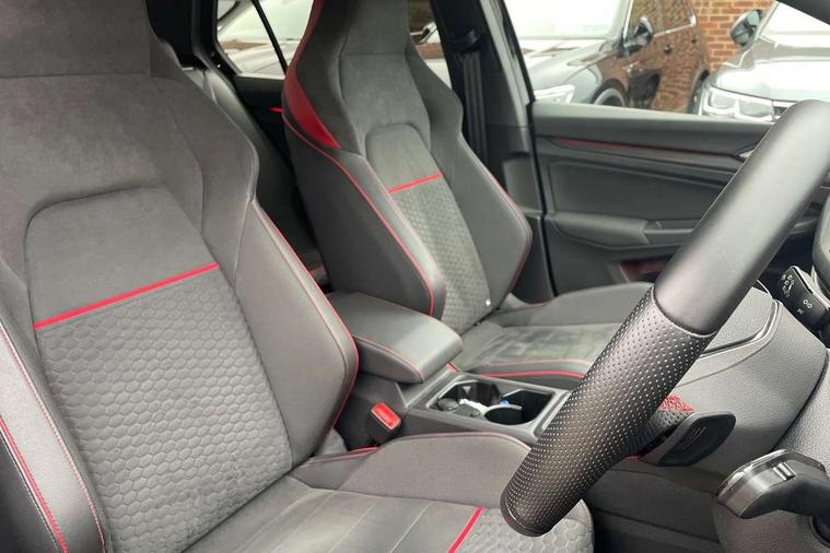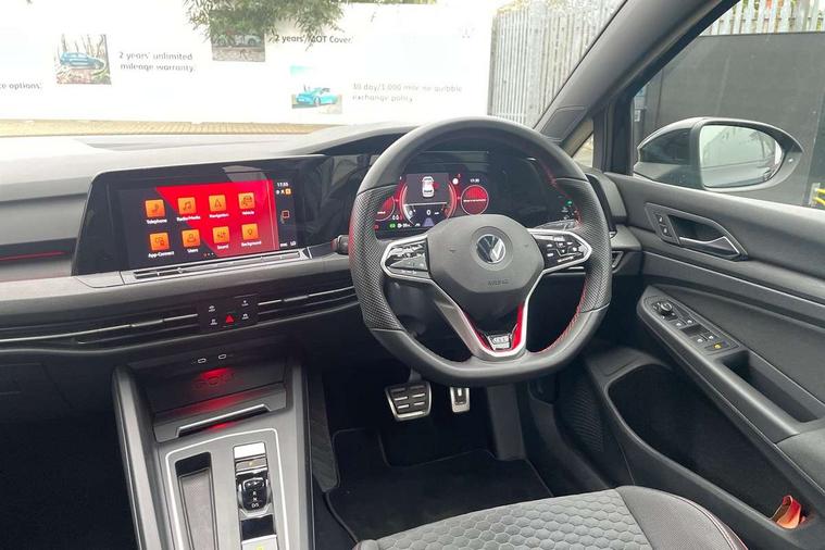 Adaptive cruise control (ACC) with speed limiter and front assist (reacting to vehicles pedestrians and cyclists), Car2X communication, Digital cockpit pro - 10.25" high resolution TFT dash display screen with customizable menus and information, Driver alert system, Driver profile selection, Dynamic road sign display, eCall - Emergency call service for SOS calls to emergency response, Lane assist, Lane change assistant, Mobile phone interface with wireless inductive charging function, Progressive steering, Speedo, rev counter, electronic odometer, trip, service interval display, exterior temperature and fuel gauge, Start/Stop function, Travel assist with emergency side assist with electrically foldable door mirrors, Warning buzzer and light for front seatbelts unfastened, Wireless app connect, Front differential lock, Petrol Particulate Filter, XDS electronic differential lock for improved traction and handling, Premium USB cable in choice of either Apple or Android smartphone compatibility, Advanced high beam control dynamic light assist for LED matrix headlamps, Auto dimming rear view mirror, Automatic headlamp activation with Coming home and Leaving home feature, Body colour bumpers, Body colour door handles, Body colour door mirrors with integrated indicators, Body colour rear roof spoiler, Chrome plated tailpipes (1 either side), Front and rear electric windows, GTI Clubsport styled bumpers, Heat insulating glass windscreen, Heated rear windscreen, High level 3rd brake light, Highway light, Illuminated front grille, IQ.Light - LED Matrix headlights, dynamic headlight control with advanced high beam control matrix dipped main beam + LED DRL + 22 LED lights, LED front fog lights with 5 honeycomb design, LED License plate illumination, LED rear combination lamp inlcuding dynamic turn signal, Performance rear spoiler, Rain sensor, Rear fog light on one side and reversing lights on both sides, Rear tinted glass 65% light absorbing from B pillar backwards, Rear windscreen washer and wiper with interval delay, Remote electrically heated, adjustable and foldable door mirrors, including door mirror puddle lights and reverse activated kerb-view adjustment on pa, Welcome light, 12V socket in front centre console, 12V socket in luggage compartment, 3 rear head restraints, 3 zone climate with controls in the rear, Aluminium gear knob, Ambient lighting - Customisable 30 colour ambient lighting, Ambient lighting, exterior illuminated styling elements at the sides, Black roof lining, Brushed stainless steel pedals, Centre console, Chrome plated surround to electric mirror button, window switch and air vent surrounds, Drivers and front passengers sun visors with vanity mirrors, Front + rear carpet mats, Front centre armrest with storage compartment, Front cupholders x 2, Front reading lights x 2 incorporating LED technology, Front seat lumbar support adjuster, Front sports seats, Glovebox, Height adjustable front seats, Height and reach adjustable steering wheel, Isofix child seat preparation for 2 rear child seats and front passenger seat, Leather wrapped multifunction sports heated steering wheel with paddle shift, Luggage compartment lighting, Removable luggage compartment cover, Split folding backrest with centre armrest and unsplit rear seat bench, Woven fabric storage compartments in front and rear doors, 3 point height adj front seatbelts + pretensioners, 3 rear three point seatbelts, ABS, Driver and front passenger airbag with front passenger airbag deactivation, Drivers and front passengers safety optimised head restraints, Electronic parking brake with auto hold, ESC (Electronic Stability Control), Extended pedestrian protection measures, Front and rear passengers curtain airbag system including front side airbags, Front disc brakes, Rear disc brakes, Two tone horn, Tyre pressure monitoring system, Alarm with interior protection and deactivation via infotainment system, Electronic engine immobiliser, Keyless entry with start/stop button on centre console, Black metal chrome decorative inserts in dash and front door trim panels, Soul dashboard, Tyre mobility kit Includes 12V compressor and tyre sealant,