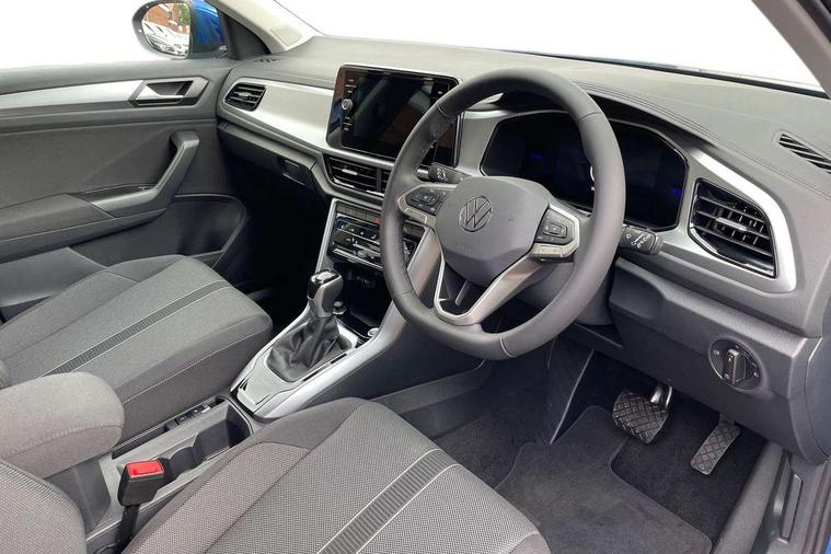 Advanced driver attention and drowsiness monitor, Dynamic road sign display, Emergency call service, Lane keeping system Lane Assist, Mobile phone interface, Modified key software - reduce switch off time for key status change to Long no motion, Online services, Park assist including front and rear parking sensors, Power assisted speed sensitive steering, Rear view camera, Service interval indicator, Tailgate/trunk lid release from outside, Think blue trainer driver tips and journey analysis, Warning sound and light for front seatbelts unfastened, Wireless app connect, Battery regeneration during braking, Front shock absorption, Rear shock absorption chassis with increased ride height, Start/stop function with battery regeneration, DAB Digital radio, Diversity antenna for FM reception, Music playback - MP3, WMA and AAC files, Premium USB cable in choice of either Apple or Android smartphone compatibility, SD card slot, Simultaneous pairing of 2 compatible mobile devices, Title and cover art display, We Connect and We Connect Plus functionality, Auto dimming interior rear view mirror, Automatic hazard lights activation under emergency braking, Automatic headlight control with LED separate daytime running lights with coming/leaving home function, Black roof rails, Body coloured bumpers and radiator grille with chrome trim and front fog lamps with chrome bezel, Body coloured exterior mirror housings and door handles, Electrically adjustable and heated door mirrors, Extended roof spoiler, Exterior mirrors aspherical on driver side, convex on front passenger side, External USB type C socket and charging sockets, Front windscreen wiper with intermittent wipe and 4 position delay, Heated rear window, LED 3rd brake light, LED rear combination lamps, LED rear number plate lights, Power windows with comfort operation and circuit breaker, Privacy glass for rear side windows and rear window, Rain sensor, Rear exhaust tailpipe, Rear fog light on one side and reversing lights on both sides, Rear side wing doors, Rear wash/wipe with intermittent wipe setting, Remote electrically foldable door mirrors, puddle lights and reverse activated passenger's door mirror, 12V power socket in centre console, 3 rear head restraints, 3 seat bench in 2nd row, 4 load lashing points in luggage compartment, Air care climatronic air conditoning system with active combination filter and 2-zone temperature control, Black stitching for floor mats, Ceramique roof liner, Cloth upholstery, Door and side trim panel in cloth, Drawer under drivers seat, Driver/front passenger seat height adjustment, Front centre armrest, Front comfort sports seats, Front cupholders x 2, Front reading light, Front seat back storage pockets, Glove compartment door with light, Instrument lighting, white adjustable panel illumination, Interior ambient lighting and surround lighting, Interior light delay, Isofix child seat preparation, Leather gearshift handle, Load-through provision with cup holder when folded down ('Unsplit rear seat bench, split folding backrest, with centre armrest), Luggage compartment lighting, Lumbar support for driver's and front passengers seat, Non-folding front passenger seat backrest, Single front passenger seat, Storage compartment in left and right luggage area, Storage compartment in rear doors, Storage compartments in driver and front passenger doors, Sunvisors with illuminated vanity mirrors, Variable boot floor, height adjustable and removable, Driver assistance pack without proactive passenger protection - T-Roc Life/Match, 3 point height adj front seatbelts + pretensioners, 3 point seatbelts in outer rear with ECE label, ABS, Child locks on rear doors, City emergency braking and pedestrian monitoring, Driver and front passenger airbag with front passenger airbag deactivation, Driver and front passenger safety-optimised head restraints, Drivers seatbelt reminder, Electronic parking brake, Electronic Stability Control (ESC) inc EDL (Electronic Differential Lock) and ASR (Traction Control), Front and rear passengers curtain airbag system including front side airbags, Front disc brakes, Hill start assist, Predictive pedestrian protection, Rear disc brakes, Two tone horn, Tyre pressure loss indicator, Volkswagen roadside assistance, Alarm with interior protection, Keyless locking and starting system keyless access with safelock, Pewter matt decorative inserts for intrument panel, centre console and door panels at the front, Trims for alloy wheels,
