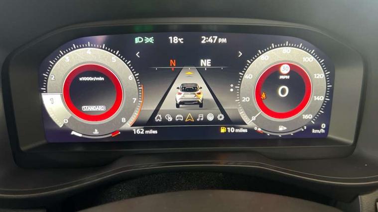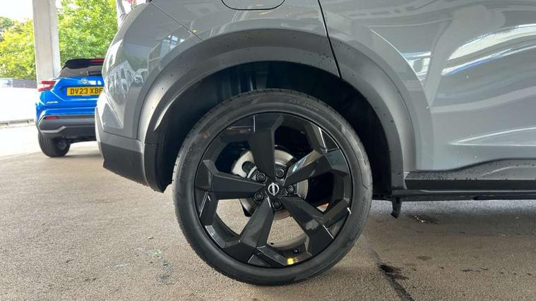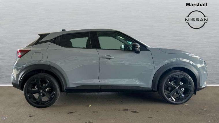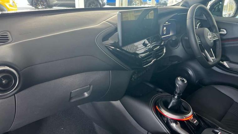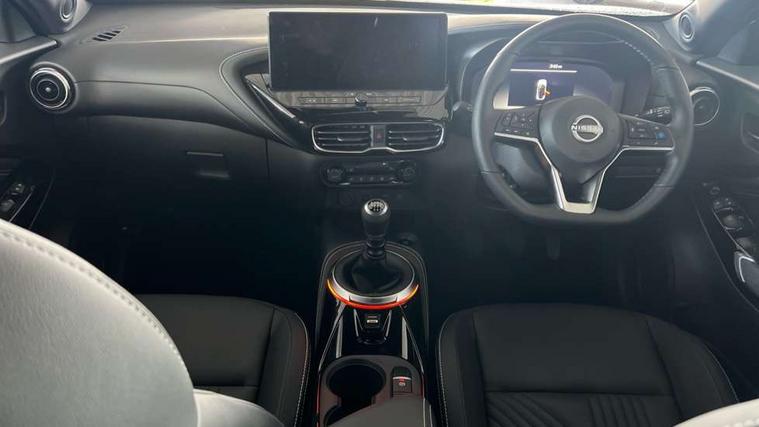 12.3" full colour TFT screen combimeter, Drive modes select (Eco, normal and sport), Emergency and breakdown call, Front parking sensor, Idle start/stop system, Intelligent driver alert system, Intelligent lane intervention, Lane departure warning system, Nissan connect 12.3" touch screen entertainment system, Nissan connect nav with TomTom traffic, Nissan connect services, Outside temperature sensor, Power Steering, Rear parking sensor, Stop/start button, Traffic sign recognition, Trip computer, Voice recognition, WiFi connectivity, Wireless Apple CarPlay and Google Android auto, Wireless Smartphone charger, 10 Bose speakers 8 speakers and 2 headrest speakers for driver/passenger seats, 2 X Rear console USB port, Bluetooth system, USB, Aux-in and 12V socket, Bose personal plus audio system, DAB Digital radio, Auto dimming frameless rear view mirror, Automatic hazard signal with emergency stop signal, Body colour door handles, Electrically adjustable door mirrors with integrated indicators, Follow me home headlights, Front and rear electric window with one touch driver window, High beam assist, LED 3rd brake light, LED daytime running lights, LED front fog lights, LED headlamps, LED rear fog lamp, LED rear lamps, One touch passenger window, Rear privacy glass, Rear side wing doors, Rear wiper, Roof spoiler, Shark fin roof antenna in solid Black, Solid black door mirrors, Three blink turn signal, 3 height adjustable rear headrests, 3 seat bench in 2nd row, 60/40 split folding rear seat, Card holder on driver sunvisor, Door ambient lighting, Driver seat back pocket, Driver side rear coat hanger, Driver/passenger sunvisors and vanity mirrors, Front and rear cabin lights, Front armrest, Front door pockets with bottle holders, Front head restraints, Front/rear passenger grab handles, Gear console ambient circle lighting, Height adjustable driver's seat, Internal chrome door handles, Luggage board, Luggage space lighting, Monoform sporty seats, Multifunction steering wheel, Passenger seat back pocket, Rear door bottle holders, Single front passenger seat, Smooth synthetic leather steering wheel, Synthetic leather kneepad, Synthetic leather shift knob, Synthetic leather upholstery, Telescopic steering wheel adjustment, Two cupholders in front centre console, Two rear isofix child seat anchorage points with top tether, Welcome light and console tray ambient lighting, Advanced safety shield pack - Juke Manual, Comfort pack - Juke, Heat pack with height adjustable passenger seats - Juke, ABS with EBD and brake assist, Active ride control, Active Trace Control, Driver and passenger airbags, Driver and passenger side airbags, Electric handbrake with auto hold function, Electronic Stability Programme (ESP), Front and rear curtain airbags, Height adjustable seatbelts, Hill start assist, Intelligent emergency braking with pedestrian and cyclist recognition, Rear door child safety locks, Seatbelt reminder for driver/front passenger and rear seats, Three 3 point rear seatbelts, Traction control, Tyre pressure monitoring system, VDC Dynamic Vehicle Control, Alarm, Immobiliser, Intelligent key and start push button with walk away lock and approach unlock functions, Remote central locking, 19" Alloy wheels, Tyre puncture repair kit,