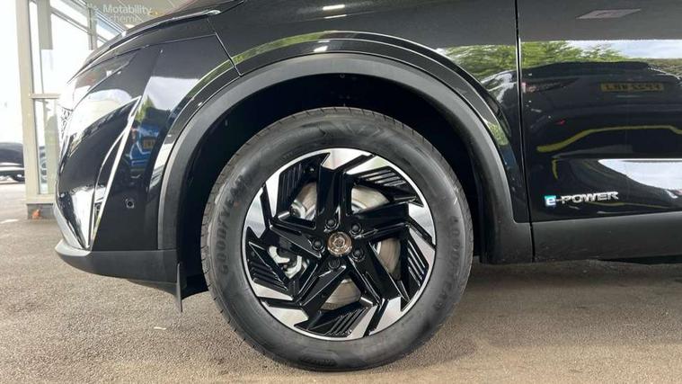 2 front USB-C ports, 2 rear USB-C ports, 360 degree Intelligent around view monitor with moving object detection, Blind spot warning, Drive assist custom mode, Drive modes (sport, normal, eco), Driver drowsiness and attention warning, e-Pedal step, Electric speed sensitive power steering, Emergency and breakdown call, Emergency lane keep assist, Emergency Stop Signal (ESS), Engine start/stop button, EV mode switch, Event data recorder, Front and rear parking sensors, Full Digital 12.3" TFT Digital Combimeter, Google virtual personal assistance, Idle stop/start system, In-car WIFI hotspot, Intelligent Cruise control (ICC), Intelligent driver alert system, Intelligent forward collision warning, Intelligent lane intervention, Intelligent speed assist, Lane departure warning system, Maximum speed limiter, Nissan connect 12.3 inch touchscreen infotainment system, Nissan connect navigation with google maps, Nissan connect services 2.0 (Google Automotive System), Outside temperature sensor, Propilot assist with Navi-Link, ProPilot park, Rear cross traffic alert, Remote control services - door locks, lights, horn and car locator, Reversing detection, Traffic jam pilot, Traffic sign recognition with legal speed adjustment, Trip computer, Wireless Apple CarPlay/Android Auto, Wireless charging pad, Limited slip differential, 6 speakers, AM/FM audio system with DAB, Bluetooth audio streaming, Auto dimming frameless rear view mirror, Auto rear wiper when reversing, Body colour mirror caps, Body coloured door handles, Bodyside mouldings, Chrome side window finisher, e-POWER badging, Electric auto folding door mirrors, Electrically adjustable and heated door mirrors with LED turn indicator, Follow me home headlights, High beam assist, Intelligent auto headlights, LED 3rd brake light, LED daytime running lights, LED Headlights, LED rear lights, One touch front and rear electric windows with remote opening and closing, One touch passenger window, Partially body coloured bumpers, Rain sensing wipers, Rear privacy glass, Rear roof spoiler, Rear side wing doors, Rear styling plate, Shark fin antenna, Silver roof rails, Splash free rain sensing wipers, Super UV and infrared cut glass, Three blink turn signal, 12v power socket in dashboard and luggage, 3 bench rear seats in 2nd row, 3 rear headrests, 60/40 split folding rear seat bench, Chrome interior door handles, Cloth upholstery, Driver and passenger sunvisors with illuminated vanity mirrors, Driver seat back pocket, Dual zone automatic climate control with pollen filter, e-POWER shifter, Electrically adjustable lumbar support for driver, Front centre console and armrest, Front cupholders, Front door with bottle holders, Height adjustable driver seat, Height adjustable front headrests, Height adjustable passenger seat, Luggage board system, Luggage space lighting, Multifunction steering wheel, Passenger seat back pocket, Rear door bottle holders, Rear seat armrest with 2 cupholders, RGB ambient light (Full area coverage), Single front passenger seat, Smooth leather steering wheel, Tilt/telescopic adjustable steering wheel, Two rear isofix child seat anchorage points with top tether, 3x3 point rear seatbelt pretensioners + load limiters, ABS with EBD and brake assist, Autonomous emergency braking, Child locks on rear doors, Curtain and front side, far side airbags, Driver and passenger airbags, Driver, passenger and 2nd row rear seat belt reminder, Electric handbrake with auto hold function, Front seatbelt pretensioners + load limiters, Height adjustable front seatbelts, Hill start assist, Intelligent blind spot intervention, intelligent front emergency braking, Intelligent rear automatic braking, Tyre pressure monitoring system, Vehicle dynamic control, Engine immobiliser, Intelligent key with walk away lock and approach unlock functions, Remote central door locking with deadlocking, Thatcham alarm, 18" Diamond cut alloy wheels, Tyre puncture repair kit,