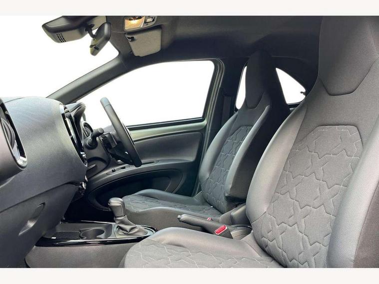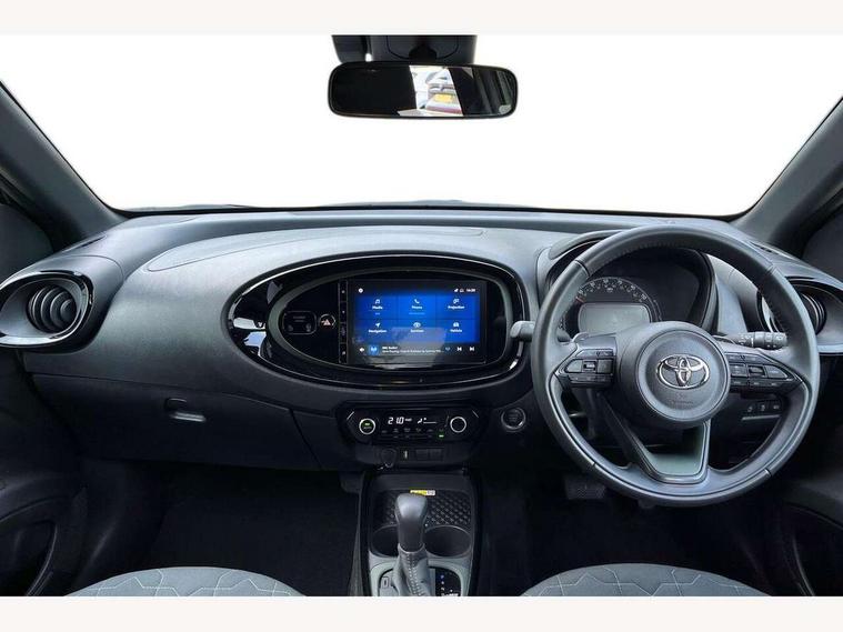 4.2" TFT colour screen, Adjustable speed limiter, Analogue speedometer, Bluetooth connectivity, Digital tachograph, Driver attention alert system, eCall emergency call system, ECO-driving indicator, Electric power steering, Front and rear parking sensors with auto brake, Intersection turn assist, Key reminder warning, Noise reduction kit, Pre collision system with emergency steering assist, Remote boot door release on key, Reversing camera with static guide lines, Smart entry and push button start, Speed limit display, Start and stop, Wireless charger, Wireless Smartphone Integration includes Apple CarPlay and Android auto, Vehicle Stability Control (VSC), 4 speakers, 9" HD multimedia display touch screen with Toyota smart connect, DAB digital audio broadcast, USB connector, Auto headlights, Auto wipers, Automatic headlights cut-off, Automatic high beam On/Off switch, Bicycle towing hook, Black fog light surrounds, Black side protection mouldings, Black wheel arch mouldings, Body colour door handles, Body coloured front bumper, Boot door scuff plate, Eclipse black rear bumper, Electric heated door mirrors, Follow me home headlights, Front and rear underruns in silver, Front fog lights, Front power windows, Gloss black door mirrors, Gloss black upper front grille, Headlight cut-off reminder, LED daytime running lights guide, LED front light guide, LED High mounted stop lamp, LED projector headlights, Manual day/night rear view mirror, Manual headlight levelling, Pagoda roof, Power adjustable door mirrors, Privacy glass, Rain sensor, Rear combination lights LED bulb type, Rear side wing doors, Rear windscreen defogger, Rear windscreen wiper, Remote hazard lights system, Short antenna, Variable intermittent windscreen wipers, 12v power outlet - front, 2 seat bench in 2nd row, 3 spoke leather steering wheel, 50/50 split folding rear seat, Adhesive roof headlining, Adjustable speed limiter switch on steering wheel, Audio and telephone switches on steering wheel, Auto air conditioning, Black roof lining, Body colour satin anodised insert on steering wheel, Boot light, Centre room light, Chrome interior door handles, Chrome surround on air conditioning buttons, Clean air filter, Floor mats, Front and rear cup holders, Front head rest deco art, Front head restraints, Gear shift indicator, Height adjustable driver seat, Intelligent adaptive cruise control switch on steering wheel, ISOFIX child restraint system on rear seats, Lane departure alert switch on steering wheel, Leather gearshift knob, Light blue ambient lighting in centre console, Manual tilt steering wheel, Manually reclining and sliding driver seat, Manually reclining and sliding front passenger seat, Multimedia switches on steering wheel, Paddle shift levers on steering wheel, Partial synthetic leather upholstery, Pollen filter, Rear door pockets, Rear head restraints, Remote air-conditioning system, Satin silver insert on gear shift knob, Single compartment glovebox with lights, Single front passenger seat, Soft tonneau cover, Sun visors with mirror on driver and passenger side, Voice recognition switch on steering wheel, Toyota safety sense pack - Aygo X, Anti lock braking system + Electronic brake force distribution, Child safety door lock, Emergency brake light signal (EBS), Hill start assist control (HAC), Passenger airbag on/off switch, Seat belt reminder for front and rear seats, Supplement restraints system (SRS) - 6 airbags, Traction control, Tyre pressure warning system, Immobiliser, Remote power door locks, Black wheel centre caps, Tyre repair kit,
