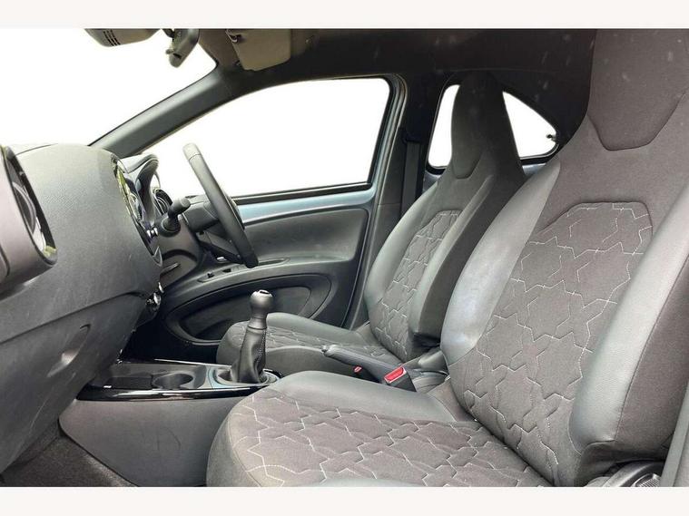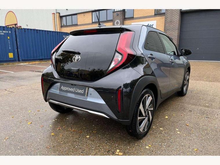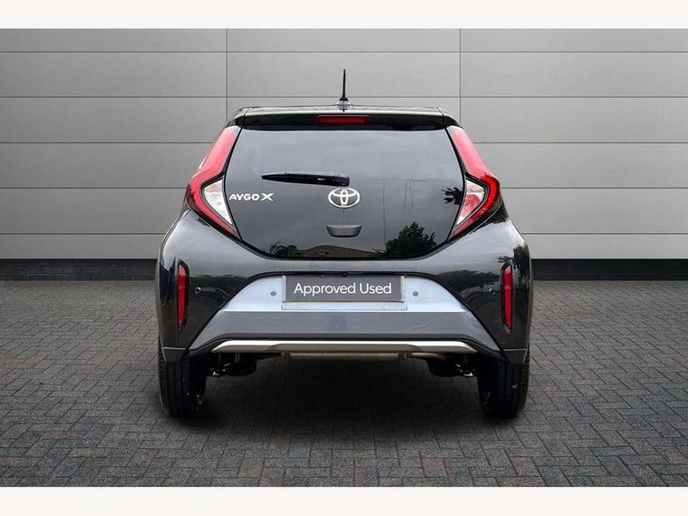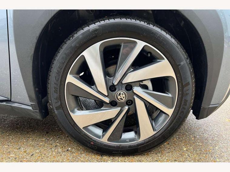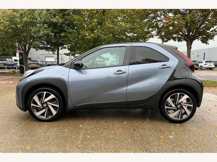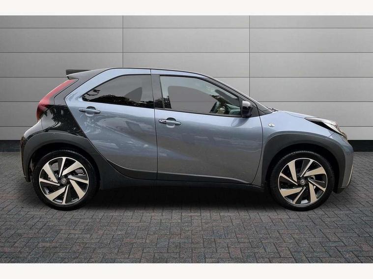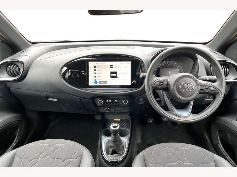 4.2" TFT colour screen, Adjustable speed limiter, Analogue speedometer, Bluetooth connectivity, Digital tachograph, Driver attention alert system, eCall emergency call system, Electric power steering, Front and rear parking sensors with auto brake, Intersection turn assist, Key reminder warning, Noise reduction kit, Pre collision system with emergency steering assist, Remote boot door release on key, Reversing camera with static guide lines, Smart entry and push button start, Smart phone integration with Apple car play/Android Auto, Speed limit display, Start and stop, Wireless charger, Vehicle Stability Control (VSC), 10.5" HD multimedia display touch screen with Toyota smart connect, 4 speakers, DAB digital audio broadcast, USB connector, Auto headlights, Auto wipers, Automatic headlights cut-off, Automatic high beam On/Off switch, Bicycle towing hook, Black contrast roof, Black fog light surrounds, Black side protection mouldings, Black wheel arch mouldings, Body colour door handles, Body coloured front bumper, Boot door scuff plate, Eclipse black rear bumper, Electric heated door mirrors, Follow me home headlights, Front and rear underruns in silver, Front fog lights, Front power windows, Gloss black door mirrors, Gloss black upper front grille, Headlight cut-off reminder, LED daytime running lights guide, LED front light guide, LED High mounted stop lamp, LED projector headlights, Manual day/night rear view mirror, Manual headlight levelling, Pagoda roof, Power adjustable door mirrors, Power back door, Privacy glass, Rain sensor, Rear combination lights LED bulb type, Rear side wing doors, Rear windscreen defogger, Rear windscreen wiper, Remote hazard lights system, Short antenna, Variable intermittent windscreen wipers, 12v power outlet - front, 2 seat bench in 2nd row, 3 spoke leather steering wheel, 50/50 split folding rear seat, Adhesive roof headlining, Adjustable speed limiter switch on steering wheel, Audio and telephone switches on steering wheel, Auto air conditioning, Black roof lining, Body colour satin anodised insert on steering wheel, Boot light, Centre room light, Chrome interior door handles, Chrome surround on air conditioning buttons, Clean air filter, Console box storage, Floor mats, Front and rear cup holders, Front head rest deco art, Front head restraints, Height adjustable driver seat, Intelligent adaptive cruise control switch on steering wheel, ISOFIX child restraint system on rear seats, Lane departure alert switch on steering wheel, Leather gearshift knob, Light blue ambient lighting in centre console, Manual tilt steering wheel, Manually reclining and sliding driver seat, Manually reclining and sliding front passenger seat, Multimedia switches on steering wheel, Partial synthetic leather upholstery, Pollen filter, Rear door pockets, Rear head restraints, Satin silver insert on gear shift knob, Single compartment glovebox with lights, Single front passenger seat, Soft tonneau cover, Sun visors with mirror on driver and passenger side, Voice recognition switch on steering wheel, Toyota safety sense pack - Aygo X, Anti lock braking system + Electronic brake force distribution, Child safety door lock, Emergency brake light signal (EBS), Hill start assist control (HAC), Passenger airbag on/off switch, Seat belt reminder for front and rear seats, Supplement restraints system (SRS) - 6 airbags, Traction control, Tyre pressure warning system, Immobiliser, Remote power door locks, Black wheel centre caps, Tyre repair kit,