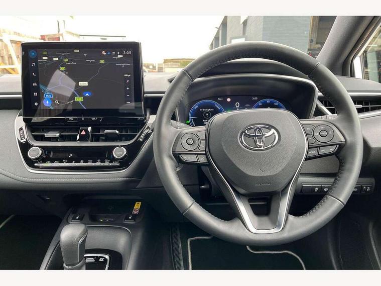 10.5" Multimedia display screen, Bluetooth telephone connectivity, Connected car functionality upgrade, tracker, remote status and e-care, Drive mode select (Eco, Normal), E-call, Electrically assisted power steering, EV drive indicator, Front and rear parking sensors, Full Digital 12.3" TFT Digital Combimeter, Intelligent clearance sonar, Key reminder warning, Lane Departure Alert (LDA) switch on steering wheel, Memory on adjustable speed limiter, MyT connected services, Proactive driving assist (PDA), Reversing camera, Smart entry and push button start, Smartphone integration with Apple CarPlay and wired android auto, Tailgate, Toyota remote services, Toyota smart connect navigation, Wireless charger, Gasoline particulate filter, Vehicle Stability Control (VSC), 6 speakers, AM/FM radio, DAB Digital radio, Front USB-C in dashboard, Smart voice assist/ Voice recognition, USB and Aux in connectors + 12V front outlet, Anti-jam protection on power windows, Auto up and down function on all power windows, Automatic headlights with high beam assist, Black centre and side air vents, Black meshed front grille, Black toyota logo in front, Body coloured bumpers, Body coloured door mirrors, Body coloured front spoiler, Body coloured outside door handles, Body coloured rear under guard, COROLLA alloy door scuff plates, Follow me home headlights, LED daytime running lights, LED front fog lights, LED headlights low, LED High mounted stop light, LED multi reflector in headlights, LED rear combi lights with LED lightguide, Manual day/night rear view mirror, Manual headlight levelling system, New grille pattern, Noise reduction layer on windscreen, Piano black diffuser, Power adjustable heated door mirrors, Power front windows, Power rear windows, Rain sensor, Rear side wing doors, Rear window defogger, Rear window wiper, Satin chrome insert on front air vents, Satin chrome insert on front door assist grips, Shark fin antenna, Time adjustment on intermittent wiper, Turning signal integrated indicators in door mirrors, Unique lower skirt, Unique side rocker with black insert, UV-filter on driver and passenger windows, 2 Shopping bag hooks in luggage compartment, 3 rear headrests, 3 seat bench in 2nd row, 3 spoke steering wheel with satin insert, 4 tie down hooks in luggage compartment, 60/40 split folding rear seat, Adaptive cruise control (ACC) switch on steering wheel, Adjustable speed limiter switch on steering wheel, Audio, multimedia and telephone switches on steering wheel, Black armrest on centre console box, Black gear shift console, Boot light, Centre room light, Driver and front passenger personal light, Driver and passenger assist grip, Driver and passenger sun visor with mirror and light, Dual zone automatic air conditioning with ECO mode switch, Electric lumbar support for passenger, Fabric upholstery, Front and rear cup and bottle holders, Front door pockets, Front head restraints, Front passenger seat, Front sliding fabric armrest, Gear knob, Heated front seats, Illuminated entry system in room lamp, ISOFIX seat fixing (2 fixings on rear outer seats), Leather gear shift with satin chrome on gear shift console, Manual height adjustable for driver and front passenger seat, Manually tilt with sliding driver and front passenger seat, Parcel shelf, Passenger seat back pocket, Pollen filter, Power adjustable lumbar support on driver seat, Power window switches with satin chrome inserts, Rear armrest with 2 cupholders, Rear passenger coat hooks (2), Remote air conditioning, Satin chrome inside door handles, Satin chrome surround on heater control panel, Satin chrome surround on speedometer, Sliding armrest on centre console box, Slow opening glovebox with lights, Textile floor mats, Tilt/telescopic steering column, Voice recognition switch on steering wheel, Whiplash Injury Lessening (WIL) feature (active headrest) for seats, Toyota safety sense 3 pack - Corolla, 3x3 point rear seatbelts, Adjustable driver and front passenger seat belt extender to top anchor point, Anti lock braking system + Electronic brake force distribution, Brake assist function, Child locks on rear doors, Downhill Assist Control (DAC), Electronic parking brake, Emergency brake light signal (EBS), Front passenger airbag on/off switch, Front seatbelt reminder, HAC - Hill start assist control, Rear seat belt reminder, Seatbelt pretensioners and force limiters, Supplemental restraint system (SRS) 7 airbags - dual driver, dual side curtain, side impact and driver knee airbags, Traction control, Tyre pressure warning system, Acoustic vehicle alert system (AVAS), Alarm with motion sensor and immobilizer, Power passenger window lock, Remote central locking + deadlocks, Satin chrome dash trim, Soft touch texture on upper dashboard, Stitching on lower dashboard, 16" 5 double spoke silver metallic alloy wheels, Tyre repair kit, Unique wheel finish with red wheel cap,