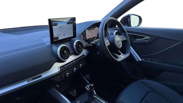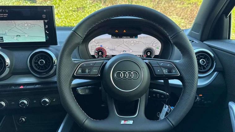 3D map display, Audi connect navigation and infotainment includes innovative services, Audi connect remote and control connects your vehicle to your smartphone, Audi drive select: S tronic - power steering assistance + engine + gearshift (modes: comfort, auto, dynamic, efficiency, individual), Audi smartphone interface - Apple carplay/Android Auto, USB connect, 2xSDXC card readers, voice control for navi, telephone, music and 3rd party apps, Audi virtual cockpit, Automatic start/stop system with recuperation, Bluetooth interface includes bluetooth audio streaming, Camera based traffic sign recognition, Cruise control, Distraction and Fatigue warning, E-call, Jukebox hard drive memory for music (10GB), Lane departure warning, MMI navigation plus with 8.8" touchscreen, Natural voice recognition, Power operated tailgate, Progressive steering, Rear parking sensors, Sport suspension, 6 passive loudspeakers, DAB Digital radio, USB type C port, Audi beam, Auto dimming rear view mirror, Black window trims, Bumper in full body colour paint finish, Electrically adjustable, folding, auto dimming and heated door mirrors with integrated LED side indicators, Front windscreen with grey tinted sunband, LED daytime running lights, LED headlights with dipped beam, high beam, position lights, indicators, LED rear lights, LED third brake light, Privacy glass - dark tinted rear and rear side windows from B-pillar backwards, Rear side wing doors, Rear wiper, Variable front intermittent wipers, Wheel arch trims in manhattan grey, 12v socket in front, 3 seat bench in 2nd row, 3 spoke flat bottomed multi-function leather sport steering wheel with gear shift paddles, 4-way electric lumbar support for front seats including manual seat height adjustment for both front seats, 60/40 split folding rear seat bench, Black carpets, Black cloth headlining, Front and rear head restraints, Front centre armrest, Front sport seats, Front/rear floor mats, Height/reach adjust steering wheel, Illuminated door sill trims with S logo, ISOFIX child seat mounting in front passenger and rear outer seats, Manual air conditioning, Single front passenger seat, Stainless steel pedals, Black styling pack - Q2, 3x3 point rear seatbelts, 6 airbags - Front, curtain and front side airbags, Electromechanical parking brake, Electronic stabilisation control including ABS, ASR and EDL, Front passenger airbag deactivation, Hill hold assist, Pre-sense front with pedestrian recognition, Seatbelt monitoring, Tyre pressure warning light with visual and acoustic warning, Warning triangle and first aid kit, Anti theft alarm, Anti theft wheel bolts, Electronically operated child locks, Remote central door locking, Aluminium interior element, Black dashboard, Gloss black centre console, Matt brushed aluminium trim inlays, Tool kit,