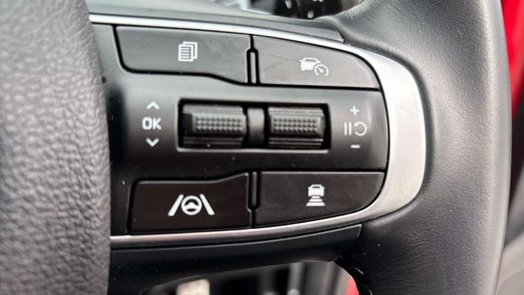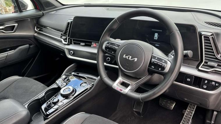 12.3" Display with navigation, 4.2" supervision colour cluster display, Apple car play/Android Auto with voice control, Drive mode selector, E-call, Forward collision avoidance assist (FCA) - city/pedestrian/cyclist/junction covering, Front and rear parking sensors, Highway Driving Assist (HDA), Intelligent speed limit assist, Kia Connect (UVO), Lane Following Assist (LFA), Lane keep assist, Low washer fluid warning, Rear view monitor, Reversing camera system integrated into centre fascia screen, Smart cruise control with stop and go functionality, Speed sensitive power steering, Trip computer, Windscreen washer level indicator, Intelligent Stop and Go, 6 speaker audio system, Bluetooth audio streaming, DAB Radio with MP3, Rear USB port, Steering wheel mounted audio controls, USB C type charging ports on centre console, USB C type charging ports on side of front seats, USB port for connection of a media device, All round electric windows with drivers and front passenger auto up/down function, Automatic headlight control system, Automatic window defogger, Backlite glass heated with timer, Body colour and black bumper with silver accents, Body colour exterior door handles, Body colour radiator upper garnish and door garnish, Electrically adjustable/heated/folding door mirrors with LED indicators, Front and rear chrome skid plates, Gloss black door mirrors, Gloss black radiator grille, Gloss black side sill and wheel arch body mouldings, Glossy black roof rack, High beam assist, Interior electrochromic mirror, LED daytime running lights, LED front fog lamps, LED headlamps (low and high beam - MFR type), LED High mounted stop light, LED rear combination lamp, Rain sensing wipers with aero blades, Rear fog lamp, Rear privacy glass, Rear side wing doors, Rear spoiler, Rear wiper, Satin finished beltline, Trailer stability assist, 12V power socket in front centre fascia and luggage compartment, 2nd row personal lamps, 3 seat bench in 2nd row, 3 x passenger assist grips, 40/20/40 split folding rear seat, All-round height adjustable headrests, Black headlining, Centre console storage box, Cupholders in rear armrest, D-Shaped sports leather steering wheel and perforated inserts with GT-Line logo, Door courtesy lamps, Drink holder at centre armrest, Driver and front passenger side sunvisors with illuminated vanity mirrors, Driver's seat manual height adjust, Drivers seat power lumbar support, Front and rear door storage, Front seat and rear pockets, Front/rear centre armrests, Gear shift indicator, Glovebox illumination, Interior door lock/unlock function, ISOFIX Child seat top tethers and anchor fixings outer rear seats, Luggage area light, Luggage area load cover, Luggage net with hooks, Metal paint interior door handles, Overhead console lamp, Paddle shift controls, Rear coat hooks, Single front passenger seat, Sports pedals, Suede leather upholstery, Three zone climate control, Tilt/telescopic adjustable steering wheel, Ventilation ducts to rear compartment, Active front headrests, All round 3-point seatbelts, Anti-lock braking system (ABS), Dual front side airbags, Dual horn, Electronic parking brake, Electronic stability control with downhill brake control, Front passenger airbag cut-off switch, Front seatbelt pretensioners + load limiters, Height adjustable front seatbelts, Hill start assist control (HAC), Impact sensing auto door unlocking, Multi collision brake assist, Rear door child safety locks, Rear seat alert system, Traction control, Twin curtain airbags, Twin front airbags, Tyre pressure monitoring system, Advanced anti-theft system including immobiliser and alarm, Door deadlocks, Engine Start/Stop Button with Smart Entry System, Locking wheel nuts, Speed sensitive auto door locking, Visible vehicle identification number, Aluminium pattern finish centre fascia and door garnish, 18" Alloy wheels, Tyre mobility kit,