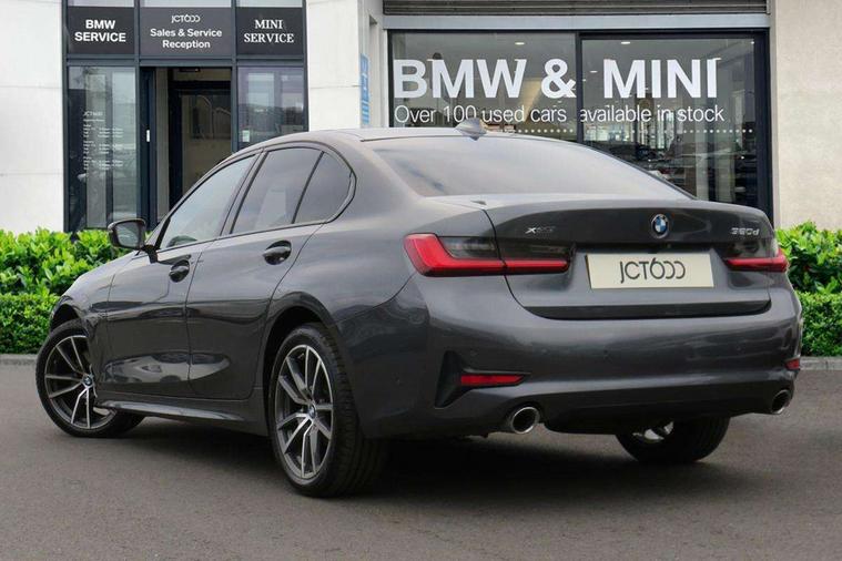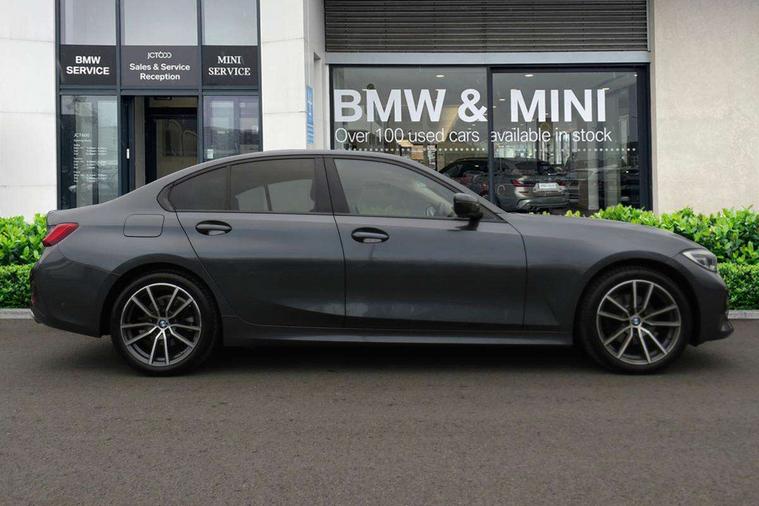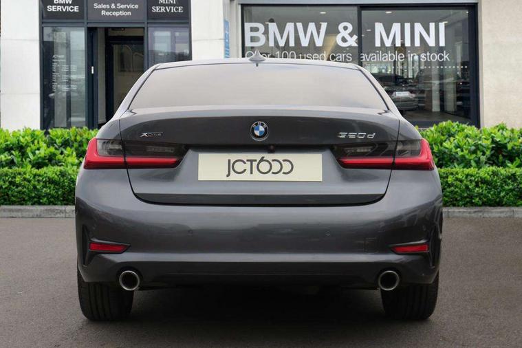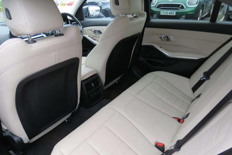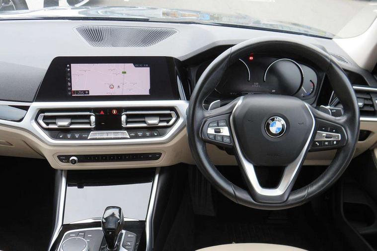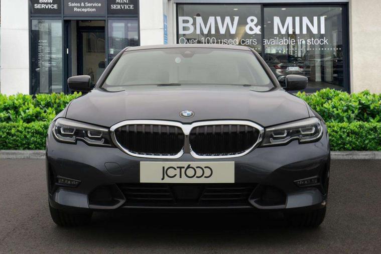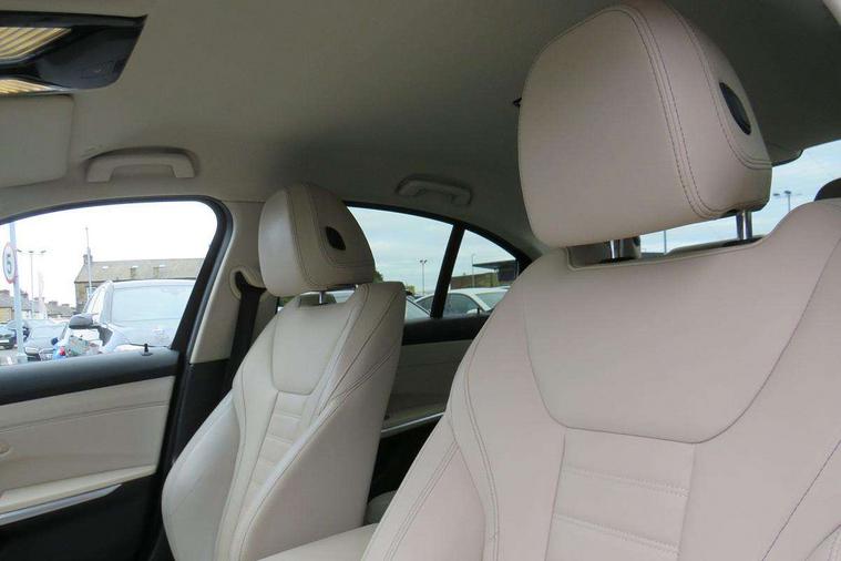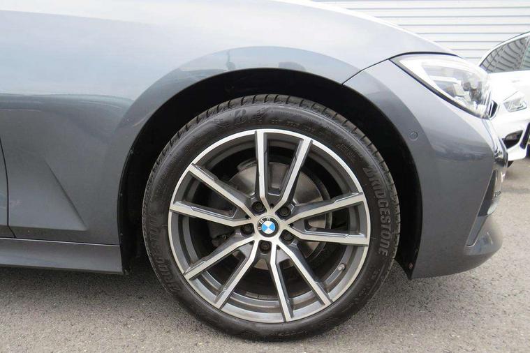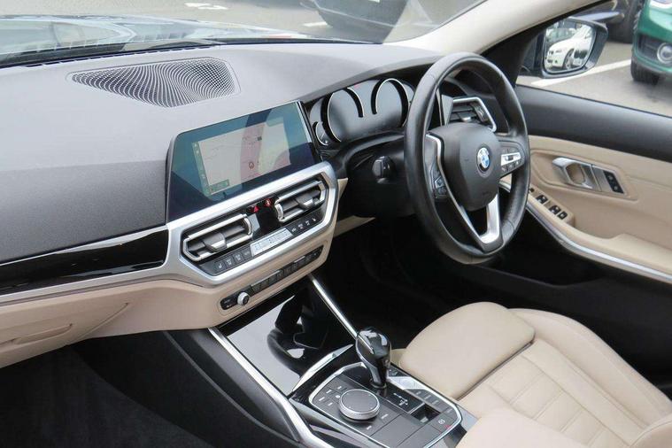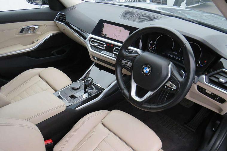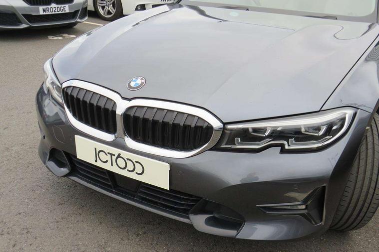 Active guard plus, Attentiveness assist, Auto start-stop, BMW iDrive controller on centre console, BMW Live Cockpit Plus with 8.8" central information display + nav function, BMW Online services, BMW Teleservices, Brake pad wear indicator in front and rear, Check Control warning system for monitoring of lights and door/luggage compartment open warning, Condition based service, Cruise control with brake function + speed limiter, Electric Power Steering (EPS) with Servotronic, Instrument cluster with speedometer with mph readout, tachometer, fuel gauge and oil temperature gauge, Oil sensor for level and grade, On board computer - average speed+fuel consumption, service interval, clock/date, odometer/trip meter, outside temperature display and ice warning, Optimum shift indicator, Personal Profile, Battery cut-out switch, Diesel particulate filter, Drive performance control with ECO PRO comfort + sport mode, Electronic differential lock, Incorrect fuelling protection, Larger capacity fuel tank, Sport automatic transmission with steering-wheel mounted gearshift paddles and launch control, Stroke dependent dampers, DAB tuner, Stereo speaker system with 2 mid range speakers in the front door trims and rear parcel shelf + 2 central bass speakers underneath the front seats, Acoustic glazing, Active airstream chrome frame kidney grille with 8 high gloss black vertical slats, Automatic headlight beam throw control with load dependent regulating reaction, dynamic compensation of braking dive and acceleration squat, Body colour - fuel filler flap, front and rear bumpers, door handles and mirror caps with integrated turn indicator + bottom segment in matt black, Body colour roof mouldings, Brushed aluminium inserts in the front door sill finishers with BMW designation, Dynamic brake lights, Extended LED headlights, Exterior mirrors - electrically folding with anti-dazzle, Front and rear bumper system with replaceable deformation elements, Front and rear electric windows with open and close fingertip control, anti trap facility and comfort closing, Green tinted heat protection glazing, High gloss black front bumper with specific design elements, High gloss black rear bumper with specific design elements, High gloss shadow line exterior trim, Interior rear view electrochromatic mirror with automatic anti dazzle function, LED front fog lights, Left and right split exhaust tailpipes, Lightweight engineering, Matt black exterior B pillar, Model designation on right side of tailgate, Rain sensor with automatic headlight activation, Shark fin antenna, T-shaped design element right and left in black high gloss, Two part LED tailights in L-shape with components in smoked glass, brake light, LED turn indicator and rear fog light, Visible VIN plate, Welcome lights in interior and door handle area, Windscreen wipers with integrated washing jets, 12V power socket in front storage compartment, 2 front cupholder in centre console with clamping elements and matt black inlay, 3 rear seats with non folding headrests with 3 point seat belts, 4 pieces lashing eyelets in luggage compartment, 40:20:40 split folding rear bench seat, Ambient lighting, Armrest integrated in front and rear door trim + front centre console armrest, Centred top Luggage compartment lights, Four grab handles integrated in roof lining, Front and rear door pockets, Front and rear velour floor mats, Front head restraints, Front sport seats, Heated driver and front passenger seats, Height adjustable mechanically and infinitely variable steering column, Illuminated glove compartment with separate small compartment, Interior lighting - front centre over interior mirror with soft light, rear centre and front and rear footwell lighting, Rear centre armrest with 2 cupholders, Rear centre console with storage compartment and ventilation grille, Steering column length adjustment lever, Sunvisors with vanity mirrors and ticket pocket, Three spoke multifunction sport leather steering wheel, Three zone automatic air conditioning, Through loading system with 40/20/40 split folding rear seat, Toolkit located in luggage compartment, Vernasca leather upholstery, Connected pack plus - 3 Series Saloon/Touring, Parking assistant pack - 3 Series, 2 tone horn, ABS, Automatic Stability Control (ASC), BMW emergency call, Brake assist function, Brake drying, Brake energy regeneration, Braking pre-tensioning, Child proof locking system in rear door, Child seat ISOFIX attachment rear outer seats, Cornering brake control (CBC), Crash sensor activating of airbags, Unlocking doors, hazard warning lights, interior light, safety battery terminal, Driver and front passenger side airbags, integrated in the door side seat backrest bolsters for all seat variants, Driver/Front Passenger airbags, Dynamic brake control, Dynamic Traction Control - DTC, Electromechanical parking brake with automatic drive away release and auto hold function, Front passenger manual airbag deactivation, Head airbags for all 4 outer seats, Hill start assist, Seat belt security check for driver and front passenger, Side impact protection, Three 3 point seat belts on all seats including front belt stopper, pyrotechnic belt tensioners and belt force limiters, Tyre pressure monitoring with three level warning strategy, Variable torque distribution, Ventilated front and rear disc brakes, Warning triangle and first aid kit, Alarm system (Thatcham 1) with remote control and electronic engine immobiliser, Central locking switch for all doors, fuel filler cap and luggage compartment, Remote control with integrated key one button open/close vehicle and windows, sole opening of the luggage compartment lid and panic mode, Selectable automatic lock when driving away, Start/stop button with Comfort Go keyless engine start and auto Start/stop deactivation button, High gloss black interior trim finishers with pearl chrome highlights, Reduced rolling resistance tyres,