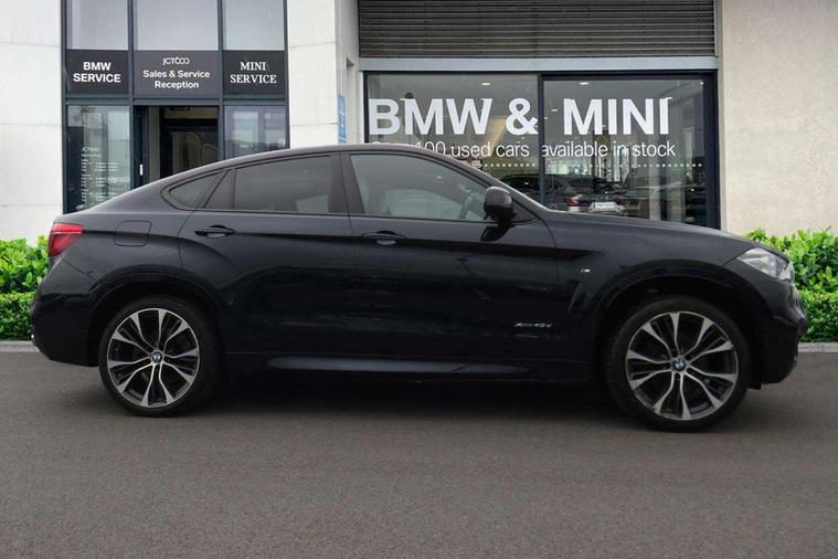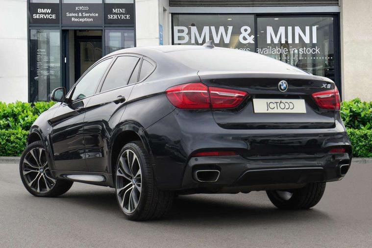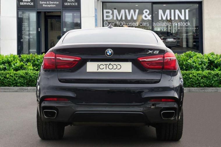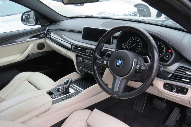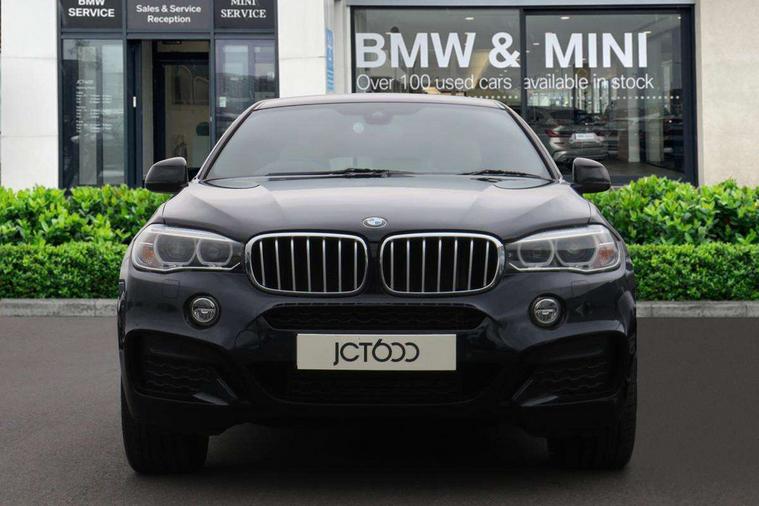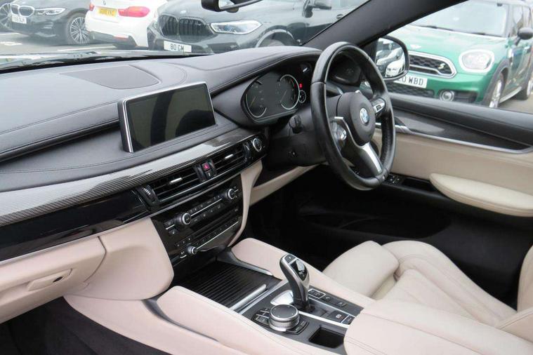 20GB Hard drive, 6.5" colour display screen, BMW apps interface, BMW information plus, BMW remote services, BMW Teleservices, Brake force display, Check control system, Digital cockpit, Electric tailgate release, Front/rear park distance control, Head up Display, Lights on warning, On board computer, Outside temperature gauge, Personal Profile, Professional multimedia navigation system, Service interval indicator, Servotronic PAS, Stop/start button, Voice control system, Diesel particulate filter, Auxiliary point for auxiliary devices, BMW professional twin tuner radio with single CD player and MP3 CD playback facility, DAB Digital radio, Auto dimming and folding door mirrors, Auto dimming rear view mirror, Body colour bumpers, Body colour door handles, Body colour door mirrors, Chrome exhaust tailpipes, Clear indicator lenses, Door mirror integrated indicators, Double kidney grille with high gloss black surround and black slats, Downlights in exterior door handles, Electric + heated aspheric door mirrors, Electric front/rear windows with anti-trap, Electric headlight adjustment, Follow me home headlights, Green tinted glass, Headlight washer jets, Heat insulated glass, Heated washer nozzles, High gloss black air breather, M aerodynamic body kit, Metallic paint, Rain sensor with auto light activation system, Stainless steel sill finishers, Sun protection glass, Xenon headlights, 12V accessory power point in centre console, 12v socket in front centre armrest storage compartment, 12V socket in luggage compartment, 2 x 12V socket in rear centre console, 3 spoke sports leather multi-function steering wheel with gear shift paddles, 40:20:40 split folding rear seats, Ambient interior lighting, Anthracite Velour floor mats, Boot lashing points, Door sills with M logo, Driver and passenger knee pads, Electric front seats + driver memory, Front and rear cupholders, Front armrest with storage bin, Front reading lights, Front/rear courtesy lights with soft on/off dimming, Full black panel display, Heated front seats, Height adj rear head restraints, Illuminated glovebox with lock, Isofix child seat preparation, LED footwell lights, Luggage compartment cover, removable, Reach + rake adjustable steering column, Storage bins on all doors, Sunvisors with illuminated vanity mirrors, Tilt/height adjustable front head restraints, Toolkit located in luggage compartment, Extended storage pack - X6, 3 rear 3 point seatbelts, ABS, ADB - Automatic Differential Brake, Automatic Stability Control (ASC), BMW emergency call, Brake energy regeneration, Child locks on rear doors, Cornering brake control (CBC), Crash Sensor - activates hazard/interior lighting + unlocks doors, Driver/Front Passenger airbags, DSC+, Dynamic brake control, Dynamic Traction Control - DTC, Electronic brake force distribution, Electronic parking brake, Front and rear head airbags, Front passenger airbag deactivation, Front passenger seat occupancy sensor, Front side airbags, Height adjustable front seatbelts, Hill descent control, Hill start assist, Pyrotechnically pre-tensioned front seatbelts, Seat belt force limiter, Side impact protection, Tyre pressure monitor, Warning triangle and first aid kit, Locking wheel nuts, Remote central locking, Thatcham cat 1 remote alarm/immobiliser, 21" M Double spoke light alloy wheel - style 599M, Run flat tyres,