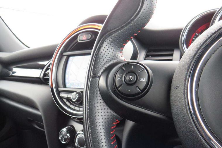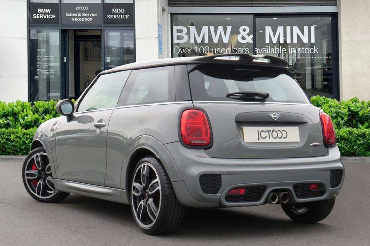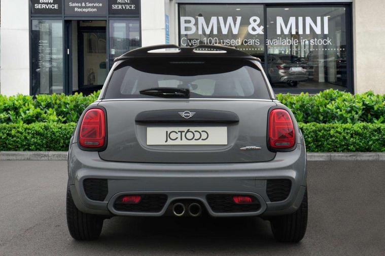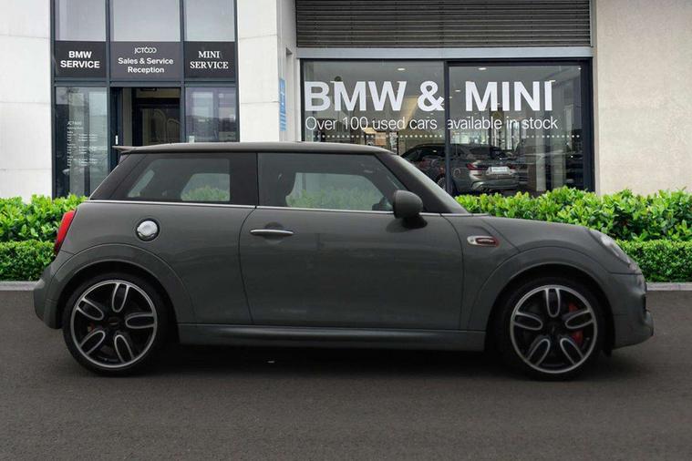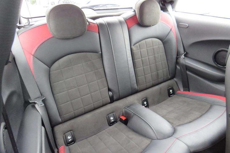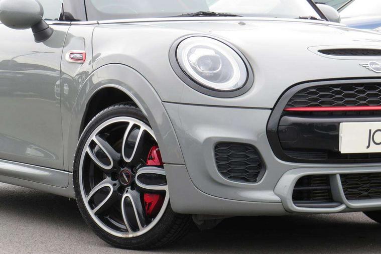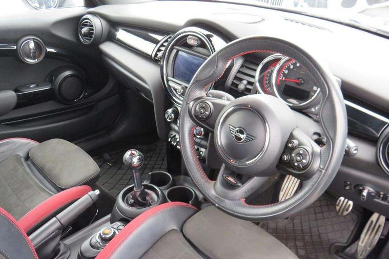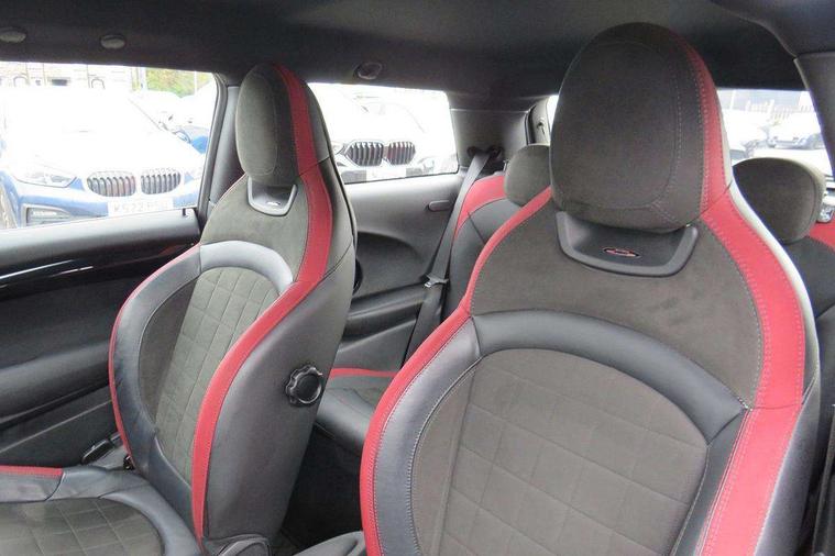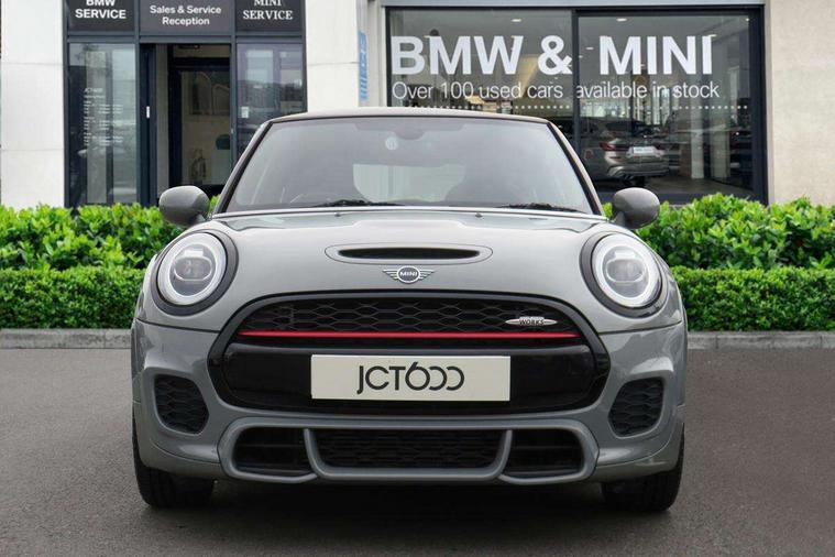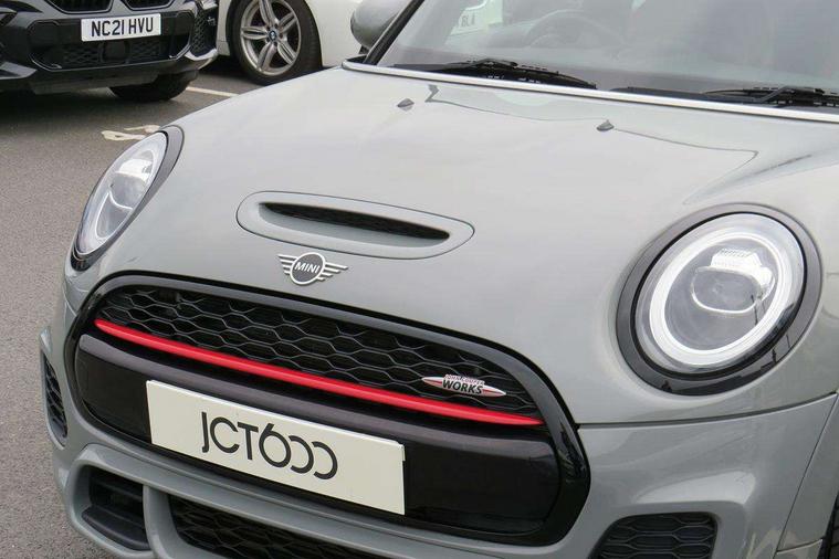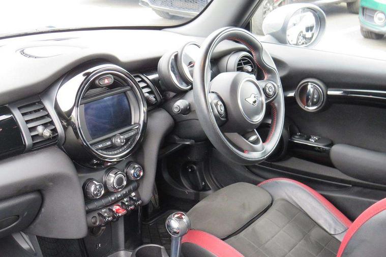 Compatible mobile phone bluetooth with audio streaming, Instrument cluster, MINI Driving Modes - centre toggle switch to control driving setting (sport, mid and green), Mini E-call, MINI TeleServices, On board computer, Service interval indicator, Performance Control, 6.5" touchscreen with LED ring, FM tuner and DAB digital radio, Automatic headlight activation switch, Bonnet scoop, Chrome door handles, Chrome plated fuel cap, Dynamic brake lights, Electric front+rear windows, Heated rear window, Heated windscreen washer jets, John Cooper Works - aerodynamic kit (front and rear apron, spoiler), front and rear sport bumpers and part-painted side sills with door sill finishers, John Cooper Works rear spoiler, LED headlight with closed ring and daytime driving lights, Metal look door sill finishers, Piano black border radiator grille with honeycomb structure in black matt and John Cooper Works logo with upper individual grille strut in chilli red, Piano black exterior, Rain sensor window wipers, Rear fog lights, Rear LED lights with union jack design, Rear window wiper, Side scuttle with MINI John Cooper Works logo in black high-gloss with red border, Sun/heat protection glass, Two central exhaust tailpipes with chrome finisher, White indicator lenses, 12V Accessory socket in centre console, 4 lashing eyes in luggage compartment, 60/40 split folding rear seat, Anthracite headlining, Chrome interior highlights, Cupholders, Front and rear isofix with front passenger airbag deactivation, Glove compartment, Height and length steering column adjustment, Interior lighting with 12 basic colours selectable via toggle switch in roof, Internal chrome door handles, John Cooper Works Logo in seat, John Cooper Works sport leather steering wheel, Leather gearshift lever and handbrake gaiters, LED reading lights, vanity mirror lights, front foot well light and spotlight on front seats, Manual air conditioning, Mechanical seat adjustment, driver seat height adjust, forward/back and front seats backrest, Mini logo projection on floor from drivers exterior mirror, Multifunction steering wheel, Stainless steel pedals with rubber inserts, Storage compartments in doors, Sunvisors with vanity mirrors, 3 point seatbelts on all four seats, 6 Airbags - front, side, head and seat belt tensioners, Anti-lock braking system (ABS), DSC - Dynamic Stability Control, Front and rear disc brakes, Hill start assist, Red brake callipers with John Cooper Works logo, Two tone horn, Tyre pressure monitoring system, Alarm system with tilt sensor, monitoring doors, bonnet interior and tailgate, Electronic vehicle immobiliser, Start/stop toggle with keyless go, Piano black interior trim, Tool kit,