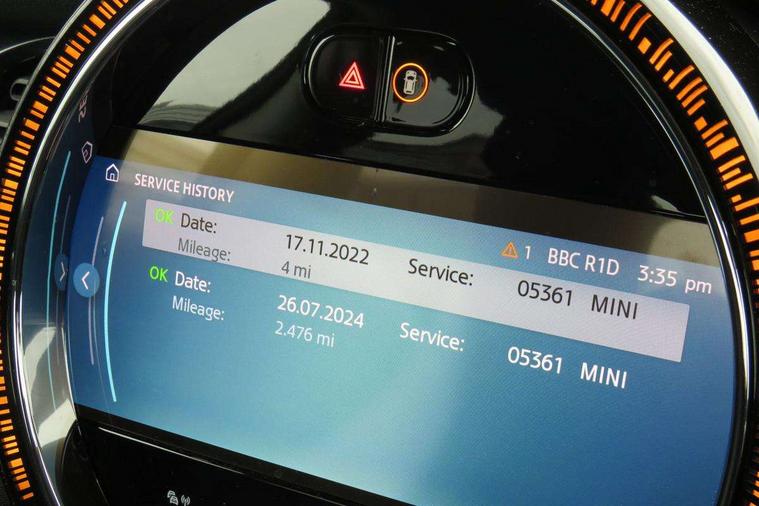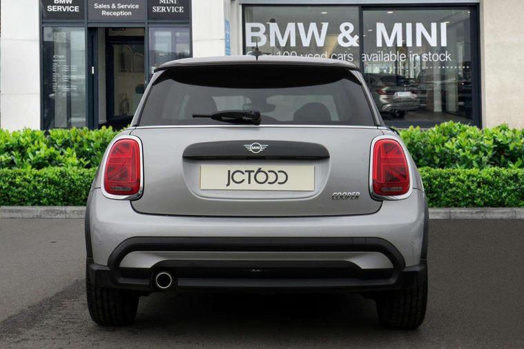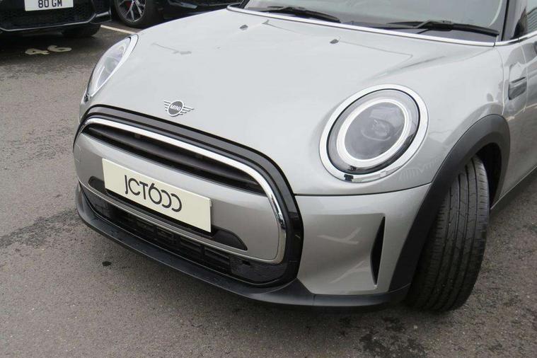 Apple CarPlay, Automatic start/stop function with brake energy recuperation, Compatible mobile phone bluetooth with audio streaming, Cruise control with brake assist, Electro-mechanical speed dependant steering assistance, Flexible car sharing preparation, Instrument cluster, Mini E-call, MINI TeleServices, On board computer, Service interval indicator, Double Vanos system, Fully variable valve control, High precision injection, Performance Control, Steptronic transmission with double clutch, 8.8" touchscreen with LED ring, FM tuner and DAB digital radio, 3rd brake light, Automatic headlight activation switch, Body colour fuel filler cap, Chrome border high gloss black slats radiator grille, Dynamic brake lights, Electric front windows, Exhaust tailpipe on left with chrome finisher, Heated rear window, Heated windscreen washer jets, LED headlight with closed ring and daytime driving lights, Metal door sill strips with MINI imprint, Model logo Cooper on right of tailgate, Rain sensor window wipers, Rear fog lights, Rear LED lights with union jack design, Rear window wiper, Side scuttle panel with integrated indicator, Sun/heat protection glass, White indicator lenses, 12V Accessory socket in centre console, 2 seat bench in 2nd row, 4 lashing eyes in luggage compartment, 60/40 split folding rear seat, Ambient lighting, Carbon black colour line - Knee roll and door armrest, Chrome interior highlights, Cupholders, Front and rear head restraints, Front and rear isofix with front passenger airbag deactivation, Front floor mats in velour, Glove compartment, Height and length steering column adjustment, Interior lighting with 12 different colours across the dashboard, underneath door bezel with illuminated laser-engraved design on central display, Leatherette gearshift lever and handbrake gaiters, LED reading lights, vanity mirror lights, front foot well light and spotlight on front seats, Manual air conditioning, Mechanical seat adjustment - forward/back & backrest for front seats and driver seat height adjust, Multifunction steering wheel, Passenger seat height adjuster, Satellite grey headlining including grab handles and clothes hooks, Single front passenger seat, Sport leather steering wheel with speed limiter and audio/communication controls, Storage compartments in doors, Sunvisors with vanity mirrors, 3 point seatbelts on all four seats, 6 Airbags - front, side, head and seat belt tensioners, Anti-lock braking system (ABS), DSC - Dynamic Stability Control, Front and rear disc brakes, Single tone fanfare horn, Tyre pressure monitoring system, Alarm system with tilt sensor, monitoring doors, bonnet interior and tailgate, Electronic vehicle immobiliser, Start/stop toggle with keyless go, Piano black interior trim, Tool kit, Tyre repair kit,