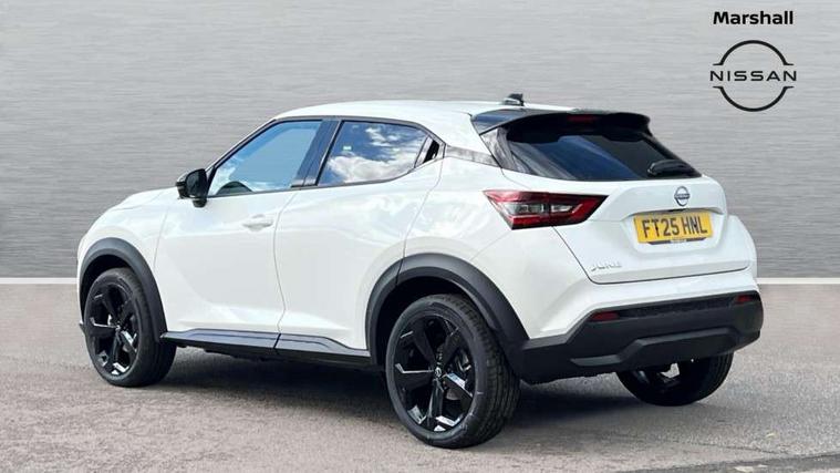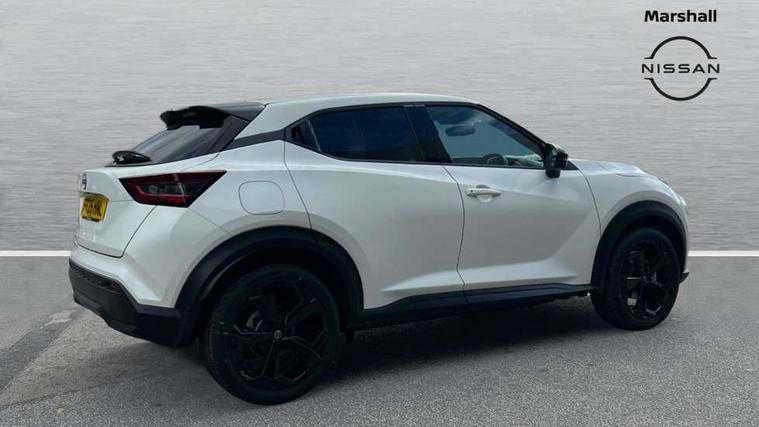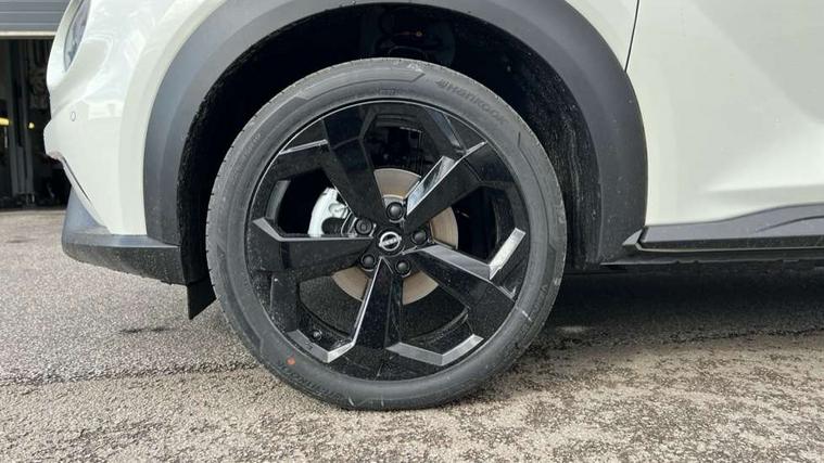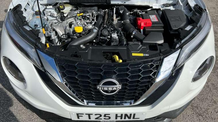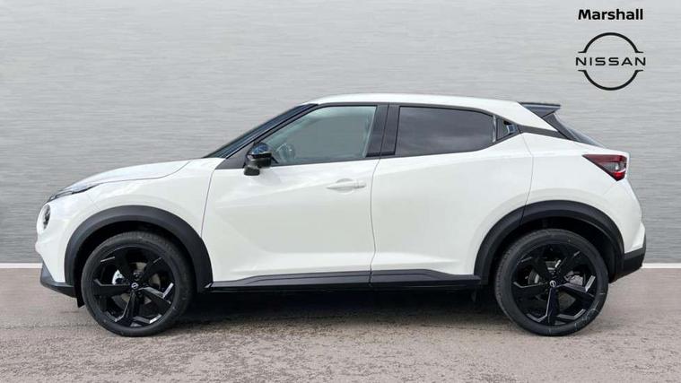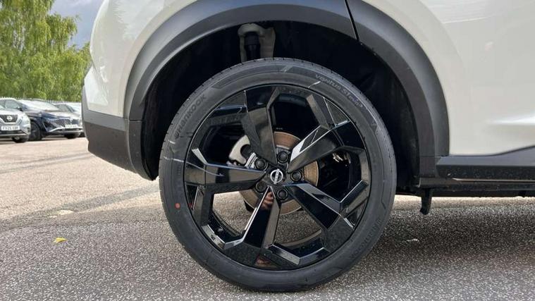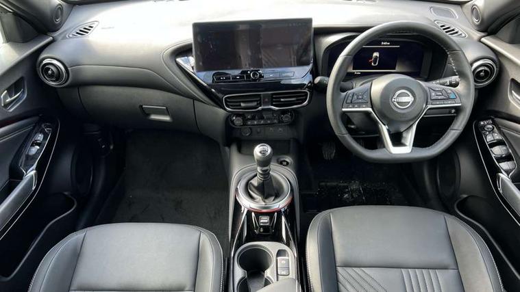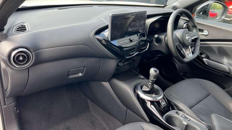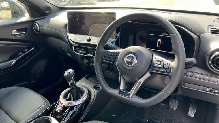 12.3" full colour TFT screen combimeter, Drive modes select (Eco, normal and sport), Emergency and breakdown call, Front parking sensor, Idle start/stop system, Intelligent driver alert system, Intelligent lane intervention, Lane departure warning system, Nissan connect 12.3" touch screen entertainment system, Nissan connect nav with TomTom traffic, Nissan connect services, Outside temperature sensor, Power Steering, Rear parking sensor, Stop/start button, Traffic sign recognition, Trip computer, Voice recognition, WiFi connectivity, Wireless Apple CarPlay and Google Android auto, Wireless Smartphone charger, 10 Bose speakers 8 speakers and 2 headrest speakers for driver/passenger seats, 2 X Rear console USB port, Bluetooth system, USB, Aux-in and 12V socket, Bose personal plus audio system, DAB Digital radio, Auto dimming frameless rear view mirror, Automatic hazard signal with emergency stop signal, Body colour door handles, Electrically adjustable door mirrors with integrated indicators, Follow me home headlights, Front and rear electric window with one touch driver window, High beam assist, LED 3rd brake light, LED daytime running lights, LED front fog lights, LED headlamps, LED rear fog lamp, LED rear lamps, One touch passenger window, Rear privacy glass, Rear side wing doors, Rear wiper, Roof spoiler, Shark fin roof antenna in solid Black, Solid black door mirrors, Three blink turn signal, 3 height adjustable rear headrests, 3 seat bench in 2nd row, 60/40 split folding rear seat, Card holder on driver sunvisor, Door ambient lighting, Driver seat back pocket, Driver side rear coat hanger, Driver/passenger sunvisors and vanity mirrors, Front and rear cabin lights, Front armrest, Front door pockets with bottle holders, Front head restraints, Front/rear passenger grab handles, Gear console ambient circle lighting, Height adjustable driver's seat, Internal chrome door handles, Luggage board, Luggage space lighting, Monoform sporty seats, Multifunction steering wheel, Passenger seat back pocket, Rear door bottle holders, Single front passenger seat, Smooth synthetic leather steering wheel, Synthetic leather kneepad, Synthetic leather shift knob, Synthetic leather upholstery, Telescopic steering wheel adjustment, Two cupholders in front centre console, Two rear isofix child seat anchorage points with top tether, Welcome light and console tray ambient lighting, Advanced safety shield pack - Juke Manual, Comfort pack - Juke, Heat pack with height adjustable passenger seats - Juke, ABS with EBD and brake assist, Active ride control, Active Trace Control, Driver and passenger airbags, Driver and passenger side airbags, Electric handbrake with auto hold function, Electronic Stability Programme (ESP), Front and rear curtain airbags, Height adjustable seatbelts, Hill start assist, Intelligent emergency braking with pedestrian and cyclist recognition, Rear door child safety locks, Seatbelt reminder for driver/front passenger and rear seats, Three 3 point rear seatbelts, Traction control, Tyre pressure monitoring system, VDC Dynamic Vehicle Control, Alarm, Immobiliser, Intelligent key and start push button with walk away lock and approach unlock functions, Remote central locking, 19" Alloy wheels, Tyre puncture repair kit,
