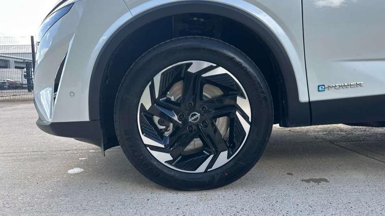 2 front USB-C ports, 2 rear USB-C ports, 360 degree Intelligent around view monitor with moving object detection, Blind spot warning, Drive assist custom mode, Drive modes (sport, normal, eco), Driver drowsiness and attention warning, e-Pedal step, Electric speed sensitive power steering, Emergency and breakdown call, Emergency lane keep assist, Emergency Stop Signal (ESS), Engine start/stop button, EV mode switch, Event data recorder, Front and rear parking sensors, Full Digital 12.3" TFT Digital Combimeter, Google virtual personal assistance, Idle stop/start system, In-car WIFI hotspot, Intelligent Cruise control (ICC), Intelligent driver alert system, Intelligent forward collision warning, Intelligent lane intervention, Intelligent speed assist, Lane departure warning system, Maximum speed limiter, Nissan connect 12.3 inch touchscreen infotainment system, Nissan connect navigation with google maps, Nissan connect services 2.0 (Google Automotive System), Outside temperature sensor, Propilot assist with Navi-Link, ProPilot park, Rear cross traffic alert, Remote control services - door locks, lights, horn and car locator, Reversing detection, Traffic jam pilot, Traffic sign recognition with legal speed adjustment, Trip computer, Wireless Apple CarPlay/Android Auto, Wireless charging pad, Limited slip differential, 6 speakers, AM/FM audio system with DAB, Bluetooth audio streaming, Auto dimming frameless rear view mirror, Auto rear wiper when reversing, Body colour mirror caps, Body coloured door handles, Bodyside mouldings, Chrome side window finisher, e-POWER badging, Electric auto folding door mirrors, Electrically adjustable and heated door mirrors with LED turn indicator, Follow me home headlights, High beam assist, Intelligent auto headlights, LED 3rd brake light, LED daytime running lights, LED Headlights, LED rear lights, One touch front and rear electric windows with remote opening and closing, One touch passenger window, Partially body coloured bumpers, Rain sensing wipers, Rear privacy glass, Rear roof spoiler, Rear side wing doors, Rear styling plate, Shark fin antenna, Silver roof rails, Splash free rain sensing wipers, Super UV and infrared cut glass, Three blink turn signal, 12v power socket in dashboard and luggage, 3 bench rear seats in 2nd row, 3 rear headrests, 60/40 split folding rear seat bench, Chrome interior door handles, Cloth upholstery, Driver and passenger sunvisors with illuminated vanity mirrors, Driver seat back pocket, Dual zone automatic climate control with pollen filter, e-POWER shifter, Electrically adjustable lumbar support for driver, Front centre console and armrest, Front cupholders, Front door with bottle holders, Height adjustable driver seat, Height adjustable front headrests, Height adjustable passenger seat, Luggage board system, Luggage space lighting, Multifunction steering wheel, Passenger seat back pocket, Rear door bottle holders, Rear seat armrest with 2 cupholders, RGB ambient light (Full area coverage), Single front passenger seat, Smooth leather steering wheel, Tilt/telescopic adjustable steering wheel, Two rear isofix child seat anchorage points with top tether, 3x3 point rear seatbelt pretensioners + load limiters, ABS with EBD and brake assist, Autonomous emergency braking, Child locks on rear doors, Curtain and front side, far side airbags, Driver and passenger airbags, Driver, passenger and 2nd row rear seat belt reminder, Electric handbrake with auto hold function, Front seatbelt pretensioners + load limiters, Height adjustable front seatbelts, Hill start assist, Intelligent blind spot intervention, intelligent front emergency braking, Intelligent rear automatic braking, Tyre pressure monitoring system, Vehicle dynamic control, Engine immobiliser, Intelligent key with walk away lock and approach unlock functions, Remote central door locking with deadlocking, Thatcham alarm, 18" Diamond cut alloy wheels, Tyre puncture repair kit,