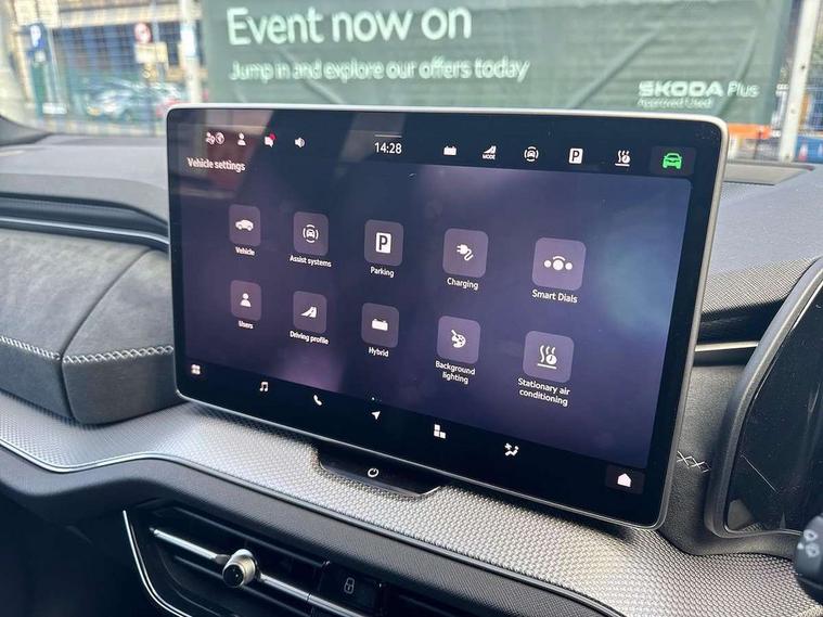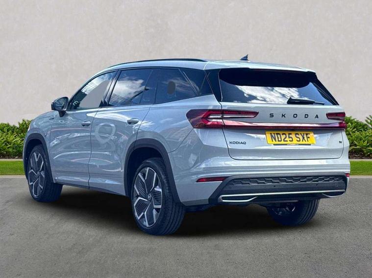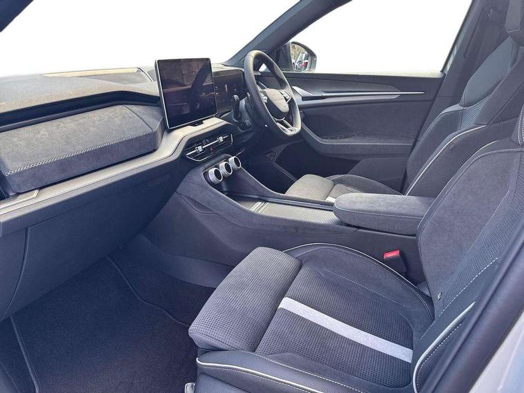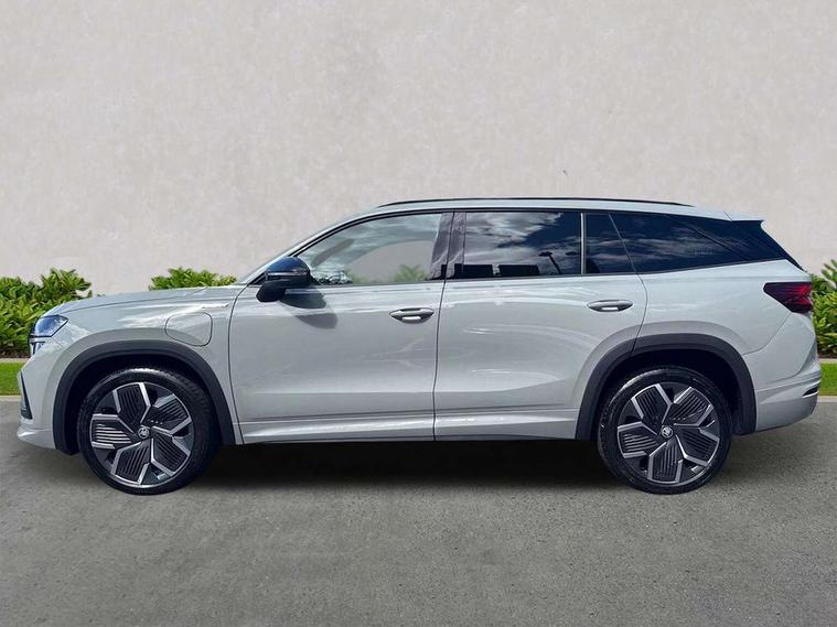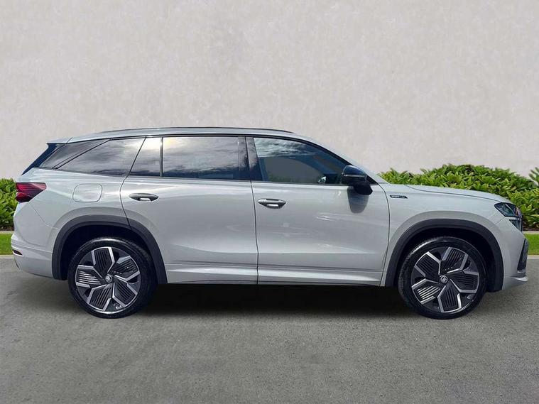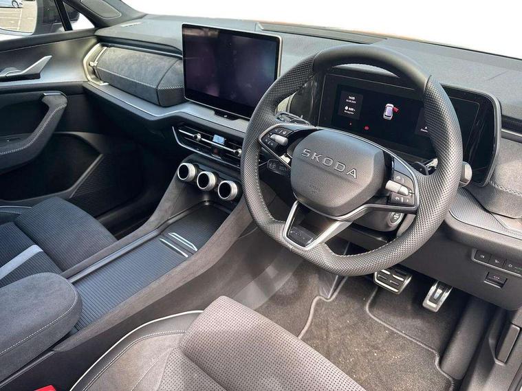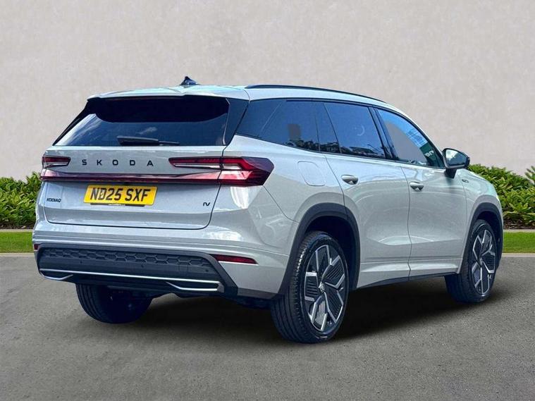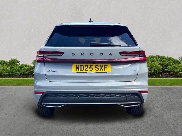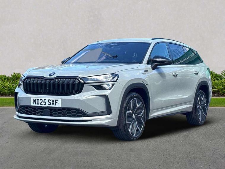 13" satellite navigation touchscreen display, Blind spot detection with door exit warning, Bluetooth system, ChatGPT functionality, Driver alert - Fatigue and drowsiness monitor, Dry display cleaner, Emergency call, Front and rear parking sensors, Front cross traffic assist, Lane assist, PAS, Rear traffic assist, Tailgate unlocking from outside, Traffic sign recognition, USB C Port x 2 in front centre console, Virtual Cockpit - 10.25" digital display, Voice control system, Wireless charging for two smartphones (15W) with cooling function, Wireless SmartLink for Apple CarPlay and Android Auto, 32A charging cable, Stop/start function, 2x USB-C in the rear, DAB Digital radio, Aero front windscreen wipers with intermittent function, Auto dimming rear view mirror, AWL (all weather lighting) and all weather light with cornering function, Black diffuser and decorative tailpipe with a unique dark chrome finish, Black roof rails, Black sports styling including front grille and window surrounds, Black wheel arch surrounds, Body colour door handles, Cornering light and poor weather light, Electric folding /adjustable/separted heated/folding door mirrors, auto dimming with boarding sports and memory function, Electric front and rear windows, Exterior black decorative trims, Front and rear sports bumpers including lower rear chrome strip, Gloss black door mirrors, Gloss black window frame and D pillar, Heat insulating glass in windshield, Heated rear window, Ice scraper in fuel tank cap, LED daytime running lights, LED third brake light in rear spoiler, Light assistant with automatic headlight control and coming home feature, Logo projection in door mirrors, Privacy glass, Rear roof spoiler, Rear side wing doors, Rear window wiper, Red decorative strip between rear LED lights, Safety reflectors on front and rear doors, Sportline badge on front fenders, Tailgate lettering in Black, Unique dark chrome design logo on alloy wheels, Window control switches with black trim, Windscreen wipers with rain sensor, Without engine designation, 1.5l bottle holder points in all door, 1x centre rear reading light, 3 configurable smart dials with 32mm coloured display, 3 seat bench in 2nd row, 4 foldable roof handles with rear coat hooks, Aluminium pedals, Ambient interior lighting - Dashboard, front-door stowage compartments, front and rear door panels and footwell lighting, Automatic gear selector on steering column, Chrome interior door handles, Driver/front passenger reading lights, Fabric headlining, Fixed bench 40:60:40 split folding backrests, Front and rear floor mats, Front centre armrest with jumbo box storage compartment, cup holder and 12V socket, Front sport seats, Height adjustable front headrests, Interior black decorative trims, Isofix child seat fittings in outer rear seats and front passenger with top tether, iV badging on boot, Manually adjustable steering column, Pollen filter, Rear centre armrest with cupholders, Rear seat boot backrest release, Single front passenger seat, Skoda lettering on steering wheel, Storage pocket including mobile phone pockets on the backs of the front seats, Sunvisors with illuminated vanity mirrors, Three rear height adjustable headrests, Ticket holder on A Pillar, Tri zone climate control, Umbrella in door panel x1 made from sustainable materials, Upper and lower glovebox with card holder and coin compartment, USB C port by rear view mirror for charging only (15W), Acoustic package - Kodiaq, Performance package - Kodiaq, Sportline design selection pack - Kodiaq, Auto door release and activation of warning lights in the event of an accident, Driver and front passenger airbag with knee airbag and front passenger airbag deactivation, Electric child locks, Electronic parking brake, ESC (incl. ABS+EMD+MSR+ASR+EDL+HBA+DSR+RBS+ESBS+MCB+TSA+XDS), Front assist with braking reaction to vehicles, pedestrians and cyclists, Front disc brakes, Fuel cut off safety device, Height adjustable front 3 point seatbelts + pretensioners, Hill hold assist, Junction assist with automatic emergency braking, Rear disc brakes, Safety vest holder in door, Seat belt reminder for all seats, Three point rear seat belts, Two tone horn, Tyre pressure monitor, Alarm with interior monitoring and tilt sensor with safe function, Anti-theft wheel bolts, Immobiliser, Remote central locking with 2 keys, 20" Rila anthacite polished alloy wheel with black matte aero covers, Breakdown kit, Tool kit,