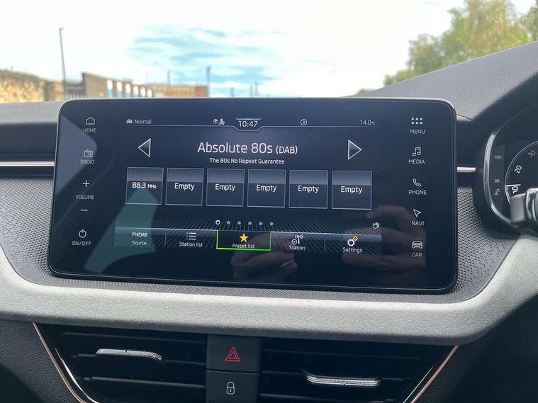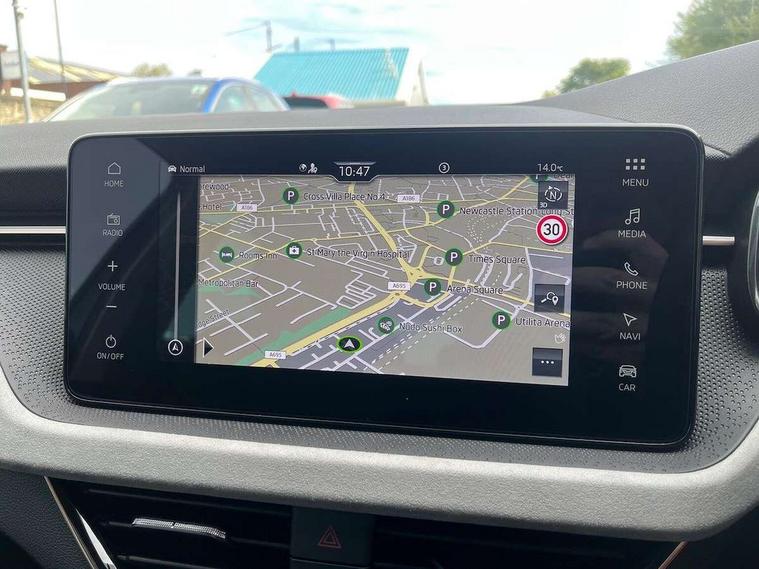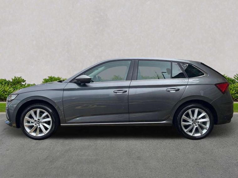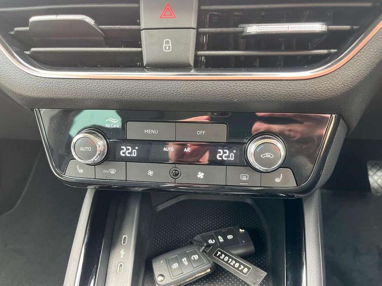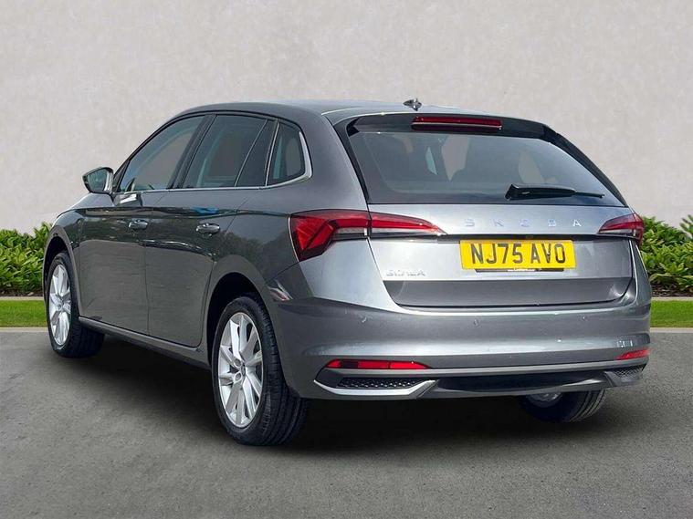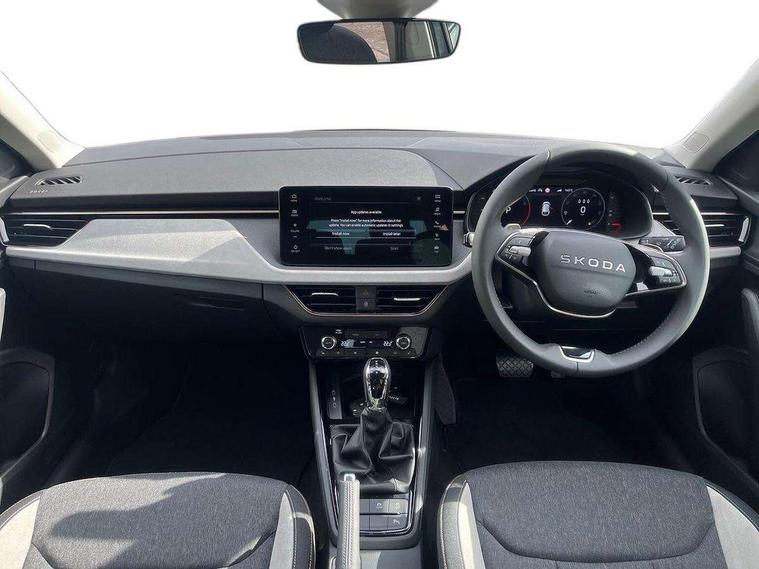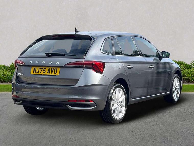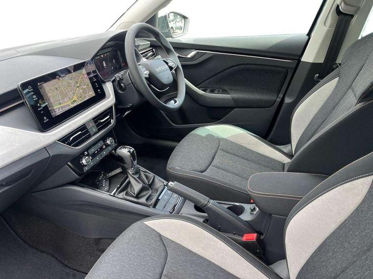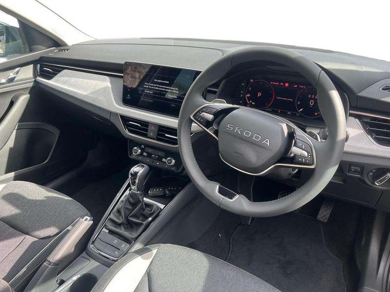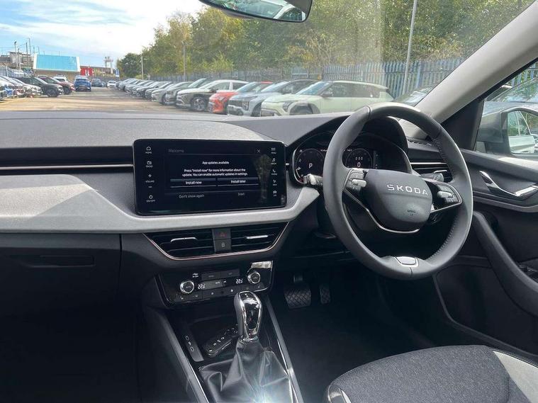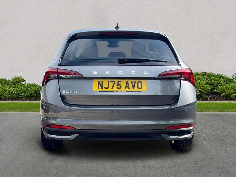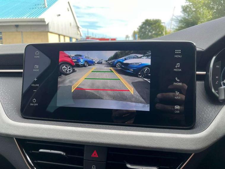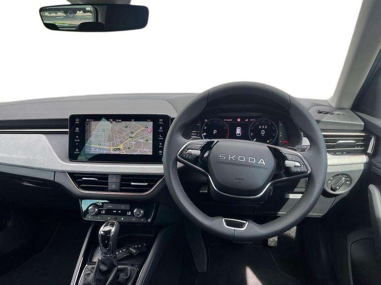 Advanced driver attention and drowsiness monitor, Bluetooth, e-Call (emergency call), Front assist system, PAS, Rear parking sensors, Rear view camera, Speed limiter, Tailgate, Traffic sign recognition, Virtual Cockpit - 10.25" digital display, Voice control system, Wireless smartlink, 4 USB C ports, 8 Speakers, 9.2" Skoda navigation display, DAB radio, Auto dimming rear view mirror, Automatic headlight control with manual coming and leaving home feature, Automatic intermittent wipers, Body colour bumpers, Body colour door mirrors and handles, Chrome moulding around grille, Chrome window frames, Front and rear electric windows, Heated rear window, LED 3rd brake light, LED daytime running lights, LED high beam, LED low beam, Light sensors, Privacy glass, Rear LED fog light, Rear side wing doors, Rear wiper, Tinted windows, Unique dark chrome design logo on alloy wheels, 12V socket in luggage compartment, 3 seat bench in 2nd row, Ambient lighting in white/red, Black / Copper armrest stitching, Cargo elements, Chrome inner door handles, Copper hotstamping, Door inserts in accent black, Driver and passenger sun visors with vanity mirror, Dual zone climate control, Front and rear roof lights, Front centre armrest, Front head restraints, Glasses storage in roof liner, Height adjustable driver seat, Height adjustable passenger seat, Ice scraper, Illuminated glove compartment, Inner circulation control with pollen filter, ISOFIX for front passenger seat, Isofix preparation for back seats, Leather gearknob and handbrake lever, Lodge cloth upholstery, Luggage net under rear parcel shelf, Manual lumbar support for front seats, Net package and top tether hooks in boot space, Pocket on the back of both front seats, incl. mobile phone pockets, Rear centre armrest, Single front passenger seat, Skoda lettering on steering wheel, Textile floor mats, Third rear headrest, Ticket holder, Top tether for front passenger seat, Umbrella in driver's door, Convenience pack without rear camera - Scala, 3x3 point rear seatbelts, ABS, Child locks, Curtain airbags and front side airbags, Disc brakes, Driver and front passenger airbags, ESP, Hill hold control, Manual leather parking brake, One tone horn, Passenger airbag switch off function, Seatbelt reminder for driver and front passenger, Tyre pressure monitoring system, Anti theft alarm system with interior monitoring, backup horn and towing protection, Anti-theft wheel bolts, Remote central locking with 2 remote folding keys, SAFE function for remote central locking, Decorative inserts,