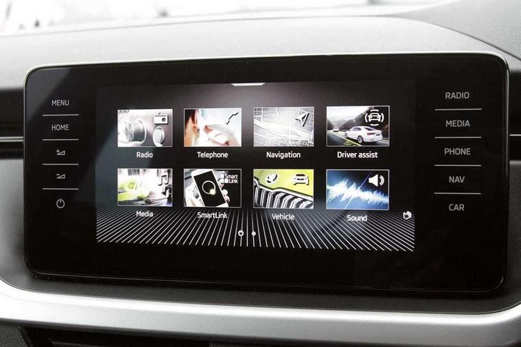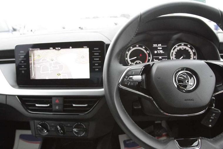 Amundsen satellite navigation with 9.2" glass colour touchscreen display, web radio, voice control and traffic sign recognition, Bluetooth system, E-call, Front assist system, Gesture control, PAS, Service indicator, Speed limiter, Wireless Smartlink for Apple CarPlay (wired for Android Auto), 8 Speakers, Auxiliary input socket, DAB Digital radio, Body colour bumpers, Body colour door mirrors and handles, Chrome grille surround, Dimming rear view mirror with black surround, Electrically adjustable and heated door mirrors, Front and rear electric windows, Headlight range control, Heated rear window, LED rear lights - low functionality, LED third brake light, Light sensors, Privacy glass, Rain sensor, Rear fog lights, Rear side wing doors, Rear wiper, 12V Accessory socket in centre console, 3 seat bench in 2nd row, Chrome inner door handles, Cloth upholstery, Front head restraints, Glove compartment with illumination, Height adjustable driver seat, Height adjustable front passenger seat, Ice scraper, Isofix child seat fittings on outer rear seats, ISOFIX on front passenger seat, Manual lumbar support for front seats, Rake/reach adjustable steering wheel, Reading lights, Single front passenger seat, Sun visors with illumination on front passenger, Textile floor mats, Third rear headrest, Top tether for front passenger seat, Umbrella in driver's door, 3x3 point rear seatbelts, Airbags - driver and front passenger, ESP, Front passenger airbag deactivation switch, Front side airbags with curtain airbags, Hill hold control, Manual parking brake, Manual rear child locks, One tone horn, Rear disc brakes, Seatbelt reminder for driver an co-driver, Traction control, Tyre pressure monitor, Anti-theft alarm system with interior monitoring, backup horn, towing protection and remote central locking with SAFE system, Anti-theft wheel bolts, Electronic engine immobilizer, Silver haptic decorative insert on the dashboard with hot stamping in glossy black,