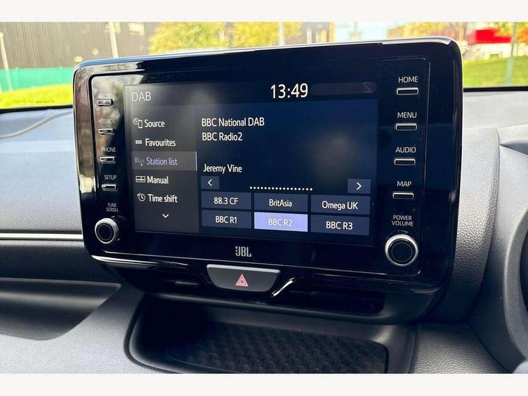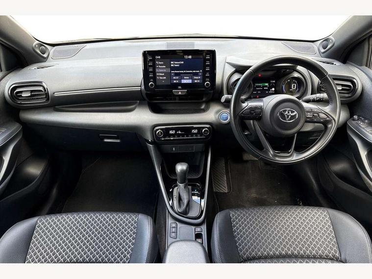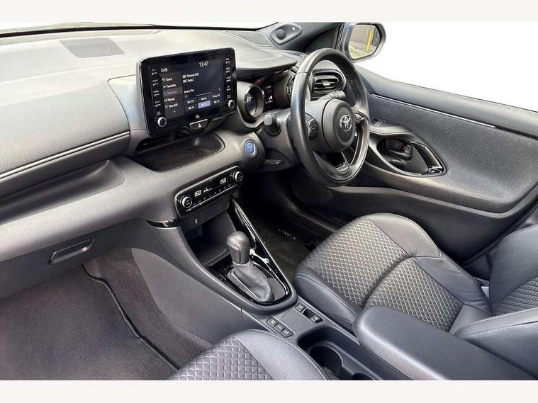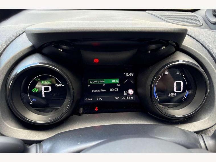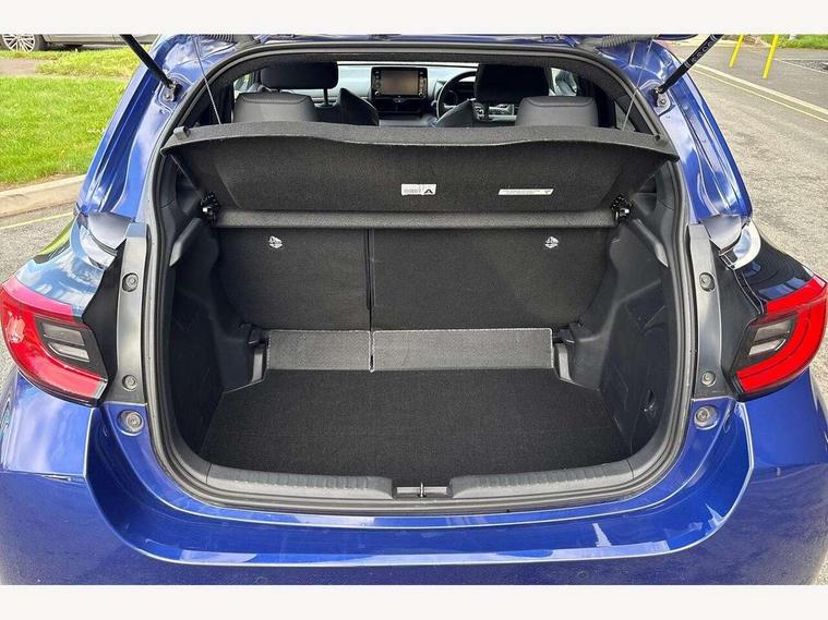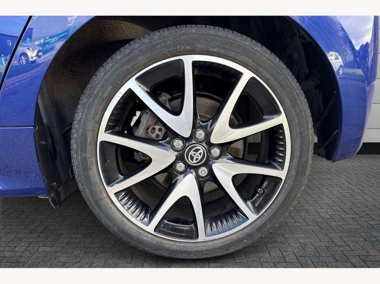 Adaptive cruise control, Adjustable speed limit with speed warning, Bluetooth connectivity, Colour binocular inspired displays with digital speedometer, E-call, Electric power steering, Hybrid energy display, Multi information display switches on steering wheel, Reversing camera, Smartphone integration with Apple CarPlay and Android auto, Vehicle Stability Control (VSC), 8" Multimedia display touch screen, JBL Premium sound system with 8 speakers, Toyota Touch 2 with DAB, USB connection, Acoustic windscreen glass, Automatic headlights, Automatic windscreen wipers with rain sensor, Body coloured door mirrors, Electric adjustable heated door mirrors, Follow me home headlights, Front auto power windows with anti jam protection, Full LED rear lights, LED daytime running lights, LED front fog lights, LED Headlights, LED High mounted stop lamp, Painted front grille, Rear auto power windows with anti jam protection, Rear privacy glass, Rear side wing doors, Rear spoiler, Rear wiper, Shark fin antenna, Turning signal integrated indicators in door mirrors, 3 adjustable rear headrests, 3 seat bench in 2nd row, 3 spoke leather steering wheel, 60/40 split folding rear seat, Active headrests, Adjustable boot height, Coat hooks in rear grab handles, Cup holders (2 front & door), Data Communication Module (DCM) connected services, Dual zone automatic air conditioning, Fabric seat with partial synthetic leather upholstery, Front armrest, Front sport seats, Glovebox, Height adjustable driver's seat, Height adjustable passenger seat, Isofix seat fixing, Leather gearshift, Map pockets on the backs of the front seats, Pollen filter, Shopping bag hooks, Single front passenger seat, Tilt/telescopic steering column, 3 point seatbelts on all rear seats, ABS+EBD+Brake assist, Electronic parking brake, Emergency brake light system (EBS), Front passenger airbag on/off switch, Front seatbelt reminder, Hill start assist control (HAC), Rear child proof door locks, Rear seat belt reminder, Supplemental Restraint System (SRS) 8 airbags: Driver & passenger's airbags, dual side curtain airbags, side impact airbags, front centre airbag, Toyota Safety Sense 2, Precollison + Night time Pedestrian & Cyclist Detection, Lane Trace Assist, Auto High Beam, Intelligent ACC & Road Sign Assist, Tyre pressure warning system, Alarm/immobiliser, Keyless smart entry with push button start, Remote powered central double locking doors, Piano black interior trim, Soft touch instrument panel, Space saver spare wheel,