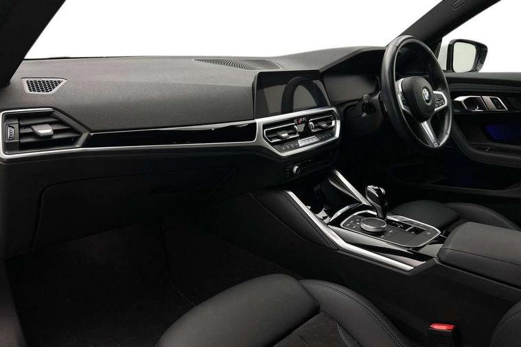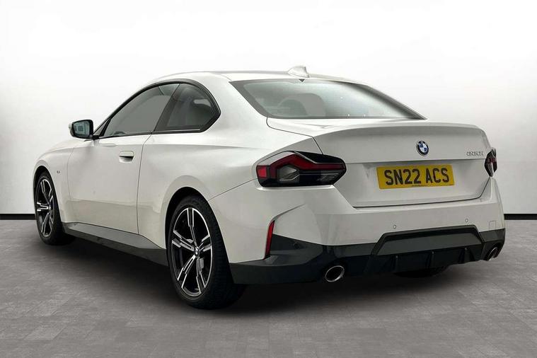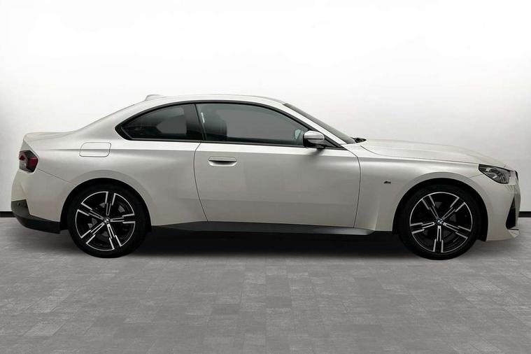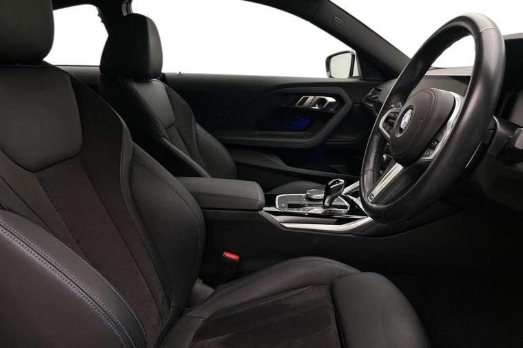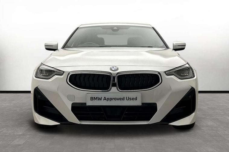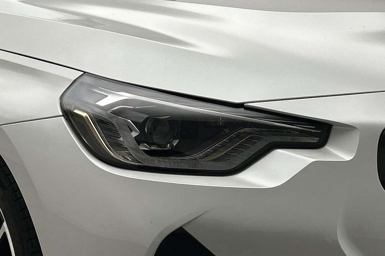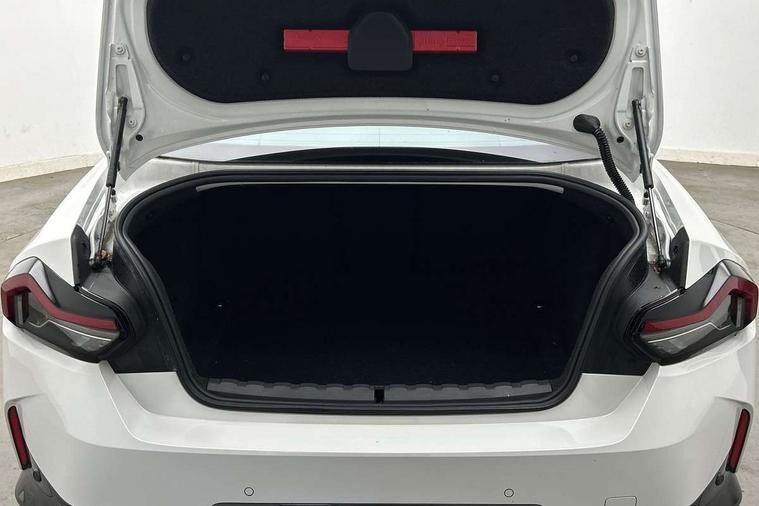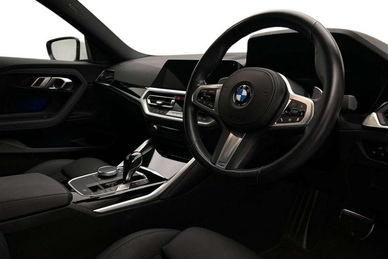 Attentiveness assist, Auto start-stop, Bluetooth, BMW ConnectedDrive online services, BMW Teleservices, Check Control warning system for monitoring of lights and door/luggage compartment open warning, Direct selection buttons, Drive off assistant, Eco pro mode, Electric power steering, Front/rear Parking distance control, iDrive controller with turn and press function, Integrated owners handbook, Intelligent functions, Live cockpit plus with nav function 12.3" instrument cluster and 14.9" centre display, Oil sensor for level and grade, Optimum shift indicator, Personal Profile, Touch operation on control display, Variable sport steering, Widescreen multi-media display, Aluminium lightweight construction, Balancer shaft, BMW TwinPower Turbo four-cylinder petrol engine, Double VANOS, Drive performance control with ECO PRO comfort + sport mode, Electronic differential lock, High precision injection, M sport suspension, Petrol Particulate Filter, Sport automatic steptronic transmission with gearshift paddles, manual gearshift time display, launch control, coasting idle ECO PRO/COMFORT modes, Twin scroll turbocharger with Valvetronic, DAB tuner, Acoustic windscreen wipers for reduced driving noise, Adaptive LED Headlights, Automatic windscreen wipers and automatic headlight, Automatically dimming rear view mirror, Body colour door handles flush with door surface, Body colour door mirrors, Body colour front and rear bumpers, Daytime running lights, Electric windows - front and rear, with open/close fingertip control and trap release, Exhaust tailpipes x2 - 90mm in left and right, Fading support, Front and rear bumper system with replaceable deformation elements, Front door sill finishers in black plastic with BMW designation, Front windscreen wipers with integrated washer jets, Green tinted heat protection glazing, High beam assistant, High gloss shadowline exterior trim in mirror triangle cover, mirror cover panel, mirror bezel and window border, High level third brake light, Indicators integrated int mirror housing, LED registration plate light, LED technology rear tail lights, brake lights and turn indicators, Lightweight engineering, Model designation on right side of tailgate, One piece kidney grille with hight gloss chrome surround, Rear boot, Rear fog lights, Reversing light in rear light cluster, Shark fin antenna, Single part LED rear lights with smoked glass components, Trailer stabilisation logic, Visible VIN plate, 12V power socket in front centre console with blanking plug, 2 cupholders in front centre console, 3 zone automatic air conditioning, Ambient lighting, Compartment in front of cupholder, Conditioned based service, Driver seat backrest width adjustment, Front and rear side armrests integrated into door trim, Front armrest, Front door pockets, Front head restraints, Front sport seats, Heated front seats, Illuminated glove compartment with separate small compartment, M headliner Anthracite, M sport leather steering wheel, Manually adjustment steering wheel column, Rear seat backrest with manual 40:20:40 split folding, Rear seat centre foldable armrest with integrated cup holder, Single front passenger seat, Storage compartment between rear seats, Storage tray and compartment with cover in centre console, Sun visors with vanity mirrors and insert tab, Through loading system with 40/20/40 split folding 2 rear seat in 2nd row, Two folding rear seat headrests, Velour floor mats, Additional storage compartment pack without USB - 2 Series Coupe, Connected pack professional - 2 Series Coupe, Interior and exterior mirror pack - 2 Series Coupe, M Sport exterior styling aerodynamics pack - 2 Series Coupe, 2 tone horn, Anti lock braking system (ABS) with cornering brake control, Automatic Stability Control (ASC), BMW emergency call, Brake drying, Child seat ISOFIX attachment for the two outer rear seats, Crash sensor activating of airbags, Unlocking doors, hazard warning lights, interior light, safety battery terminal, Deactivation of fuel pump in the event of a crash, Driver and front passenger airbags, Driver and front passenger side airbags, integrated in the door side seat backrest bolsters for all seat variants, Dynamic brake control, Dynamic stability control + (DSC+), Dynamic Traction Control - DTC, Electrically operated hand brake including automatic hold function and automatic release when driving off, Front and rear disc brakes, Front passenger airbag deactivation, Head airbags for all 4 outer seats, Manual deactivation of front passenger airbag, Seat belt security check for driver and front passenger, Seatbelt warning, Side impact protection, Three point seat belts on 4 seats including front belt stopper, pyrotechnic belt tensioners and belt force limiters, Tyre pressure sensor, Warning triangle and first aid kit, Alarm system (Thatcham 1) with remote control and electronic engine immobiliser, Central locking switch for all doors, fuel filler cap and luggage compartment, Deadlocking function system to all doors, Drive away locking system on all doors and luggage compartment, Locking wheel bolts, Start/Stop button (illuminated) in centre console with keyless engine start and Auto Start-Stop deactivation button, Two remote control key with integrated key - one button for open and close doors/fuel flap/tailgate and separate button for unlock luggage compartment, BMW mobility tyre sealing system, Electrically powered 12V compressor, Reduced rolling resistance tyres,