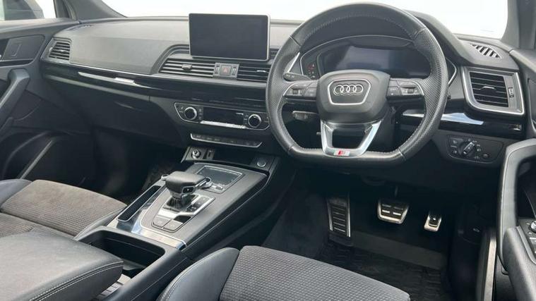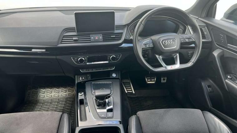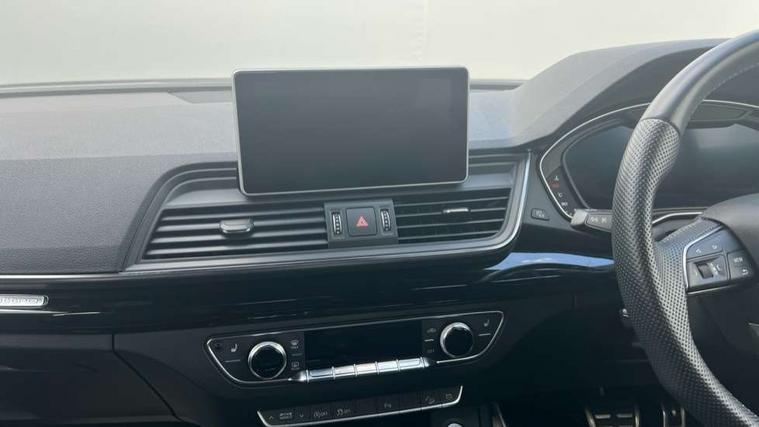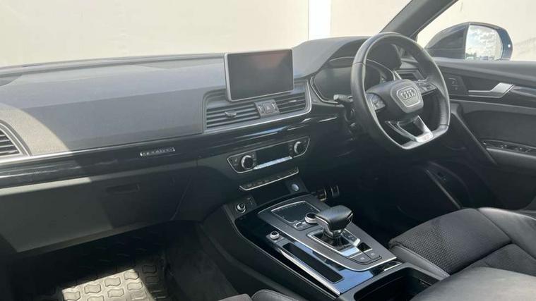 7" Colour driver information system, Audi connect safety and service (e-call), Audi drive select, Audi parking system plus with front and rear sensors, Audi Pre sense collision avoidance, Audi smartphone interface, Automatic start-stop system with coasting functionality and efficiency programme, Cruise control + speed limiter, Electro - mechanical power assisted steering, MMI Navigation, Mobile telephone preparation - bluetooth interface, Power tailgate, Service interval indicator, Voice control system, Diesel particulate filter, Dynamic suspension, Quattro on demand, 2 x USB charging port with aux input socket, 2x SD card slot, CD player, DAB Digital radio, MMI radio plus with 7" colour MMI screen and MMI controller, Acoustic windscreen, Air inlets in matt titanium black with blades in matt aluminium silver, Auto dimming rear view mirror, Automatic headlight levelling, Black roof rails, Body colour bumpers, Body colour rear diffuser with matt aluminium silver surrounds, Body colour underbody protection, Chrome exhaust tailpipe, Electric adjustable/heated/folding door mirrors, Front and rear electric windows, High beam assistant, LED headlights with LED rear lights + dynamic rear indicators, Light and rain sensor for auto activation of lights and windscreen wipers, Loading sill protector in stainless steel, Privacy glass with front acoustic glazing, Rear wiper, Titanium black door mirror housings, 3 rear headrests, 3 spoke flat bottom high multi-function leather steering wheel, 40:20:40 split folding rear seat with rear centre armrest, Black cloth headlining, Contrast stitching on seats, steering wheel and gear lever gaiter, Deluxe 3 zone electronic climate control, Front centre armrest, Front sport seats with S embossed logo, Front/rear floor mats, Heated front seats, Height adjustable front head restraints, Height/reach adjustable steering column, ISOFIX child seat mounting and top tether, Luggage compartment carpet, Manual seat adjustment with 4-way electric lumbar support, Perforated leather gearknob, Removable luggage compartment floor, Stainless steel pedals, Sunvisors with vanity mirrors, Trunk roller cover, LED interior light pack - Q5, Non Smokers pack, Titanium black styling pack - Q5, 3 point seatbelts on all seats, 6 airbags - Driver, front passenger, curtain and side airbags, Electromechanical parking brake, Electronic stabilisation control including ABS, ASR and EDL, Front passenger airbag deactivation, Hill descent control, Hill hold assist, Multi collision brake assist, Pop-up bonnet for pedestrian protection, Pre sense city, Seat belt force limiter, Seatbelt monitoring, Tyre pressure warning, Warning triangle and first aid kit, Anti theft alarm, Anti-theft wheel bolts, Keyless Go access/ignition system, Remote central locking, Black piano finish inlays, 20" 5 arm rotor design sport alloy wheels in gloss anthracite black, diamond cut finish, Tool kit,