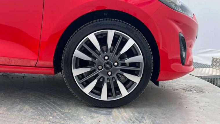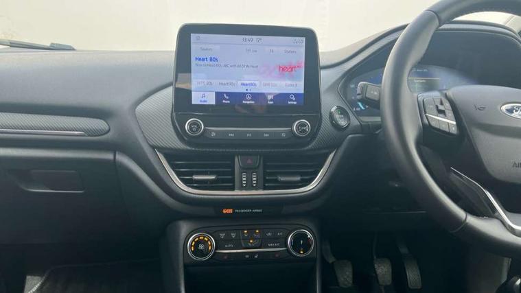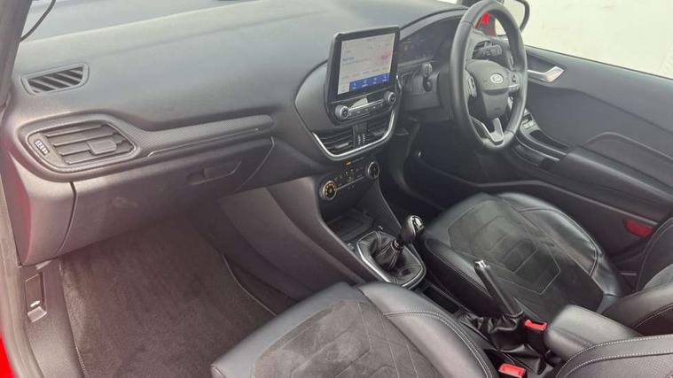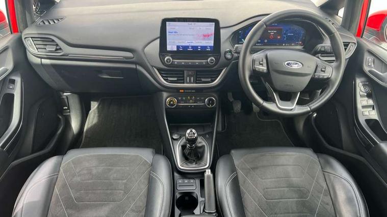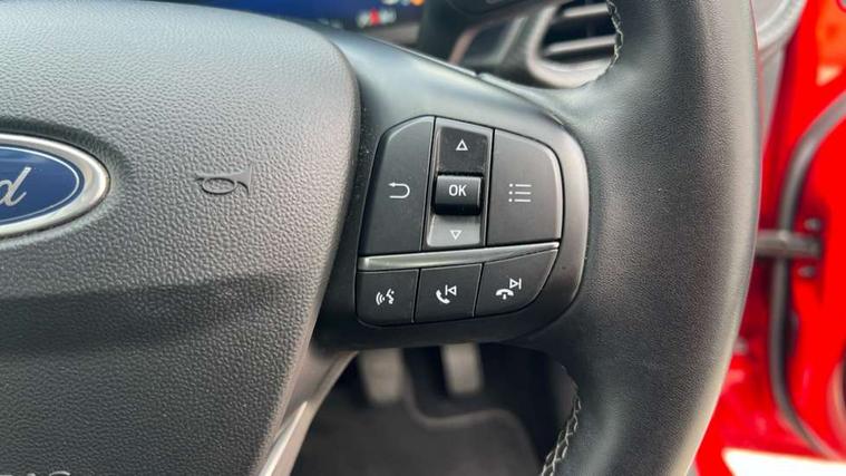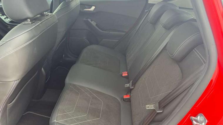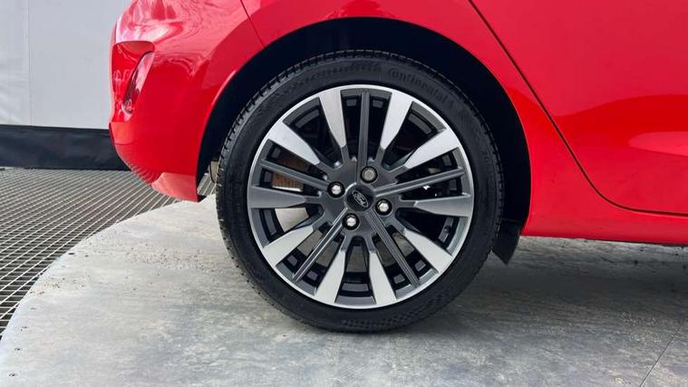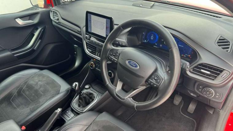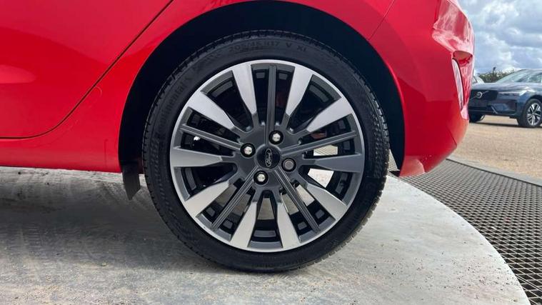 12.3" Full digital cluster, Driver alert system, Electric power steering, Ford easy fuel, Ford SYNC 3 Nav with DAB radio, 8" touch screen, voice control, emergency assist, Apple CarPlay/Android auto, 2x USB, 6 speaker, Ford pass connect, Rear parking distance sensors, Rear view camera, Selectable drive modes (Normal, Sport, Track), Speed sign recognition, Trip computer, Wrong way alert, Standard suspension, Auto high beam, Body colour bumpers, Body coloured electrically operated with side indicators, Electric front windows/one touch facility, Front titanium scuff plates, High gloss chrome surround with satin grille insert, LED Night signature to rear lights, LED third brake light, Quickclear heated windscreen, Rain sensing wipers and auto dimming rear view mirror, Rear privacy glass, Rear side wing doors, Rear wiper, 3 seat bench in 2nd row, 4 way manually adjustable passenger seat, Adjustable head restraints, Centre console with opening armrest, 2x cupholders, 12v and USB, Drivers and Passenger lumbar support, EATC - Electronic Auto Temperature control, Front floor mats in velour, Leather gaiter, LED ambient lighting (Ice blue), Manual 4-way driver seat adjust, Sensico partial premium leather upholstery with metal grey stitching, Sensico wrapped steering wheel, Single front passenger seat, NCAP Pack - Fiesta, Winter pack [GTBAB]- Fiesta, 3 point seatbelts on all rear seats, Electronic stability control with hill start assist, Manual child lock in rear doors, Tyre pressure monitoring system, Ford keyfree system with Keyless entry and keyless start, MyKey system, Remote central locking, Thatcham alarm with power door dead locks, 17" 10 spoke alloys with pearl grey machined finish,