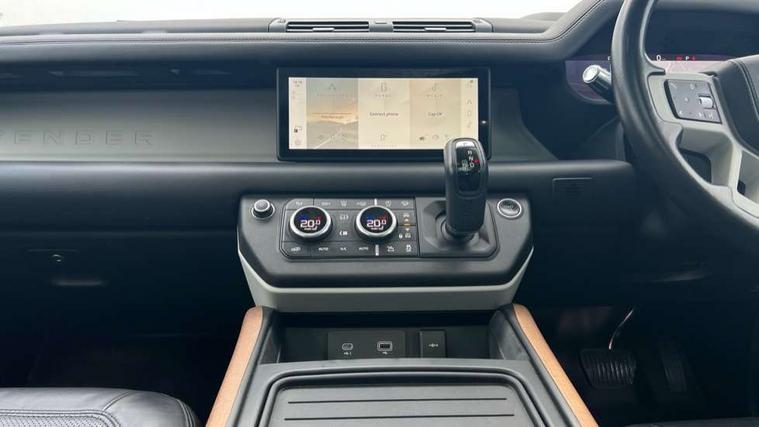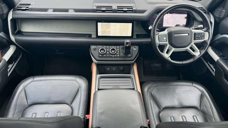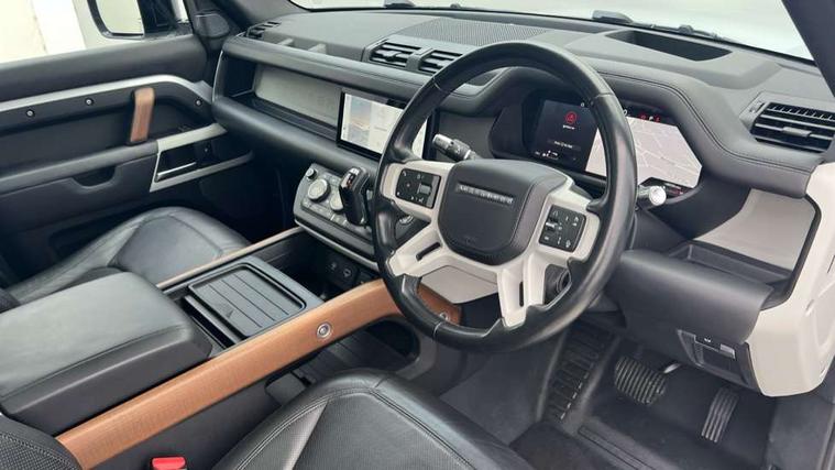 10" touch screen, 360 degree parking aid, 3D Surround Camera with 360 View, 180 Rear View, Front Traffic Detection, Forward Vehicle Guidance, Tow Hitch Assist and clear sight Ground View, Adaptive cruise control, Android Auto, Apple CarPlay, Blind spot assist, Bluetooth system, Clear exit monitor, Click and go integrated base unit, Connected navigation pro, Driver condition monitor, Interactive driver display, Lane keep assist, PAS, Pivi Pro connected navigation system with upgraded Infotainment, Rear collision monitor, Rear traffic monitor, Traffic sign recognition with adaptive speed limiter, Trip computer, Wade Sensing, Adaptive dynamics, Electronic air suspension, DAB Radio (Digital Audio Broadcasting), Automatic headlight levelling, Automatic headlights, ClearSight interior rear view mirror, Front fog lights, Heated windscreen, LED tail lights, Matrix LED headlights with signature DRL, Power fold, auto-dimming, heated door mirrors with memory and approach lights, Puddle lights, Rain sensing windscreen wipers, Signature graphic (with interior storage), Sliding panoramic roof, Standard treadplates, 14 way heated and cooled electric adjustable memory front seats with 4 way manual headrests, Carpet mats, Electric reach + rake adjustable steering column, Extended leather upgrade, Front passenger isofix child seat attachment, Heated steering wheel, Leather gearshift, Leather steering wheel, Loadspace cover, Morzine headlining, Multifunction steering wheel, Rear headrests, Rear ISOFIX, Sunvisors with illuminated vanity mirrors, Twin front cupholders with cover, Windsor leather upholstery, Online pack with data plan - Defender, 5 x 3 point seatbelts, ABS, Driver and passenger airbags, Emergency braking, ESP + traction control, TPMS (Tyre pressure monitoring system), Alarm, Immobiliser, Intrusion sensor, Keyless entry and go, Locking wheel nuts, Remote locking,