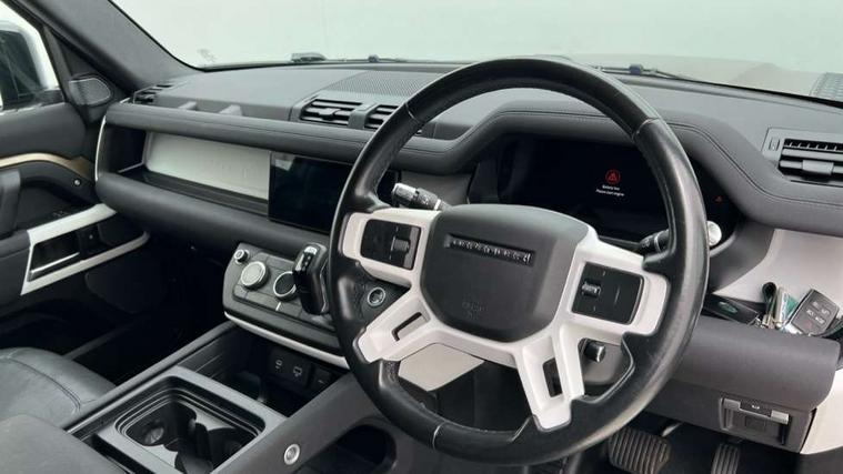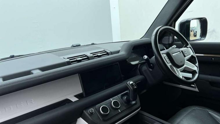 Customer Configurable Autolock, 360 parking aid, 3D Surround Camera with 360 View, 180 Rear View, Front Traffic Detection, Forward Vehicle Guidance, Tow Hitch Assist and clear sight Ground View, Blind spot assist, Brake Hold, Driver condition monitor, Electric power assisted steering (EPAS), Interactive Driver display, Lane keep assist, Low traction launch, Pivi pro connected, Rear traffic monitor, Traffic sign recognition adaptive speed limiter, Trip computer, Tyre pressure monitor, Wade Sensing, Android Auto, Apple CarPlay, DAB Radio (Digital Audio Broadcasting), Meridian 280W sound audio system with 7 speakers with subwoofer, Alpine lights, Assisted tailgate, Auto High Beam Assist, Automatic headlight levelling, Centre high mounted stop light, ClearSight interior rear view mirror, Electric heated/power fold door mirrors with approach lights and auto dimming driver side, Electric windows with one touch open/close and anti-trap, Exterior signage panel, Follow me home lighting, Front fog lights, Heated rear window with timer, LED tail light, Premium LED headlights with signature DRL, Privacy glass, Puddle lights, Rain sensing wipers, Rear fog lights, Rear wash wiper, Side-hinged tailgate, Standard roof, Standard tread plates, 40:20:40 folding rear seats with centre armrest, Carpet mats, Clear exit monitor, Click and go integrated base unit, Dual zone climate control, Durable rubber cabin flooring, Electric adjustable steering column, Footwell lights, Front passenger seat ISOFIX points, Glovebox storage, Grained Leather upholstery, High sided rubber mats, Leather gearshift, Loadspace hooks, Loadspace rubber mat, Lockable and illuminated forward underfloor storage, Overhead stowage for sunglasses, Rear centre headrest, Rear reading light, Signature graphic, Sunvisors with illuminated vanity mirrors, Online pack - Defender with data plan, Brake pad wear indicator, Electronic traction control, Emergency braking, Front airbags, with passenger seat occupant detector, Power operated child locks, Remote for (e-Call, Optimised assistance call, InControl app, Climate, beep and flash and door), Seat belt reminder, Intrusion sensor, Keyless entry system, Locking wheel nuts, ABS and EBA, CBC - (Cornering brake control), Dynamic stability control, Electronic park brake, Gradient acceleration control, Hill Descent Control, Hill start assist, Particulate filter (DPF), Push button start, Roll stability control, Trailer stability assist,