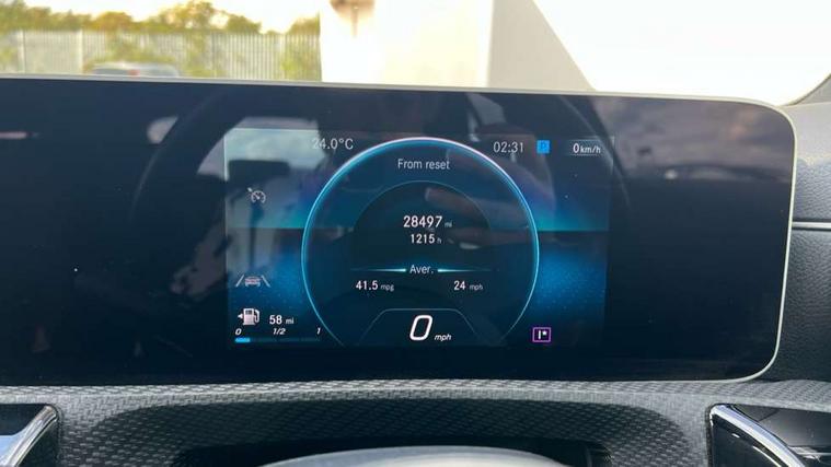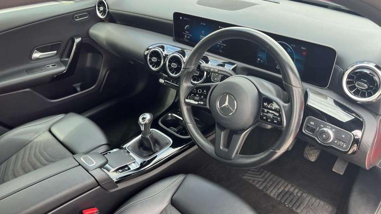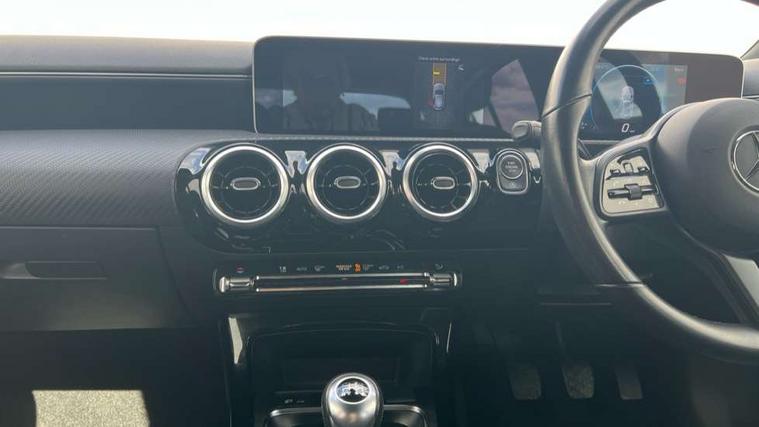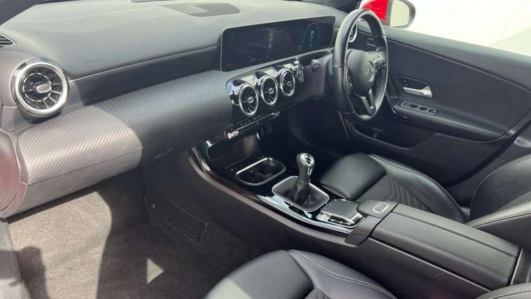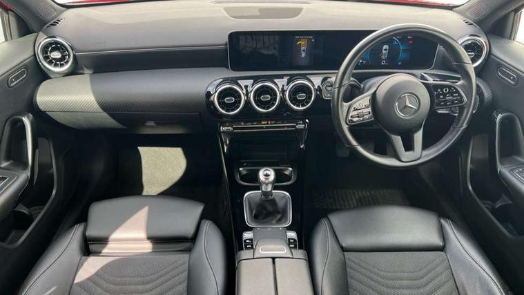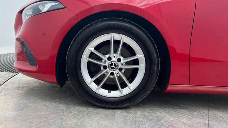 180 degree rear view camera with parking guidelines, 7" colour screen in instrument panel, Active lane keep assist, Active park assist with parktronic system including front and rear parking sensors, Attention assist, Brake pad wear indicator warning light, Cruise control + speed limiter, Direct steering, Dual bluetooth interfaces, DYNAMIC SELECT with a choice of driving modes (ECO, Comfort, Sport and Individual), ECO start/stop function, Fluid level warning indicator for fuel, oil, coolant and washer fluid, Hard-disk navigation, Hey Mercedes Voice activation, Lamp failure indicator, Mercedes me connect including emergency call system, accident recovery, breakdown and maintenance management, Outside temperature gauge, Owners manual in English, Radio aerial integrated into roof spoiler, Service indicator (ASSYST), Speed sensitive power steering, Trip computer, Lowered comfort suspension, 2 USB ports (type C) in rear stowage compartment and one in front of center console, DAB Digital radio, MBUX multimedia system with DAB digital radio and touchpad including satellite navigation, Mercedes-Benz sound system - 100W, 4 Electric Front and Rear windows, Adaptive brake lights, Body colour bumpers, Body colour door handles, Body colour side skirt, Body coloured door mirrors, Chrome beltline trim, Diamond radiator grille with black pins with one louvre in silver + chrome insert, Electric adjustable and heated door mirrors with integrated LED side indicators, Halogen headlamps with integrated daytime running lights, Headlamp assist automatic headlamp activation, Heated glass rear windscreen + timer control, LED third brake light, Part LED tail light, Rain sensing windscreen wipers with two sensitivity settings, Rear fog lights, Rear wiper, Window line trim strip in black, 3 Spoke leather multi function steering wheel, 40:20:40 split folding rear seats, Air conditioning thermatic, Artico man-made leather/Bertrix fabric upholstery, Auto Mercedes-Benz child seat recognition sensor, Black air vents with surround in silver chrome, Black roof lining, Controller on centre console with chrome surround, Front centre armrest with storage compartment, Front comfort seats with adjustable head restraints, Front door sills with Mercedes Benz lettering, Front seat backs luggage nets, Front seat cushion length adjustment, Heated front seats, Height/reach adjustable steering column, Manual height adjustable front seats, Rear head restraints, Seat occupancy sensor for front passenger seat, Spectacles compartment for driver, Sunvisors with illuminated vanity mirrors, Touchpad on center console, Twin front cupholders, Velour floor mats, Light and sight pack - A Class, Mirror package - A Class, Seat comfort pack - A Class, 3 rear 3 point seatbelts, ABS with Brake Assist, Active bonnet, Active brake assist includes forward collision warning system with autonomous braking, Adaptive brake assist with hold function and hill start assist, Black seatbelts, Childproof locks manually operated for rear doors and electrically operated for rear power windows, Crash responsive emergency lighting, Driver and passenger head and side airbags, Drivers knee airbag, Dual stage driver/passenger airbags, Electronic parking brake, ESP curve dynamic assist, ESP with ASR, Front and rear seatbelt reminder, ISOFIX and top tether child seat fixing points in two outer rear seats, Tyre pressure monitoring system, Warning triangle and first aid kit, Window airbags, Alarm system/interior protection/immobiliser, Keyless Go, Remote central locking and crash sensor with emergency opening function, 16" 5 twin spoke light alloy wheels painted in vanadium silver, Summer tyres, Tirefit sealant kit,