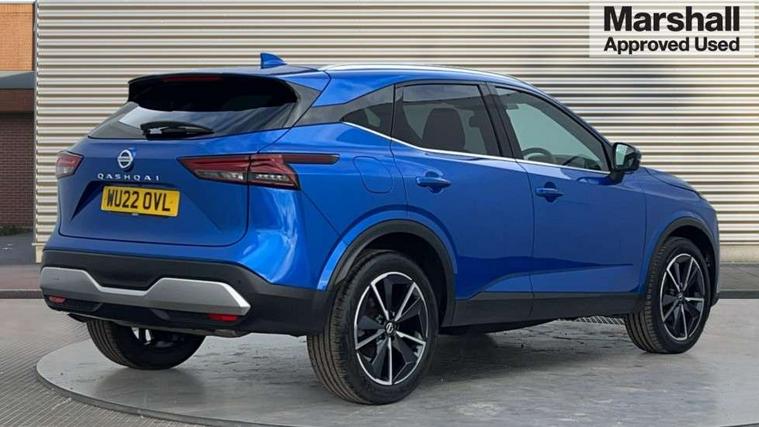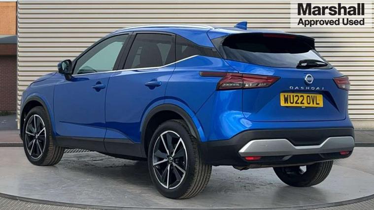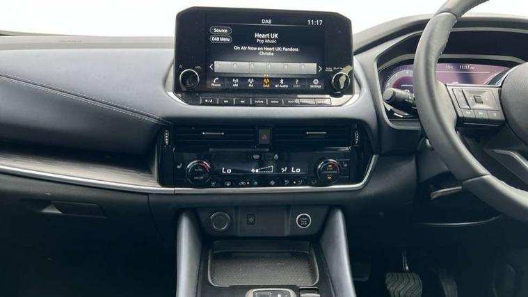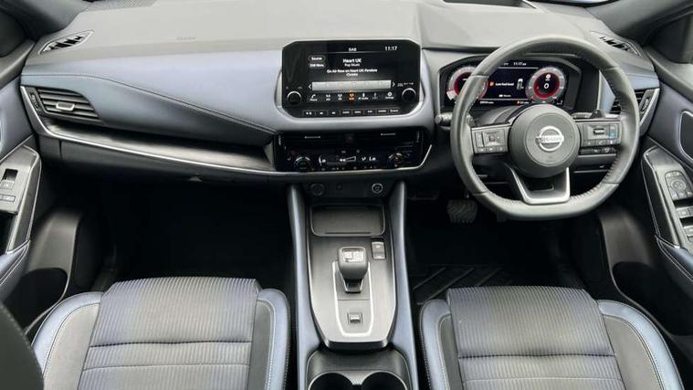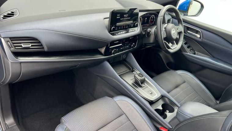 Blind spot warning, Drive modes (sport, normal, eco), Electric speed sensitive power steering, Emergency and breakdown call, Front and rear parking sensors, Full Digital 12.3" TFT Digital Combimeter, Google maps services - search, weather, 3D maps and Google street view, Hands free power tailgate, Idle stop/start system, Intelligent around view monitor, Intelligent Cruise control (ICC), Intelligent driver alert system, Intelligent forward collision warning, Intelligent lane intervention, Lane departure prevention, Lane departure warning system, Moving object detection, Nissan connect 9" touchscreen infotainment system, Nissan connect navigation, Push button starter, Rear cross traffic alert, Remote control services - door locks, lights, horn and car locator, Telematics - notifications and connectivity services, TomTom live traffic services, Traffic sign recognition with legal speed adjustment, Trip computer, Virtual personal assistant and firmware over the air capability, Wireless Apple CarPlay and wired Android Auto, Wireless charging pad, 6 speakers, AM/FM audio system with DAB, Bluetooth audio streaming, Front USB connections (Type-A and Type-C), Rear USB charging only ports (Type-A and Type-C), Auto dimming rear view mirror, Auto rear wiper when reversing, Body colour mirror caps, Body coloured door handles, Bodyside mouldings, Chrome side window finisher, Door handle with button, Dusk sensor, Electric auto folding door mirrors, Electrically adjustable and heated door mirrors with LED turn indicator, Fixed panoramic glass roof with electric sunshade, Follow me home headlights, Front and rear LED turning signals, Intelligent auto headlights, LED daytime running lights, LED rear lights, One touch front and rear electric windows with remote opening and closing, Partially body coloured bumpers, Privacy glass, Rear roof spoiler, Rear side wing doors, Rear styling plate, Roof rails, Shark fin antenna, Splash free rain sensing wipers, Super UV and infrared cut glass, Three blink turn signal, 12v power socket in dashboard and luggage, 2 way electrical driver lumbar adjustment, 2x Rear coat hooks, 3 bench rear seats in 2nd row, 3 rear headrests, 4 folding assist grip, 6 Luggage hooks - 4 on floor, 2 on side, 60/40 split folding rear seat bench, 8 way electric adjustable drivers seat, Ambient lighting around centre console, Ambient lighting in front doors, Centre console storage tray, Chrome interior door handles, Cloth/syntech leather monoform upholstery, Dark headlining, Driver and front passenger sunvisors with illuminated vanity mirrors, Driver seat back pocket, Dual zone automatic climate control with pollen filter, Front and rear door storage, Front cupholders x 2, Front door with bottle holders, Glovebox with light, Hard trunk cover, Height adjustable front headrests, Leather steering wheel, Luggage board system, Luggage space lighting, Manual lumbar support on passenger seat, Manually adjustable passenger (slide recline + lifter), Multifunction steering wheel, Passenger seat back pocket, PVC front centre console and armrest, Rear armrest with 2 cupholders, Rear door bottle holders, Single front passenger seat, Soft PVC kneepad, Steering wheel gearshift paddles, Steering wheel switches, Tilt/telescopic adjustable steering wheel, Two rear isofix child seat anchorage points with top tether, Welcome light and doors with console tray ambient lighting, Heat pack - Qashqai, Tech Pack (ProPILOT + HUD), 3x3 point rear seatbelt pretensioners + load limiters, ABS, ESP, EBD and brake assist, Active brake limited slip, Auto hold function, Child locks on rear doors, Curtain and front side, far side airbags, Driver and passenger airbags, Driver, passenger and 2nd row rear seat belt reminder, Electronic parking brake, Front seatbelt pretensioners + load limiters, Height adjustable front seatbelts, Hill start assist, Intelligent blind spot intervention, Intelligent front emergency braking with pedestrian, cyclist recognition and junction assist, Intelligent rear automatic braking, Tyre pressure monitoring system, Vehicle dynamic control, Capless fuel filler, Engine immobiliser, Nissan i-key, Rear bumper with silver insert, Remote central door locking with deadlocking, Thatcham Cat.1 alarm, 19" Alloy wheels,