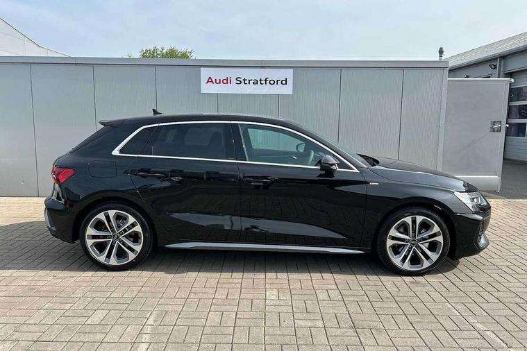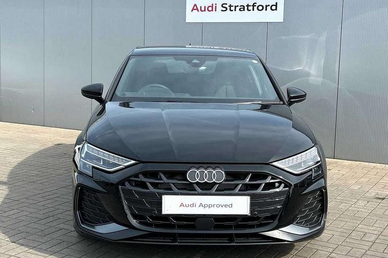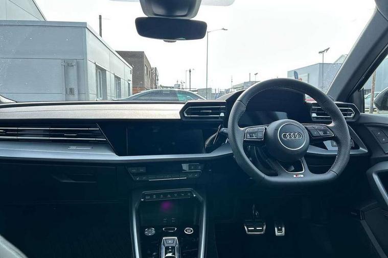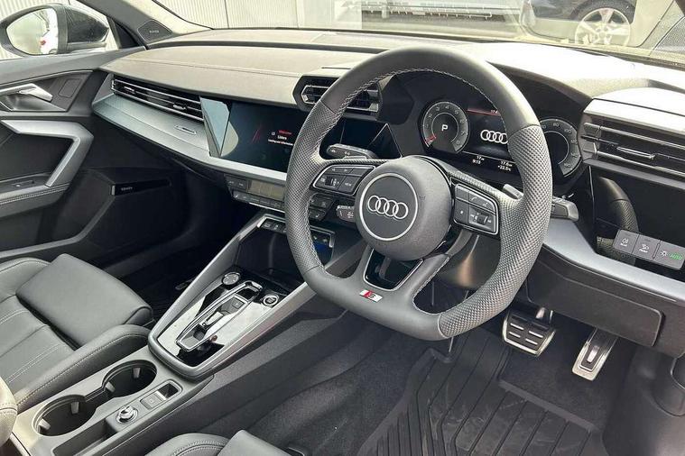 Adjustable speed limiter, Audi drive select, Audi smartphone interface with app store includes wireless Apple carplay, Android auto and Amazon alexa integration, Audi virtual cockpit plus - 12.3" full HD resolution dynamic digital instrument cluster, Automatic start/stop system with recuperation, Bluetooth interface, Camera based traffic sign recognition, Collision avoidance assistant, Cruise control, Distraction and Fatigue warning, e-Call (emergency call), Electromechanical power speed sensitive steering, Emergency assist, Lane departure warning system, MMI Navigation Plus with high resolution 10.1" colour touch screen display, Park Assist with parking system Plus, Service indicator, Tailgate, Trip computer, Voice control system with natural language interaction, Sports suspension, Audi Phonebox light with wireless charging, Audi sound system - 10 loudspeakers including centre loudspeaker and subwoofer, DAB Digital radio, USB ports with charging function in the rear, Acoustic glass windscreen, All weather light, Aluminium window trim, Auto dimming frameless rear view mirror, Automatic dynamic range control, Body colour exterior mirrors, Chrome exhaust tailpipes, Dipped beam, main beam, position light and turning light, Electrically adjustable/heated/folding/auto dimming door mirrors with integrated LED indications + kerb view function for passenger side, Exterior model badging, Front and rear side air inlets in grained matt black with dark liquid chrome frame, Front electric windows, Front radiator grill in high gloss dark chrome, Heat insulating glass windscreen, Illuminated door sills with aluminium inserts at the front with S logo, Intersection light, LED 3rd brake light, LED brake lights, LED daytime running x3, LED headlights with LED rear lights and dynamic rear indicators, LED rear number plate lights, LED reverse light, LED tail lights, Light and rain sensors, Manoeuvring light, Motorway light, Privacy glass - dark tinted rear window, rear door and side windows, Rear diffuser and grill in grained matt black with inlay in dark liquid chrome, Rear electric windows, Rear side wing doors, Rear wiper, S line bumpers, S roof spoiler, Side S line emblems on front wings, Side sill trim in dark liquid chrome, Static Cornering lights, 12V socket and storage compartment in front centre console, 3 seat bench in 2nd row, 3 spoke flat bottomed leather multifunction sport steering wheel with gear shift paddles, 3-zone deluxe automatic air conditioning, 4 way electrically adjustable lumbar support for driver and front passenger, 40/20/40 split folding rear seat bench, Black cloth headlining, Black front and rear floor mats, Front and rear centre armrest in artificial leather with contrasting stitching on armrests and instrument panel, Front and rear headrests, Heated front seats, Height and reach adjustable steering wheel, Manual boot compartment lid, Manually adjustable front seats, Rear centre armrest with cupholder, S badging on the steering wheel, Seat side bolsters, Single front passenger seat, Stainless steel pedals and front footrest in black, Twin leather upholstery with front sports seats S embossed logo, Aluminium interior elements pack - A3, Multi-coloured LED interior lighting package with Multi-coloured contour lighting of instrument panel - A3, 3x3 point rear seat belts, Driver and front passenger airbag with passenger airbag deactivation, Electronic Stabilisation Control (ESC) including ABS, ASR and EDL, First aid kit with warning triangle and 2 safety vests, Front side airbags with head airbags and interaction airbag, Hill hold assist, Pre-sense front with pedestrian and cyclist detection, Seatbelt monitoring, Tyre pressure loss indicator, Anti theft alarm, Anti-theft wheel bolts, Electronically operated child locks, Immobiliser, Remote central locking with safelock, Black dashboard, Inlay in dark aluminium spectrum,