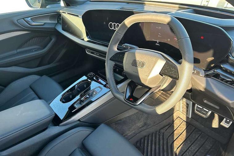 Adaptive cruise assist plus with steering intervention, Advanced driver attention and fatigue montior, Audi application store, Audi assistant, Audi connect emergency call and service, Audi drive select, Audi smartphone interface, Audi virtual cockpit plus with 11.9" OLED colour display, Automatic start/stop system with coasting functionality, Camera based traffic sign recognition, Garage door opener, Head up Display, Intersection assist, Lane change assistant with exit warning system, rear cross traffic alert and rear turn assist, Lane departure warning with emergency assist, MMI 10.9" front passenger touch display, MMI navigation plus with high resolution 14.5" OLED touchscreen colour display, Park assist plus, Parking system plus with 360 display, Progressive steering with servotronic, Swerve assist and turn assist, Top view camera, Traffic sign based speed limiter, Sports suspension with damper control lowered by 20mm, 2 USB-C ports in both the front and rear, Bang and Olufsen premium sound system with 3D sound, DAB digital radio reception, Smartphone compartment with wireless charging, Acoustic glass for front door windows, Aluminium window trims, Auto dimming rear view mirror, Body colour door mirrors, Clear glass, Digital OLED tail lights including communication light, Door mirrors - electrically adjustable, heated, folding and auto dimming on both sides, Front and rear electric windows, Front door sill trims with aluminium inlays, illuminated with 'S' logo, Headlight cleaning system, High beam assist, LED daytime running lights, LED third brake light, Manual sunshade for the rear door windows, Matrix LED headlights with eight light signatures selectable via the MMI or the myAudi app, Panoramic glass roof with switchable transparency, Privacy glass, Rear and side windows with heat insulating glass, Rear boot, Rear side wing doors, S Line badges on the front wings, S line bumpers, radiator grille and diffuser in phantom black and diffuser insert in matt anthracite, White rhombus logo projection light in exterior mirrors, Windscreen with acoustic glazing, 3 rear headrests, 3 seat rear bench, 3 spoke leather steering wheel with multi-function buttons with touch control, flattened on top and bottom, with S badging and contrast stitching, 3-zone automatic climate control, 4 way electric lumbar support for driver and front passenger, 40:20:40 split folding rear seat bench with centre armrest and cup holders, Comfort front centre armrest, Dynamic interaction light (coloured), Electric steering wheel adjustment, Electrically adjustable front seats, Front and rear floor mats, Front sport seats with integrated headrest and S embossed logo, Headlining in black cloth, Heated front and outer rear seats, Heated steering wheel, i-Size child seat mounting on the front passenger side and i-Size and top tether on the outer rear seats, Increased charging capacity for USB ports 2X100 Watts in rear, 2X60 Watts in front, Luggage compartment lid, electrically opening and closing, Single front passenger seat, Stainless steel pedals and footrest, Steering wheel grips in perforated leather and shift paddles, Twin leather upholstery, Ambient lighting package plus - A5, 3x3 point rear seat belts, Acoustic vehicle alerting system, Convenience key with safelock, Driver airbag, Electric child safety locks, First aid kit with warning triangle and vests, Front emergency brake assist, Front passenger airbag, Front passenger airbag deactivation, Hill hold assist, Occupant detection in rear seat area, Proactive passenger protection system for front, sides and rear, Seat belt monitoring with rear seat occupant reminder, Side airbags in front and rear with head airbag system and front interaction airbag, Tyre pressure loss indicator, Anti theft alarm, Anti-theft wheel bolts, Keyless Go, Accents in the interior in vanadium look, Black dashboard with contrast stitching, Inlays in matt brushed aluminium with linear embossing, anthracite, Softwrap in leatherette with contrast stitching, Upper and lower interior elements in leatherette, 19" 5 twin V spoke design alloy wheels in graphite grey, Tyre repair kit,