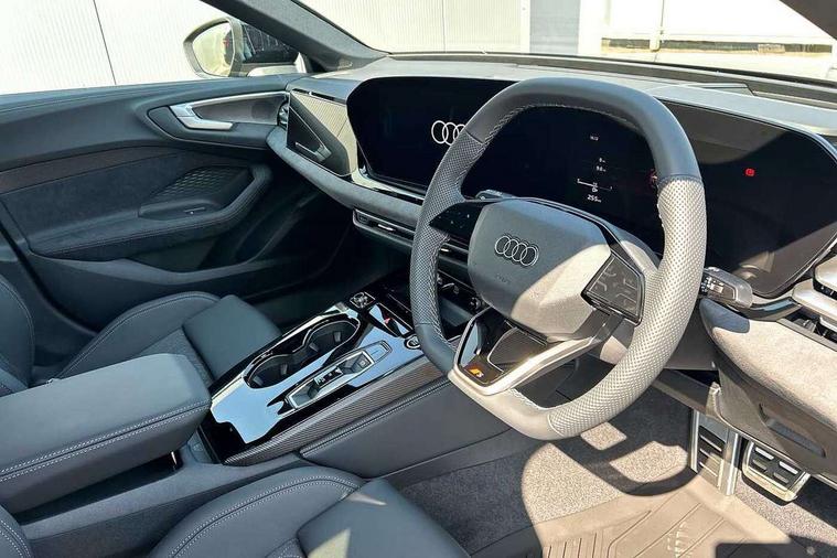 Adaptive cruise control, Advanced driver attention and fatigue montior, Audi application store, Audi assistant, Audi connect emergency call and service, Audi drive select, Audi smartphone interface, Audi virtual cockpit plus with 11.9" OLED colour display, Automatic start/stop system with coasting functionality, Camera based traffic sign recognition, Intersection assist, Lane change assistant with exit warning system, rear cross traffic alert and rear turn assist, Lane departure warning with emergency assist, MMI 10.9" front passenger touch display, MMI navigation plus with high resolution 14.5" OLED touchscreen colour display, Park assist plus, Parking system plus with 360 display, Progressive steering with servotronic, Swerve assist and turn assist, Top view camera, Traffic sign based speed limiter, Sports suspension lowered by 20mm, 2 USB-C ports in both the front and rear, Audi sound system impressive sound with 10 loudspeakers including centre speaker and subwoofer, 6-channel amplifier with a total output of 180 watts, DAB digital radio reception, Smartphone compartment with wireless charging, Aluminium window trims, Auto dimming rear view mirror, Black door handles, Dark chrome-plated tailpipe trims, Door mirrors - electrically adjustable, heated, folding and auto dimming on both sides, Front and rear electric windows, Front door sill trims with aluminium inlays, illuminated with 'S' logo, Headlight cleaning system, High beam assist, LED daytime running lights, LED rear lights pro incl. dynamic rear indicators and illuminated light strip with animated coming and leaving home function, LED third brake light, Matrix LED headlights with eight light signatures selectable via the MMI or the myAudi app, Privacy glass, Rear and side windows with heat insulating glass, Rear boot, Rear side wing doors, S Line badges on the front wings, S line bumpers, radiator grille and diffuser in phantom black and diffuser insert in matt anthracite, White rhombus logo projection light in exterior mirrors, Windscreen with acoustic glazing, 3 rear headrests, 3 seat rear bench, 3 spoke leather steering wheel with multi-function buttons with touch control, flattened on top and bottom, with S badging and contrast stitching, 3-zone automatic climate control, 40:20:40 split folding rear seat bench with centre armrest and cup holders, Comfort front centre armrest, Electrically adjustable front seats, Front and rear floor mats, Front sport seats with integrated headrest and S embossed logo, Headlining in black cloth, Heated front seats, i-Size child seat mounting on the front passenger side and outer rear seats, i-Size and top tether on the outer rear seats, Luggage compartment lid, electrically opening and closing, Manual steering column height and depth adjustment, Memory function for driver seat, Single front passenger seat, Stainless steel pedals and footrest, Steering wheel grips in perforated leather and shift paddles, Ambient lighting package plus - A5, Black styling package plus - A5, 3x3 point rear seat belts, Acoustic vehicle alerting system, Convenience key with safelock, Driver airbag, Electric child safety locks, First aid kit with warning triangle and vests, Front emergency brake assist, Front passenger airbag, Front passenger airbag deactivation, Hill hold assist, Occupant detection in rear seat area, Proactive passenger protection system for front, sides and rear, Red brake calipers, Seat belt monitoring with rear seat occupant reminder, Side airbags in front and rear with head airbag system and front interaction airbag, Tyre pressure loss indicator, Anti theft alarm, Anti-theft wheel bolts, Keyless Go, Accent surfaces and control buttons in gloss black, Black dashboard with contrast stitching, Softwrap in Dinamica with contrast stitching, Upper and lower interior elements in dinamica microfiber, 20" 5 arm fold design Audi sport alloy wheels in silk matt grey and gloss turned finish, Tyre repair kit,