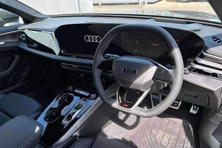 Adaptive cruise control, Advanced driver attention and fatigue montior, Audi application store, Audi assistant, Audi connect emergency call and service, Audi drive select, Audi smartphone interface, Audi virtual cockpit plus with 11.9" OLED colour display, Automatic start/stop system with coasting functionality, Camera based traffic sign recognition, Intersection assist, Lane departure warning, MMI navigation plus with high resolution 14.5" OLED touchscreen colour display, Park assist plus, Parking system plus with 360 display, Progressive steering with servotronic, Rear view camera, Swerve assist and turn assist, Traffic sign based speed limiter, Sports suspension lowered by 20mm, 2 USB-C ports in both the front and rear, Audi sound system impressive sound with 10 loudspeakers including centre speaker and subwoofer, 6-channel amplifier with a total output of 180 watts, DAB digital radio reception, Smartphone compartment with wireless charging, Aluminium roof rails, Aluminium window trims, Auto dimming rear view mirror, Body colour door mirrors, Door mirrors - electrically adjustable, heated, folding and auto dimming on both sides, Front and rear electric windows, Front door sill trims with aluminium inlays, illuminated with 'S' logo, High beam assist, LED headlights Plus incl. digital daytime running lights, turning light, all-weather light, motorway light, manouevring light and intersection light, LED rear lights pro incl. dynamic rear indicators and illuminated light strip with animated coming and leaving home function, LED third brake light, Privacy glass, Rear and side windows with heat insulating glass, Rear side wing doors, Rear wash/wipe, S Line badges on the front wings, S line bumpers, radiator grille and diffuser in phantom black and diffuser insert in matt anthracite, White rhombus logo projection light in exterior mirrors, Windscreen with acoustic glazing, 3 rear headrests, 3 seat rear bench, 3 spoke leather steering wheel with multi-function buttons with touch control, flattened on top and bottom, with S badging and contrast stitching, 3-zone automatic climate control, 40:20:40 split folding rear seat bench with centre armrest and cup holders, Comfort front centre armrest, Front and rear floor mats, Front seats with manual adjustment for position and 4-way electric lumbar support, Front sport seats with integrated headrest and S embossed logo, Headlining in black cloth, Heated front seats, i-Size child seat mounting on the front passenger side and outer rear seats, i-Size and top tether on the outer rear seats, Luggage compartment lid, electrically opening and closing, Manual steering column height and depth adjustment, Single front passenger seat, Stainless steel pedals and footrest, Steering wheel grips in perforated leather and shift paddles, Ambient lighting package plus - A5, 3x3 point rear seat belts, Driver airbag, Electric child safety locks, First aid kit with warning triangle and vests, Front emergency brake assist, Front passenger airbag, Front passenger airbag deactivation, Front side airbags with head airbag system and front interaction airbag, Hill hold assist, Seat belt monitoring with rear seat occupant reminder, Tyre pressure loss indicator, Anti theft alarm, Anti-theft wheel bolts, Keyless Go, Accent surfaces and control buttons in gloss black, Black dashboard with contrast stitching, Inlays in matt brushed aluminium with linear embossing, anthracite, Softwrap in leatherette with contrast stitching, Upper and lower interior elements in leatherette, Tyre repair kit,