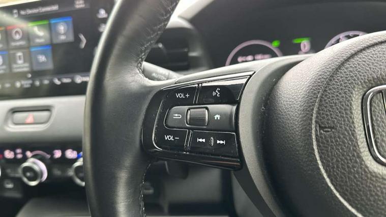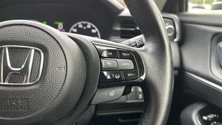 7" TFT instrument cluster, Adjustable speed limiter, Agile handling assist, BLIS (Blind Spot Information System) with Cross Traffic Monitor, Bluetooth hands free telephone connection, Drive modes select (Eco, normal and sport), eCall emergency system, Electric power steering, Emergency stop signalling system, Forward collision warning, Handsfree power tailgate with walkaway close, Honda CONNECT with navigation, 9" touchscreen, AM/FM/DAB/Apple Carplay and android auto, Honda sensing with blind spot information, adaptive cruise control and lane keep assist, Idle stop, Intelligent speed limiter, Low speed following, Rear parking sensors and rear view camera, Tachometer, Traffic sign recognition, WiFi connectivity, Vehicle stability assist, 'Shark fin' mobile antenna, 2 USB sockets in rear, 2x USB Front socket (1 data & 1 charge), 4 speakers, Steering wheel mounted remote controls, Auto dimming rear view mirror, Auto high beam, Automatic coming home lighting, Automatic headlights, Automatic rain sensing wipers, Body colour bumpers, Body colour tailgate spoiler, Body coloured door handles, Electric front and rear windows, Electrically adjustable and heated door mirrors, Front sequential turn, Front wiper de-icer, Headlight washers, Heated front windscreen, Heated rear window, High gloss side window surrounds, High level third brake light, LED daytime running lights, LED front fog lights, LED headlamps, Manual headlight levelling, Rear wiper, Retractable/reverse auto tilt door mirrors, Variable front intermittent wipers, Windscreen shadeband, 3 rear headrests, 60/40 split folding rear seat, Ambient interior lighting, Cargo net hooks, Courtesy lights, Driver seat back pocket, Driver's seat height adjustment, Driver/passenger sunvisors with illuminated vanity mirrors, Dual automatic air conditioning, Front and rear map reading lights, Front head restraints, Front seat armrests, Heated front seats, Heated steering wheel, Isofix points, Luggage area under floor storage box, Magic seat flexibility system, Manual height/reach adjust steering wheel, Paddle shift controls, Passenger seat back pocket, Rear centre armrest, Rear ventilation, Smooth leather steering wheel, Tonneau cover, Trunk light, 3x3 point rear seatbelts, ABS+EBD+Brake assist, Anti-whiplash front headrests, Collision mitigation braking system, Collision mitigation throttle control, Deflation detection system, Dual front SRS airbags, Electronic parking brake, Front and rear curtain airbags, Front and rear safety belts with Emergency Locking Retractor, Front side airbags, Hill descent control, Hill start assist, Low speed safety system, Passenger SRS airbag cut-off device, Regenerative braking system, Door deadlocks, Immobiliser, Keyless smart entry with push button start, Mirrors and windows key fob operation, Remote central locking with 2 remote folding keys, Security alarm, 18" Black cut alloy wheels, Tyre repair kit,