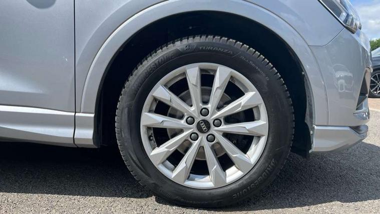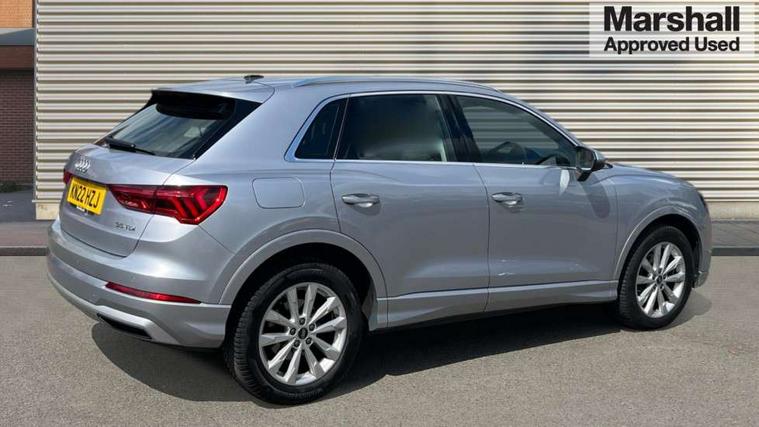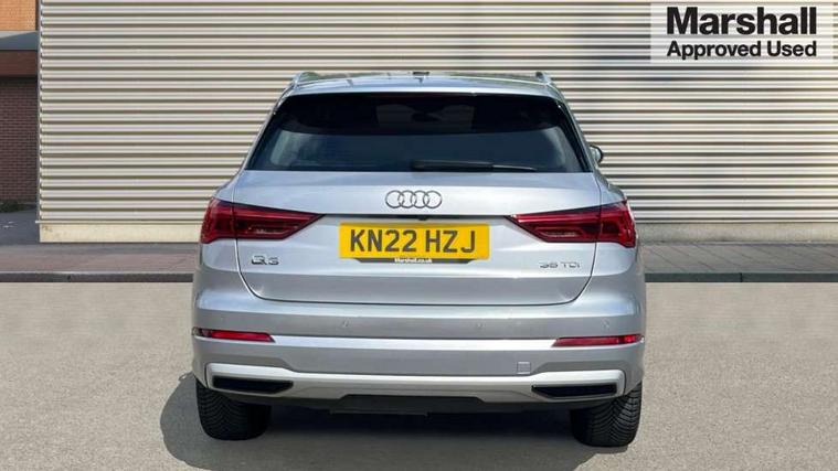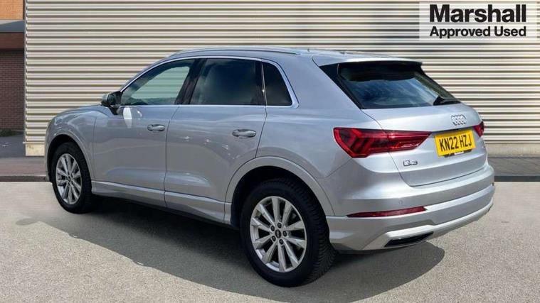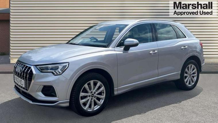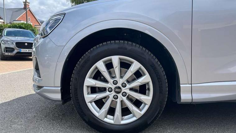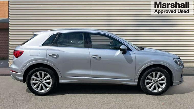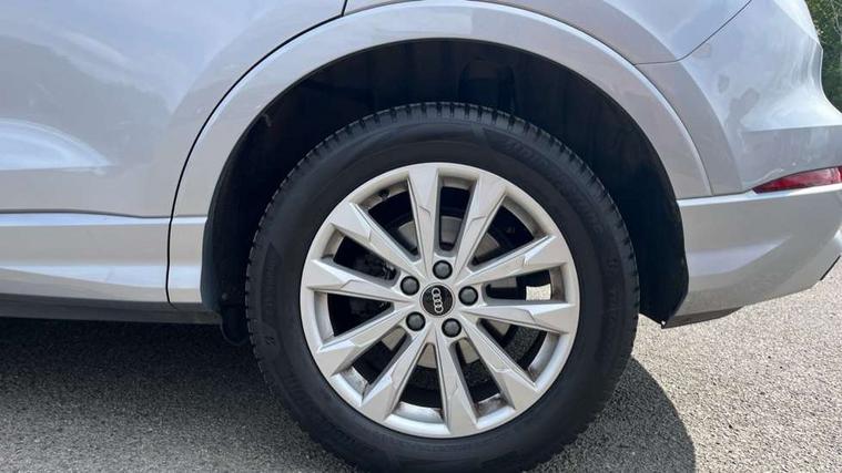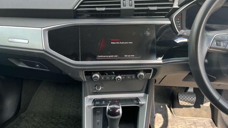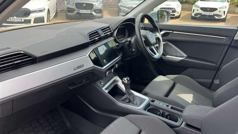 Amazon alexa Integration, Audi connect safety and service (e-call), Audi drive select, Audi lane departure warning, Audi smartphone interface includes wireless Apple carplay/Android Auto, Audi Virtual Cockpit - 10.25" display, Bluetooth interface, Camera based traffic sign recognition, MMI Navigation Plus with high resolution 10.1 inch touchscreen colour display, Power operated tailgate, Progressive steering, Service interval indicator, Start stop system with recuperation, Voice control system with natural language interaction, Diesel particulate filter, Standard suspension, 2 USB-C ports with charge and data functions, 6 passive loudspeakers, DAB digital radio module, Acoustic windscreen, Aluminium roof rails, Aluminium window trim, Auto dimming frameless rear view mirror, Body coloured bumpers, Electrically folding, adjustable and heated door mirrors with integrated LED side indicators and kerb view function for passenger side, Front and rear electric windows, Front fog lights, Front side air inlets in matt selenite silver, Front spoiler in matt selenite silver, Grille vertical bars in aluminium silver/Matt, High gloss black finish B and C pillars, LED headlights with LED daytime running lights, LED rear lights, LED third brake light, Rain and light sensors, Rear diffuser strip in matt selenite silver, Rear side wing doors, Rear wiper, Silver chrome grille surround, Titanium black radiator grille, Variable front intermittent wipers, 12V socket in rear centre console, 3 seat bench in 2nd row, 3 spoke multi-function leather steering wheel, 40:20:40 folding with manual adjustment for 60:40 forwards/backwards position and backrest angle, Aluminium door sill trims, Dual zone electronic climate control, Front and rear floor mats, Front and rear headrests, Front and rear roof module including reading lights, Front centre armrest, Glove compartment lighting, Height and reach adjustable steering wheel, ISOFIX child seat mounting for front passenger with airbag deactivation and outer rear seat including top tether attachment point for outer rear seats, Luggage compartment light, Lunar silver cloth headlining, Manual front seats with height adjustment, Single front passenger seat, Stainless steel luggage compartment sill finisher, Non smoking pack - Q3, 3x3 point rear seatbelts, 6 airbags - Driver, front passenger, curtain and side windows, Electrically operated child locks on rear doors, Electromechanical parking brake, Electronic stabilisation control including ABS, ASR and EDL, Front seatbelt reminder, Hill descent control, Hill hold assist, Pre sense basic, Seatbelt monitoring, Tyre pressure warning, Warning triangle and first aid kit, Anti theft alarm, Anti theft wheel bolts, Audi pre-sense front with pedestrain and cyclist recognition, Immobiliser, Remote central locking, Micrometallic silver inlay, MMI touch colour display in glass look, black with surround in aluminium look,