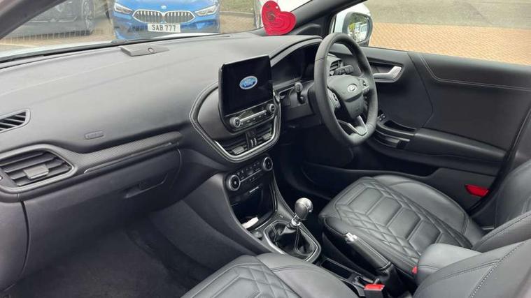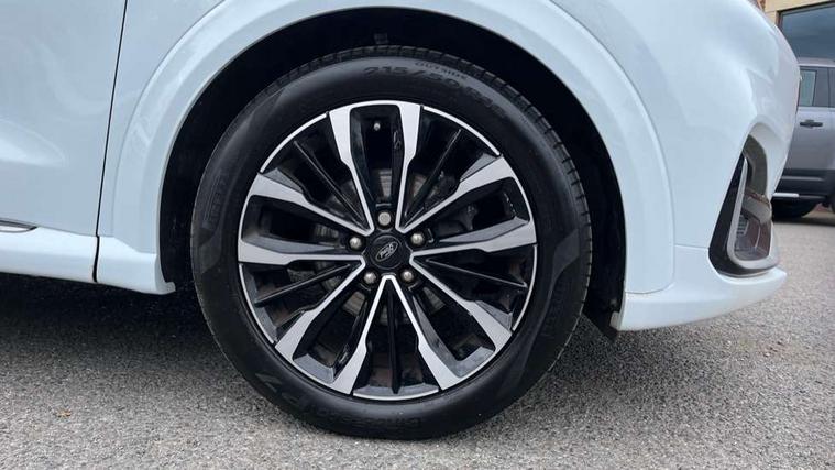 Driver impairment monitor, Emergency call service, Ford easy fuel, Front and rear parking sensors, Full digital 12.3" instrument cluster, Lane keeping aid with lane departure warning, Power assist steering, Selectable drive modes(Normal, sport, Eco, trail, slippery), Speed sign recognition, Sport suspension, Automatic headlights with auto high beam, Automatic rain sensing wipers, Bodyside chrome styling, Fixed LED signature headlamps, Front fog lamps, Gloss black with chrome elements on front and rear bumpers, High chrome waistline, LED daytime running lights, LED rear lamps, Power foldable heated door mirrors with puddle lamps and puma logo protection, Privacy glass to side rear windows and tailgate glass, Quickclear heated windscreen, Rear side wing doors, Rear wiper, Third brake light, Vignale body styling kit with unique grille and large body colour rear spoiler, 3 seat bench in 2nd row, Centre console with armrest and stowage, Electronic automatic temperature control (EATC), Ford megabox extended bootspace, Front and rear floor mats, Front and rear head restraints, Heated steering wheel and heated front seats, Manual 4 way driver seat adjust with lumbar adjustment and massage function, Manual 4 way passenger seat adjust with lumbar adjustment and massage function, Premium sensico leather upholstery with metal grey stitching, Premium sensico perforated flat bottomed steering with metal grey stitching, Premium sensico wrapped instrument cluster, Single front passenger seat, Wireless charging pad with electronic air temperature control (EATC), B&O Premium Audio system + Ford SYNC 3 navigation pack - Puma, Driver assistance pack with Lane departure warning - Puma, Winter pack - Puma, 3 rear seatbelts, Child safety lock, Electronic stability control (ESC) and hill start assist, Pedestrian/cyclist detection & post-collision braking, Pre collision assist with autonomous emergency braking, Tyre pressure monitoring system (TPMS), Keyless entry and power start button, Thatcham alarm, Carbon look interior deco spears,