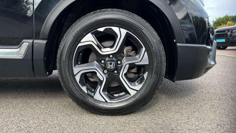 Adaptive cruise control, Agile handling assist, BLIS (Blind Spot Information System) with dual power heated blind spot mirrors, Bluetooth hands free telephone connection, Economy mode, Electric power steering, Emergency stop signalling system, Forward collision warning, Front and rear parking sensors, Honda CONNECT with GARMIN Navigation + 7" touchscreen, DAB radio, Apple CarPlay, Android Auto, Aha app integration and internet browsing, Idle stop, Intelligent multi info display, Lane departure warning system, Lane keep assist system, Rear view camera, Road departure mitigation, Speed limiter, Traffic sign recognition, Vehicle stability assist, 2 USB sockets in rear, 2x USB sockets in front, 8 Speakers, DAB Digital radio, Steering wheel mounted controls, Subwoofer, Aspheric door mirrors, Auto dimming rear view mirror, Automatic headlights with dusk sensor, Body colour bumpers, Body colour door handles, Cornering light, Door mirrors tilt when reversing, Electric front windows/one touch facility, Electric rear windows + one touch facility, Electrically adjustable and heated door mirrors, Electrically retractable door mirrors, Front windscreen de-icer, LED daytime running lights, LED front fog lights, LED Headlights, LED rear lights, Rain sensor, Rear privacy glass, Rear wiper, Roof rails, Shark fin roof aerial, Trailer stability assist, Welcome home function, 60/40 split folding rear seat, Accessory sockets, Ambient interior lighting, AWD emblem rear, Cargo hooks, Courtesy lights, Driver's electric adjustable lumbar support, Driver/passenger front seatback pockets, Driver/passenger sunvisors with illuminated vanity mirrors, Dual zone automatic climate control, Electric lumbar adjustment on passenger's seat, Footwell ambient lighting, Front centre armrest, Front map lights, Front passenger seat height adjust, Gear shift indicator, Heated front seats, Height adjustable driver's seat, Illuminated glovebox, Instrument panel with garnish wood film, Isofix child seat preparation, Leather gearknob, Leather steering wheel, Leather upholstery, Rear air vents, Rear centre armrest, Rear headrests, Rear reading lights, Rear seat conversation mirror, Silver interior door handles, Sunglasses holder with mirror, Tilt/telescopic adjustable steering wheel, Tonneau cover, Trunk light, 5 x 3 point seatbelts, ABS/EBD, Anti-whiplash front headrests, Brake assist function, Collision mitigation braking system, Deflation detection system, Driver airbag, Electronic parking brake with auto hold, Front and rear curtain airbags, Front side airbags, Hill start assist, Passenger airbag deactivate switch, Honda super locks, Immobiliser, Remote keyless entry, Security alarm, Ultrasonic sensor and tilt sensor, Temporary spare wheel,