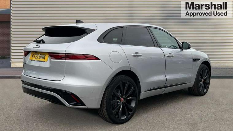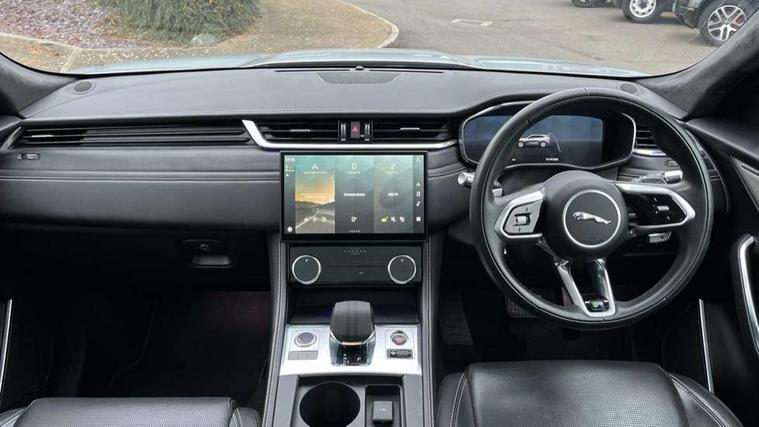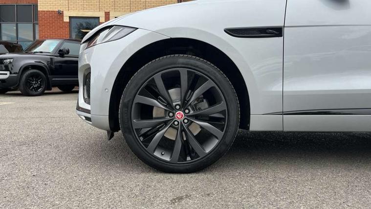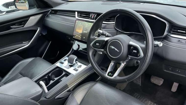 11.4" touchscreen, 3D surround camera, Adaptive cruise control, Android Auto, Apple car play, Blind spot assist, Bluetooth connectivity, Clear exit monitor, Driver alert system, Driver condition monitor, Eco driving style assistant, Electric power assisted steering, InControl remote, Interactive Driver display instrument cluster, Jaguar Toggle shift selector, Lane departure warning system, Lane keep assist, Outside temperature gauge, Personalisation profile management, Pivi pro connected navigation system with app interface and media storage, Pro services and wifi hotspot, Push button starter, Rear collision monitor, Rear traffic monitor, Service interval indicator, Speed proportional steering, Start up sequence with movement in dials and lighting, Traffic sign recognition with adaptive speed limiter, Trip computer, Voice control system, 8 speed automatic transmission, Adaptive dynamics, All terrain progress control, All Wheel Drive (AWD), Configurable dynamics, Open differential with torque vectoring by braking, AM/FM radio, Bluetooth streaming, DAB Radio (Digital Audio Broadcasting), Dynamic volume control, InControl apps, InControl protect, iPod integration, 3 flash lane change indicators, Animated directional indicators, Approach Illumination, Auto dimming rear view mirror, Automatic headlights, Body colour door mirrors, Electric heated/power fold memory door mirrors with approach lights and auto dimming driver side, Electric windows with one touch open/close and anti trap, F-Pace badge, Green tinted glass, Heated front windscreen + heated washer jets, Heated rear window with timer, Illuminated metal tread plates with Jaguar script, Jaguar script and leaper, LED tail lights, Non acoustic front windscreen, R Dynamic badge on side door, Rain sensor windscreen wipers, Rear fog lights, Rear metal tread plates, Rear wiper, Trailer stability assist, Variable front intermittent wipers, 12V power point front, 3 rear headrests, Air distribution speed, Cabin lighting, Centre armrest console, Centre console with side storage, Door sill tread plates, Electrically adjustable steering column, Fold flat front seats, Front centre armrest with storage compartment, Front door storage space, Glovebox finisher with jaguar script, Heated steering wheel, Hooks in loadspace, Illuminated glovebox, Interior front door handles with separate locking switches, ISOFIX on outer rear seats, Jaguar sense, Luggage tie downs in loadspace, Mist sensing, Multifunction steering wheel, Overhead lighting console, Overhead stowage for sunglasses, Passive front head restraints, Premium carpet mats, R-Dynamic branded leather steering wheel, Rear air vents, Rear armrest with twin cupholders, Rear centre headrest, Rear door storage space, Reversible boot floor, Satin chrome gearshift paddles, Shopping bag hook, Sunvisors with illuminated vanity mirrors, Twin front cupholders with cover, Online Pack with data plan - F-Pace, 355mm front brakes and 325mm rear brakes, 3x3 point rear seatbelts, ABS, All surface progress control (ASPC), Brake pad warning light, DSC - Dynamic Stability Control, Electric parking brake (EPB), Front airbags with passenger seat occupant detector, Front and rear seatbelt reminder, Front side airbags, Full length side window curtain airbag, Hill launch assist, Power operated child locks, Torque vectoring brake, Traction control, Tyre pressure monitoring system, Immobiliser, Keyless entry, Keyless Start, Locking wheel nuts, Perimeter alarm, Remote central locking, Valet mode,
