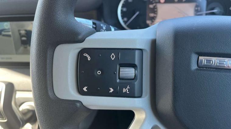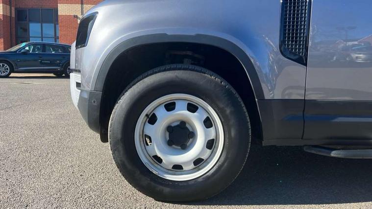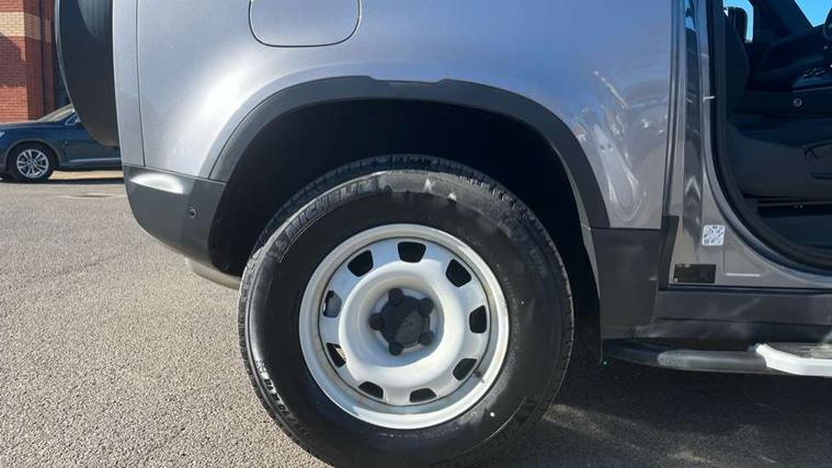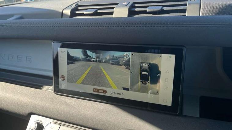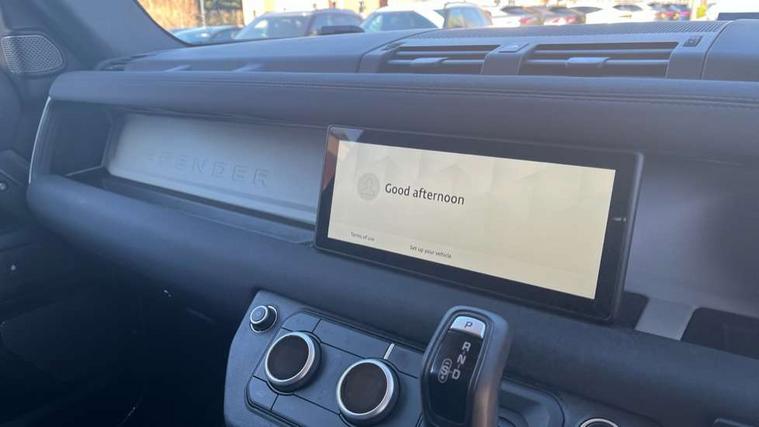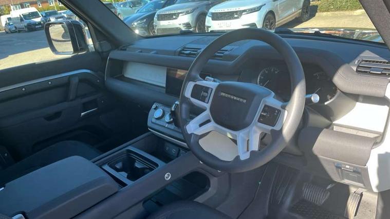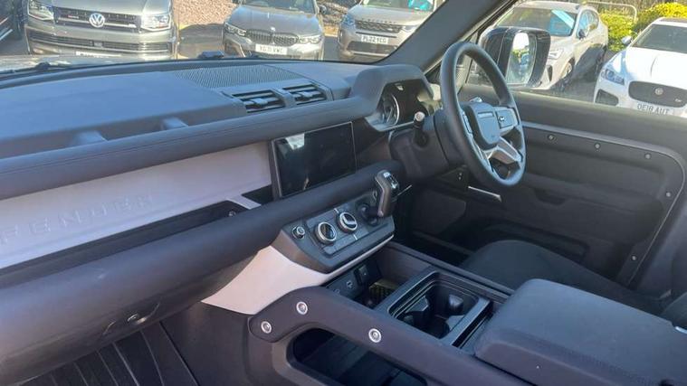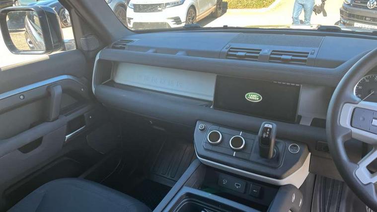 Customer Configurable Autolock, 11.4" touchscreen, 360 parking aid, 3D Surround Camera with 360 View, 180 Rear View, Front Traffic Detection, Forward Vehicle Guidance, Tow Hitch Assist and clear sight Ground View, Brake Hold, Driver condition monitor, Electric power assisted steering (EPAS), Lane keep assist, Less wireless charger, Low traction launch, Pivi pro connected, Traffic sign recognition adaptive speed limiter, Trip computer, Tyre pressure monitor, Wade Sensing, Android Auto, Apple CarPlay, DAB Radio (Digital Audio Broadcasting), Sound system with 140W and 4 speakers, Alpine lights, Assisted tailgate, Automatic headlights and rain sensitive front wipers, Centre high mounted stop light, Electric heated/power fold door mirrors with approach lights and auto dimming driver side, Electric windows with one touch open/close and anti-trap, Exterior signage panel, Follow me home lighting, Heated rear window with timer, Heated windscreen, LED tail light, Privacy glass, Puddle lights, Rear fog lights, Rear wash wiper, Side-hinged tailgate, Standard roof, Standard tread plates, 40:20:40 fixed rear seats, 8 way heated semi powered front seats with manual headrest, Additional lashing points, Cabin lighting, Carpet mats, Dual zone climate control, Durable rubber cabin flooring, Fabric upholstery, Footwell lights, Full height bulkhead behind row 1 seats, Glovebox storage, High sided rubber mats, Loadspace cover, Loadspace hooks, Loadspace rubber mat, Lockable and illuminated underfloor storage compartment (x1 under boot floor), Manual adjustable steering column, Overhead stowage for sunglasses, Rear centre headrest, Rear reading light, Sunvisors with illuminated vanity mirrors, Twin front cupholders, Upgraded loadspace LED lighting, Online pack - Defender with data plan, Brake pad wear indicator, Electronic traction control, Emergency braking, Front airbags, with passenger seat occupant detector, Power operated child locks, Remote for (e-Call, Optimised assistance call, InControl app, Climate, beep and flash and door), Seat belt reminder, Intrusion sensor, Locking wheel nuts, 8 speed automatic transmission, ABS and EBA, All wheel drive, CBC - (Cornering brake control), Coil suspension system, Dynamic stability control, Electronic brake force distribution, Electronic park brake, Gradient acceleration control, Hill Descent Control, Hill start assist, Particulate filter (DPF), Push button start, Roll stability control, Trailer stability assist, Twin speed transfer box (high/low range),
