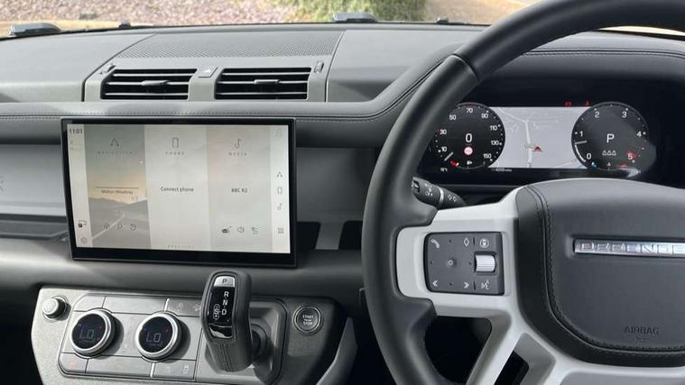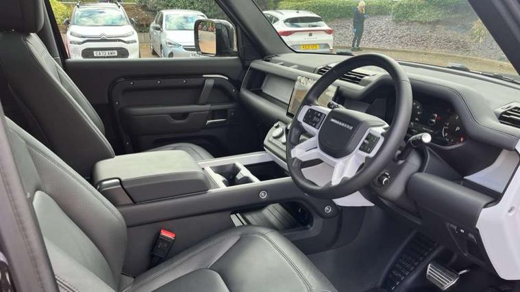 1 x USB-C (power only) & 1 x USB-C (power & data) in Row 1, 2 x USB-C in Row 2, 11.4" touchscreen, 360 degree parking aid, 3D Surround Camera with 360 View, 180 Rear View, Front Traffic Detection, Forward Vehicle Guidance, Tow Hitch Assist and clear sight Ground View, Adaptive cruise control, Android Auto, Apple CarPlay, Blind spot assist, Bluetooth system, Brake pad wear indicator, Clear exit monitor, Connected navigation pro, Driver condition monitor, Electric power assisted steering (EPAS), Interactive driver display, Lane keep assist, Push button start, Rear collision monitor, Rear traffic monitor, Traffic sign recognition with adaptive speed limiter, Trip computer, Wireless device charging, 8 speed automatic transmission, All wheel drive system, Twin speed transfer box, DAB Radio (Digital Audio Broadcasting), Meridian 700w surround sound audio system with 15 speakers, Pivi pro connected, Automatic headlight levelling, Automatic headlights, Black exposed rear recovery eyes, Body coloured bonnet, Centre high mounted stop light, Electric heated/power fold door mirrors with approach lights and auto dimming driver side, Electric windows with one touch open/close and anti-trap, Follow me home lighting, Front fog lights, Heated rear window with timer, Heated windscreen, Illuminated metal treadplates with brand name script, LED tail lights, Matrix LED headlights with signature DRL, Panoramic rear side glass, Privacy glass, Puddle lights, Rain sensing windscreen wipers, Rear fog lights, Rear wiper, Side hinged tailgate, Sliding panoramic roof, Standard tail door, Trailer stability assist, X-Dynamic badge, 12V power socket in loadspace, 3 seat bench in 2nd row, Alpine lights, Configurable cabin lighting, Durable rubber cabin flooring, Durable rubber loadspace flooring, Electric reach + rake adjustable steering column, Electrically adjustable steering column, Extended leather upgrade, Flat load space floor tray, Footwell lights, Front head restraints, Heated steering wheel, Loadspace cover, Loadspace Hook, Manual Tip & Slide front passenger seat, Multifunction steering wheel, Overhead stowage for sunglasses, Rear headrests, Rear ISOFIX, Rear reading lights, Row 2 seats with forward folding seat base, Single front passenger seat, Soft close tail door, Standard seat configuration, Storage glovebox, Sunvisors with illuminated vanity mirrors, Twin front cupholders, Non-smoker package, Online pack with data plan - Defender, 5 x 3 point seatbelts, ABS, Brake hold function, Cornering brake control (CBC), Customer configurable autolock, Driver and passenger airbags, DSC - Dynamic Stability Control, EBD - Electronic brakeforce distribution, Electric parking brake (EPB), Emergency brake assist, Emergency braking, ESP + traction control, Front airbags with passenger seat occupant detector, HDC - Hill descent control, Hill launch assist, Low traction launch, Remote for (e-Call, Optimised assistance call, InControl app, Climate, beep and flash and door), RSC - Roll stability control, Seat belt reminder, TPMS (Tyre pressure monitoring system), Alarm, Immobiliser, Intrusion sensor, Keyless entry, Locking wheel nuts, Secure tracker pro,
