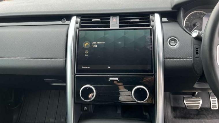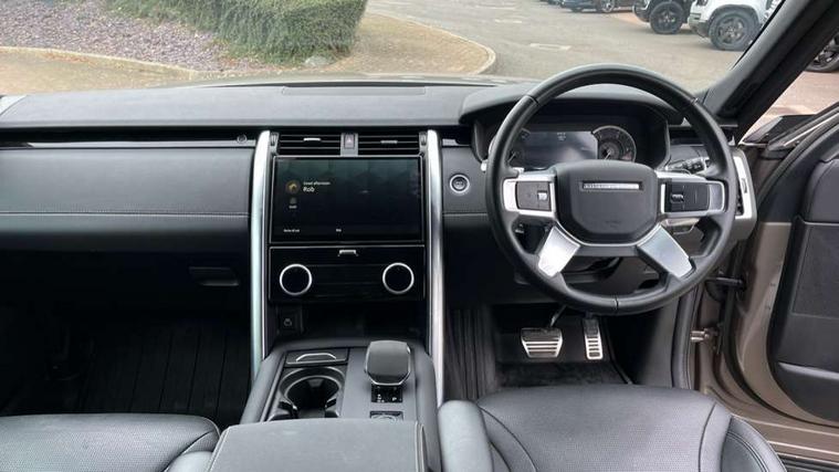 11.4" touchscreen, 3D surround camera, Adaptive cruise control, Android Auto, Apple car play, Blind spot assist, Driver condition monitor, Electric power assisted steering (EPAS), Emergency services call system, Front and rear parking aid, Lane keep assist, Power inner tailgate, Push button start, Rear collision monitor, Rear traffic monitor, Remote, Remote boot release, Service interval indicator, Speed proportional steering, Sportshift selector, Stop/start system, Traffic sign recognition with adaptive speed limiter, Trip computer, Wade Sensing, Adaptive dynamics, Dynamic stability control, Electronic air suspension, Front axle open differential, Digital Audio Broadcast radio-DAB, Dynamic volume control, Pivi pro connected, USB/aux input socket, Acoustic laminated windscreen, Animated directional indicators, Auto dimming interior rear view mirror, Automatic headlight levelling, Automatic headlights, Body colour bumpers, Body colour door handles, Centre high mounted stop light, Electric heated/power fold memory door mirrors with approach lights and auto dimming driver side, Electric windows with one touch open/close and anti-trap, Heated rear window, Heated windscreen, LED darkend tail lights, Narvik black Discovery script, Privacy glass, Puddle lights, Rain sensing windscreen wipers, Rear fog lights, Rear side wing doors, Rear wash/wipe, Trailer stability assist, Variable intermittent wiper, 12V power sockets, 12V USB charging socket in loadspace, 2 seat bench in 3rd row, 3 seat bench in 2nd row, Central hinged twin lidded storage, Ebony morzine headlining, First and second row door bins, Footwell lights, Front and rear 12V with front USB, Front passenger seat isofix location point, In-facia storage, Isofix child seat preparation for front passenger seat, Loadspace cover, Loadspace Hook, Loadspace light, Lockable glovebox, Lower centre console storage, Luggage tie downs in loadspace, Metal treadplates with R-Dynamic branding, Multi function steering wheel, Overhead lighting console, Premium carpet mats, Rear ISOFIX, Shopping bag hook, Single front passenger seat, Storage glovebox, Sunvisors with illuminated vanity mirrors, Third row storage, Twin front cupholders with cover, USB with 12V socket in centre console, Online pack with data plan - Discovery, R-Dynamic black exterior pack - Discovery, 3x3 point rear seatbelts, Anti-lock braking system (ABS), Brake pre-fill technology, Cornering brake control, Curtain airbags, Customer configurable autolock, Driver and passenger airbags, EBD - Electronic brakeforce distribution, Electronic traction control, Emergency brake assist, Emergency braking, ESP, Front side airbags, Gradient acceleration control, Hill descent control, Hill launch assist, Power operated child locks, Rear airbags, Roll stability control, Seat belt reminder, Torque vectoring brake, Tyre pressure monitoring system, Immobiliser, Intrusion sensor, Keyless entry, Locking wheel nuts, Remote central locking, All terrain tyres,
