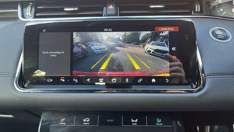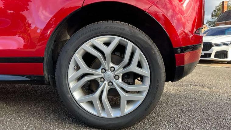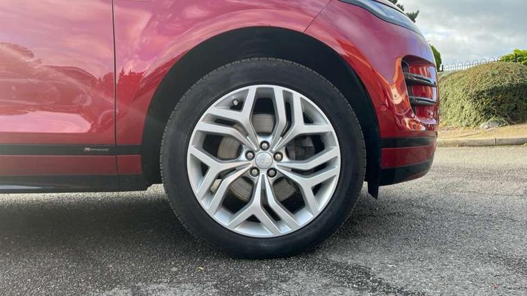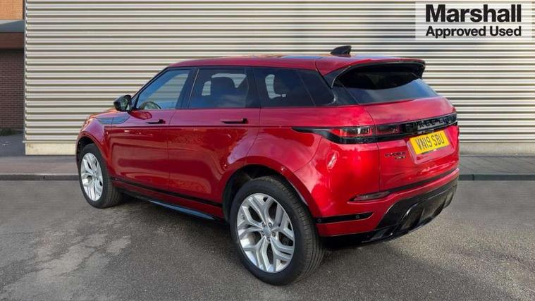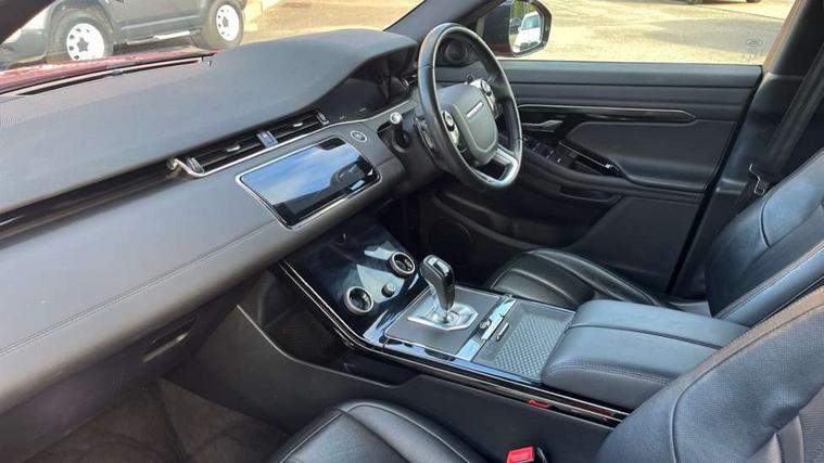 360 degree parking aid, Android Auto, Apple car play, Bluetooth connectivity, Brake pad wear indicator warning light, Clear exit monitor, Driver condition monitor, Duo touch pro, Electronic power assisted steering (EPAS), InControl remote, Interactive Driver display instrument cluster, Land Rover InControl apps, Lane keep assist, Navigation pro system, Park assist - Parallel, perpendicular and parking exit, Pro services and wifi hotspot, Push button starter, Rear traffic monitor, Smart settings, Traffic sign recognition with adaptive speed limiter, Voice control system, All terrain progress control, Efficient Driveline, Passive suspension, Terrain Response 2 Auto, Digital Audio Broadcast radio-DAB, Steering wheel mounted controls, Automatic headlight levelling, Electric windows with one touch open/close and anti trap, Evoque and R-Dynamic badge, Flush deployable exterior door handles, Heated rear window with timer, Heated washer jets, Heated windscreen, Power fold, auto-dimming, heated door mirrors with memory and approach lights, Rain sensing windscreen wipers, Rear fog lights, Shadow atlas bonnet and tailgate script, Tailgate spoiler, 40:20:40 split folding rear seats, Black gearshift paddles, Bright metal pedals, Isofix system on outer rear seats, Overhead lighting console, Overhead stowage for sunglasses, Passive front head restraints, Rear air vents, Rear centre headrest, Sunvisors with illuminated vanity mirrors, Twin front cupholders with cover, Twin sliding front centre armrest, Two zone climate control, Anti-lock braking system (ABS), Customer configurable autolock, DSC - Dynamic Stability Control, Electronic brake force distribution, Electronic parking brake, Electronic traction control, Front and rear seatbelt reminder, Hill descent control, Hill launch assist, Low traction launch, Power operated child locks, Roll stability control, Six airbags - Driver and passenger airbags/driver knee airbag/front side airbag and curtain airbags, Torque vectoring brake, Tyre pressure monitoring system, Alarm, Immobiliser, Intrusion sensor, Locking wheel nuts,