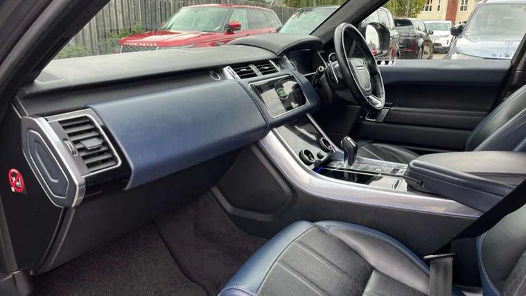 Bluetooth telephone connection, Clear exit monitor, Driver condition monitor, Electric gesture tailgate/boot lid, InControl secure, Mist sensor, Navigation pro system with 10" touch screen, app interface and media storage, Pro services and wifi hotspot, Push button starter, Rear cross traffic alert, Rear park distance control, Speed sensitive power steering, TFT Virtual Instrument Panel, Traffic sign recognition, Trip computer, 7 kW onboard charger, Adaptive dynamics, Electronic air suspension, Electronic differential lock, Terrain Response 2 with dynamic program, Twin speed transfer box, Bluetooth audio streaming, DAB Digital radio, InControl protect, USB/aux input socket, Adaptive brake lights, Auto dimming door mirrors, Auto dimming rear view mirror, Autobiography badge, Automatic headlights, Body coloured side sills and bumpers, Electric heated, adjustable, folding door mirrors with memory + approach lamp, Engine cover, Follow me home headlights, Front fog lights, Heated rear window, LED rear lamps, Rear wash/wipe, Remote window closing, Trailer stability assist, Twin bright tailpipes, 2 way active front head restraints, 2 way rear head restraints, 60/40 Split fold rear seat/load through facility, Auto air recirculation, Bright metal foot pedals, Centre cooler storage box, Climate control memory, Configurable Ambient interior lighting, Driver's footrest, Front and rear cupholders, Front and rear premium carpet mats, Front door storage bin, Front map lights, Front seat back map pockets, Front stowage pocket, Front/rear passenger grab handles, Glovebox, Heated steering wheel, Isofix child seat preparation, Leather steering wheel with Atlas inserts, Luggage compartment lighting, Multifunction steering wheel, Pollen filter, Reach/rake electric adjustable steering column + entry/exit tilt away, Rear centre armrest, Roller blind loadspace cover, Satin chrome gearshift paddles, Sports pedals, Three 12V accessory power outlets, Extended leather pack - Range Rover Sport, InControl connect Pack - Range Rover Sport, 3 point seatbelts on all seats, ABS + EBD + EBA, Auto lock system when vehicle in motion, Auto locking differential, Cornering brake control (CBC), Curtain airbags, DSC - Dynamic Stability Control, Dual stage driver/passenger airbags, Electric child locks, Electronic parking brake, Electronic traction control, Front seatbelt pretensioners, Front side airbags, Height adjustable front seatbelts, Hill descent control, Low traction launch, Roll stability control, Seatbelt warning, Torque vectoring brake, Tyre pressure monitoring system, Immobiliser, Intrusion sensor, Keyless entry, Locking wheel nuts, Perimetric and volumetric anti theft alarm, Remote locking, Tyre repair kit,