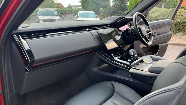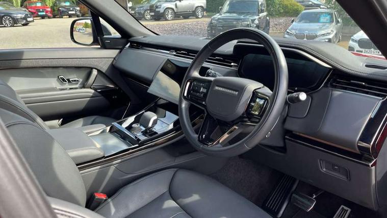 13.1" Touchscreen, 3D 360 degree surround camera with wade sensing, Adaptive cruise control with steering assist, Android Auto, Apple car play, Blind spot assist, Bluetooth connectivity streaming, Driver condition response, Eco mode, Electric power assisted steering (EPAS), Interactive Driver display instrument cluster, Lane departure warning system, Lane keep assist, Push button start, Rear collision monitor, Rear traffic monitor, Remote, Traffic sign recognition with adaptive speed limiter, Trip computer, Wireless device charging, 8 speed automatic transmission, Adaptive dynamics, All wheel drive system, Automatic access height, Dynamic air suspension, Terrain Response 2, DAB Radio (Digital Audio Broadcasting), Incontrol protect - SOS emergency call with automatic collision detection, optimised assistance call and Incontrol remote app essential, Pivi pro connected, USB/aux input socket, Adaptive brake lights, Automatic headlight levelling, Automatic headlights, Centre high mounted stop light, Electric heated/power fold memory door mirrors with approach lights and auto dimming driver side, Electric windows with one touch open/close and anti trap, Flush deployable exterior door handles, Follow me home lighting, Front and rear recovery eyes, Headlight power wash, Heated rear window, Heated washer jets, Heated windscreen, LED tail lights, Metal load space scuff plates, No badges, Rain sensing windscreen wipers, Rear animated directional indicators, Rear fog lights, Rear side wing doors, Rear wash/wipe, Remote window closing, Side repeater indicators in mirror, Trailer stability assist, Winter wiper park position, 3 seat bench in 2nd row, 60:40 seats with power recline and loadthrough, Air quality sensor, Auto air recirculation, Bright metal foot pedals, Centre console with armrest, Customer configurable single point entry, Driver's footrest, Easy boot loading, Ebony console door armrests and seatbelts, Electric adjustable steering column, Extended leather upgrade, Front and rear cupholders, Front door storage space, Front head restraints, Front map lights, Front seat back map pockets, Front stowage pocket, Front/rear passenger grab handles, Gearshift paddles, Heated steering wheel, Isofix child seat preparation, Loadspace cover, Loadspace Hook, Loadspace light, Loadspace mounting provisions, Lockable glovebox, Luggage tie-downs in loadspace, Multifunction steering wheel, Pollen filter, Power socket, Rear centre armrest, Rear head restraints, Rear ISOFIX, Single front passenger seat, Three 12V accessory power outlets, Upper secondary glovebox, Online pack with data plan - Range Rover Sport, 3 point seatbelts on all seats, Anti-lock braking system (ABS), Brake pre-fill technology, Configurable autolock, Cornering brake control (CBC), DSC - Dynamic Stability Control, EBD - Electronic brakeforce distribution, Electric parking brake, Electronic traction control, Emergency braking, Front seatbelt pretensioners, Front side airbags, Height adjustable front seatbelts, Hill descent control, Hill launch assist, Low traction launch, Occupant protection assist, Passenger seat occupant detector with front airbags, Power operated child locks, Roll stability control, Seatbelt warning, TPMS (Tyre pressure monitoring system), Immobiliser, Intrusion sensor, Keyless entry, Locking wheel nuts, Perimetric and volumetric anti theft alarm, Remote locking, Moonlight noble chrome interior finishers,
