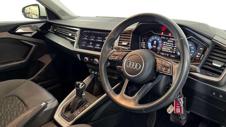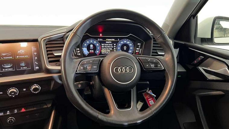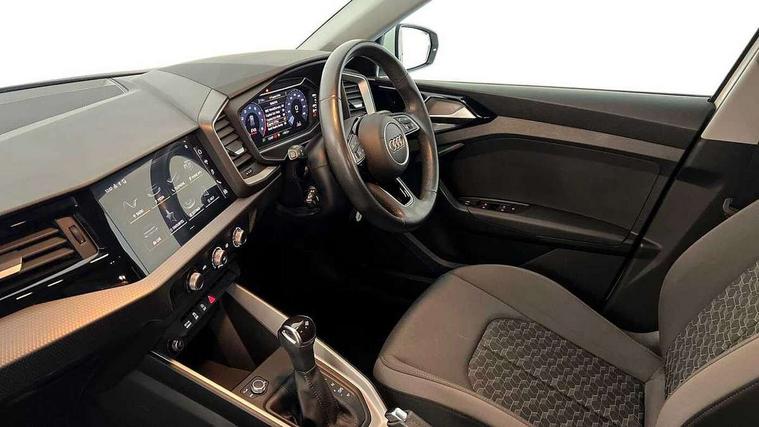 10.25" Digital instrument cluster display classis style instrument dials + speed, odometer, time, outside temperature, telephone menu + fuel level warning, Audi drive select - power steering assistance + engine + gear shift 3 preset modes (auto, dynamic, efficiency and an Individual mode), Audi smartphone interface with connect compatible smartphone via USB directly MMI display + Nav, music, third party apps controlled via MMI controller, Automatic start/stop system, Bluetooth interface, Cruise control, Driver's information system, Electromechanical power steering, Emergency e-call, Lane departure warning system, Rear parking sensor, Service interval indicator, Speed limiter, Voice control system, Washer fluid level indicator, Dynamic suspension, 2 x USB type C connection points, 6 passive loudspeakers, DAB Digital radio, MMI radio plus with 10.1" colour MMI display screen and MMI touch, Auto dimming rear view mirror, Body coloured bumpers, Body coloured door mirrors, Electric front and rear windows, Electrically adjustable, heated, folding door mirrors with integrated LED side indicator, Front side air inlets in grained matt black and C frame in anthracite black, Heat insulating glass windscreen and side windows, Heated rear windscreen, High level LED brake light, LED headlights with LED rear lights + dynamic rear indicators + headlight adjustment and high beam, turning light + LED daytime running lights, Radiator grille and rear diffuser in matt anthracite black, Radiator protective grille frame in matt aluminium silver, Rain and light sensors, Rear fog lights, Rear side wing doors, Rear wiper, Side front spoiler lips in grained matt black, 12V socket in centre console with two cup holders, 3 rear seats with headrests, 3 seat bench in 2nd row, 3 spoke leather multifunction plus steering wheel, 40:60 Split folding rear seat or folded fully, Black front and rear floor mats, Door sill trims with aluminium inlay, Driver and passenger seat with manual height adjust with forward and backwards adjustment, Front head restraints, Front passenger seat, Grey cloth headlining, Height and reach adjustable steering wheel, ISOFIX child seat mounting for front passenger and outer rear seats including top tether attachment point of outer rear seats, Leather gear knob with aluminium trim, Leatherette handbrake grip, Luggage compartment light with front and rear reading lights, Manual air conditioning, Manually adjustable lumbar support in front seats, Novum cloth upholstery with front sport seats, Luggage compartment pack - A1, 3x3 point rear seatbelts, Audi pre-sense front with pedestrain and cyclist recognition, Brake assist function, Driver and front passenger airbag with front side and head airbags, Electronic Stability Control including ABS, EBD, ASR and EDL, Front passenger airbag deactivation switch, Hill hold assist, Manual rear child locks, Seatbelt height adjustment for front seats, Seatbelt monitoring, Tyre pressure warning light, Warning triangle and first aid kit, Anti theft alarm, Anti theft wheel bolts and loose wheel warning, Immobiliser, Remote central locking with 2 foldaway keys, Aluminium trim for control switches, air vents and digital instrument cluster, Black dashboard, Silver grey accent areas including air vents, door handle recesses and centre console in diamond paint finish, Slate grey inlays polygon structure in fine paint finish,