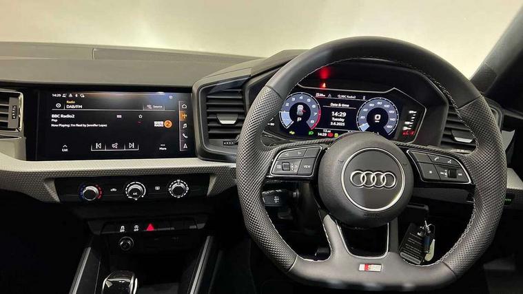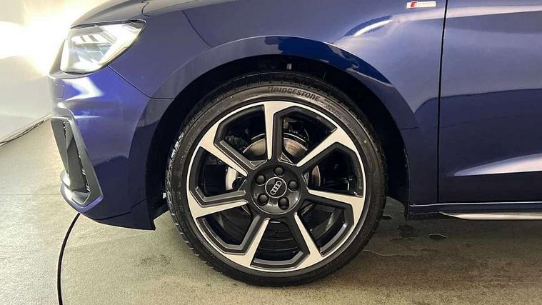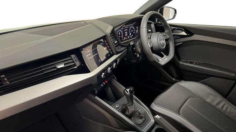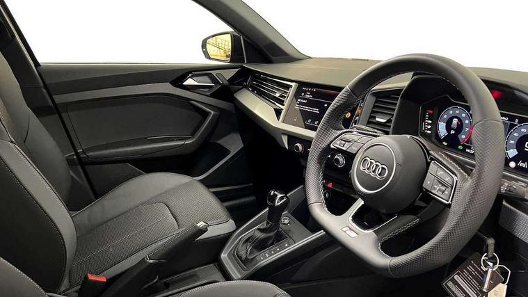 10.25" Digital instrument cluster display classis style instrument dials + speed, odometer, time, outside temperature, telephone menu + fuel level warning, Advanced driver attention and drowsiness monitor, Audi connect emergency call and service, Audi remote connect and control, Audi smartphone interface, Bluetooth interface, Camera based traffic sign recognition, Cruise control, Driver's information system, Electromechanical power steering, Lane departure warning system, Rear parking sensor, Service interval indicator, Speed limiter, Start stop system with recuperation, Voice control system, Washer fluid level indicator, Sports suspension, 2 x USB type C connection points, 6 loudspeakers, DAB Digital radio, MMI radio plus with 10.1" colour MMI display screen and MMI touch, Auto dimming rear view mirror, Black side skirts, Body coloured bumpers, Door sill trims with aluminium inlays and logo, Electric front and rear windows, Electrically adjustable, heated, folding door mirrors with integrated LED side indicator, Front side air inlets in grained matt black and C frame in anthracite black, Front wing badges, Headlight cleaning system, Heat insulating glass windscreen and side windows, Heated rear windscreen, High level LED brake light, LED daytime running lights, LED headlights with range control LED rear lights + dynamic rear indicators, Privacy glass, Radiator grille and rear diffuser in matt anthracite black, Radiator protective grille frame in matt aluminium silver, Rain and light sensors, Rear fog lights, Rear side wing doors, Rear wiper, Side front spoiler lips in grained matt black, 12V socket in centre console with two cup holders, 3 rear seats with headrests, 3 seat bench in 2nd row, 3 spoke flat bottomed multi-function plus leather steering wheel with S badging, grips in preforated leather, contrast stitching and paddle shift, 40:60 Split folding rear seat or fully collapsed, Black cloth headlining, Front and rear velour black floor mats with contrast stitching in fine silver, Front head restraints, Front passenger seat, Height and reach adjustable steering wheel, Interior lighting includes roof module, front and rear reading lights and right luggage compartment lighting, ISOFIX child seat mounting for front passenger and outer rear seats including top tether attachment point of outer rear seats, Leather gear knob with aluminium trim, Leather handbrake grip, Manual air conditioning, Manual height adjustable for driver and front passenger seat, Manually adjustable lumbar support in front seats, Stainless steel pedals, Ambient lighting package - A1, Black styling pack - A1 Sportback Black Edition, Luggage compartment pack - A1, 3x3 point rear seatbelts, Audi pre-sense front with pedestrain and cyclist recognition, Brake assist function, Driver and front passenger airbag with front side and head airbags, Electronic Stability Control including ABS, EBD, ASR and EDL, Front passenger airbag deactivation switch, Hill hold assist, Manual rear child locks, Seatbelt height adjustment for front seats, Seatbelt monitoring, Tyre pressure loss indicator, Warning triangle and first aid kit, Anti theft alarm, Anti theft wheel bolts, Immobiliser, Remote control key with safelock, Aluminium trim for control switches, air vents and digital instrument cluster, Black dashboard, Silver grey inlays polygon structure in diamond paint finish, Structured grey accent surfaces insert of air vents, interior door handle recesses and centre console in quartz paint finish,