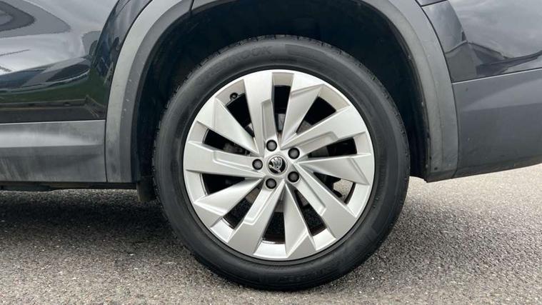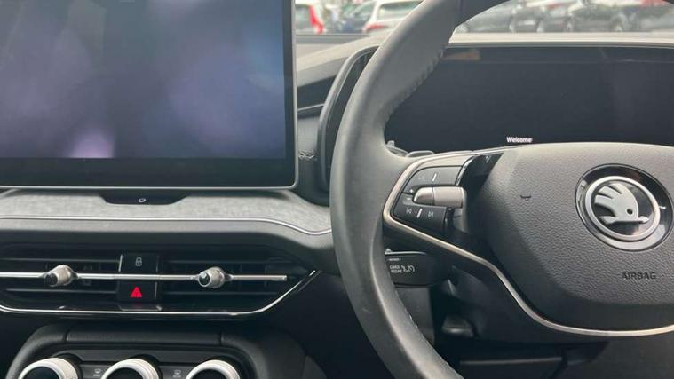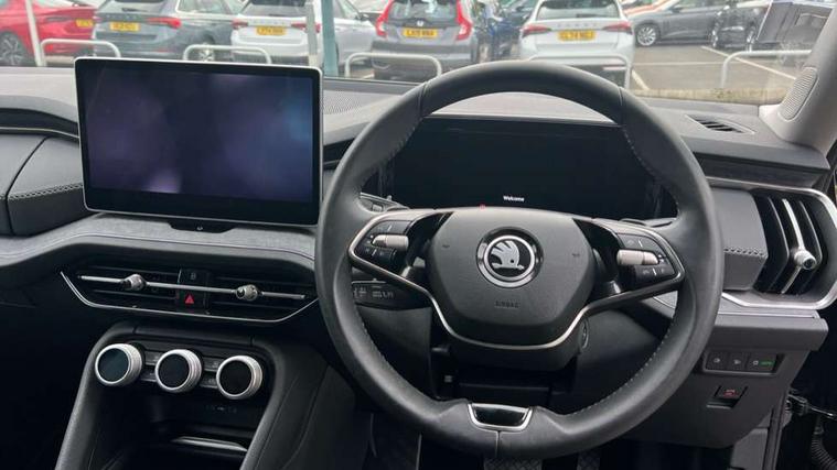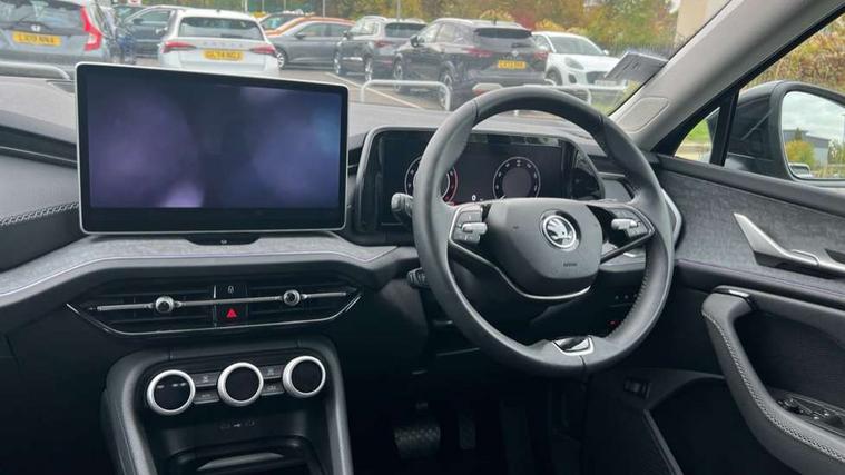 13" satellite navigation touchscreen display, Blind spot detection with door exit warning, Bluetooth system, ChatGPT functionality, Drive mode selector, Driver alert with fatigue sensor, Driver drowsiness alert system, Dry display cleaner, e call+, Front cross traffic assist, Lane assist, PAS, Rear traffic assist, Tailgate unlocking from outside, Traffic sign recognition, USB C Port x 2 in front centre console, Virtual Cockpit - 10.25" digital display, Voice control system, Wireless charging for two smartphones (15W) with cooling function, Wireless SmartLink for Apple CarPlay and Android Auto, Stop/start function, 2x USB-C in the rear, DAB Digital radio, Aero front windscreen wipers with intermittent function, Auto dimming rear view mirror, AWL (all weather lighting) and all weather light with cornering function, Black wheel arch surrounds, Body colour bumpers, Body colour door mirrors and handles, Cornering light and poor weather light, Electric folding /adjustable/separted heated/folding door mirrors, auto dimming with boarding sports and memory function, Electric front and rear windows, Exterior black decorative trims, Heat insulating glass in windshield, Heated rear window, Ice scraper in fuel tank cap, Invisible tailpipe, LED daytime running lights, LED rear fog light, LED third brake light in rear spoiler, Light assistant with automatic headlight control and coming home feature, Logo projection in door mirrors, Privacy glass, Rear side wing doors, Rear spoiler, Rear window wiper, Red decorative strip between rear LED lights, Safety reflectors on front and rear doors, Window control switches with black trim, Windscreen wipers with rain sensor, Without engine designation, 1.5l bottle holder points in all door, 12V socket in boot, 1x centre rear reading light, 2 seat bench in 3rd row, 3 configurable smart dials with 32mm coloured display, 3 seat bench in 2nd row, 4 foldable roof handles with rear coat hooks, Ambient interior lighting - Dashboard, front-door stowage compartments, front and rear door panels and footwell lighting, Automatic gear selector on steering wheel, Chrome interior door handles, Driver/front passenger reading lights, Fabric headlining, Fixed bench 40:60:40 split folding backrests, Front and rear floor mats, Front centre armrest with jumbo box storage compartment, cup holder and 12V socket, Front courtesy lights, Height adjustable front headrests, Isofix child seat fittings in outer middle row rear seats and front passenger with top tether, Manually adjustable steering column, Pollen filter, Rear centre armrest with cupholders, Rear seat boot backrest release, Retractable luggage compartment cover, Single front passenger seat, Sliding trunk cover, Small Bags on the inner sides of the front backrests, Storage pocket including mobile phone pockets on the backs of the front seats, Sunvisors with illuminated vanity mirrors, Three rear height adjustable headrests, Ticket holder on A Pillar, Tri zone climate control, Umbrella in door panel x1 made from sustainable materials, Upper and lower glovebox with card holder and coin compartment, USB C port by rear view mirror for charging only (15W), Exterior styling pack - Kodiaq, Auto door release and activation of warning lights in the event of an accident, Driver and front passenger airbag with knee airbag and front passenger airbag deactivation, Electric child locks, Electronic parking brake, ESC (incl. ABS+EMD+MSR+ASR+EDL+HBA+DSR+RBS+ESBS+MCB+TSA+XDS), Front assist with braking reaction to vehicles, pedestrians and cyclists, Front disc brakes, Fuel cut off safety device, Height adjustable front 3 point seatbelts + pretensioners, Hill hold control, Junction assist with automatic emergency braking, Rear disc brakes, Safety vest holder in door, Seat belt reminder for all seats, Three point rear seat belts, Two tone horn, Tyre pressure monitor, Anti-theft wheel bolts, Immobiliser, Remote central locking with 2 keys, Breakdown kit,