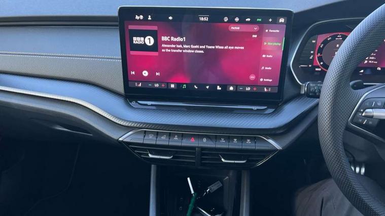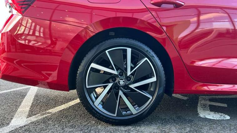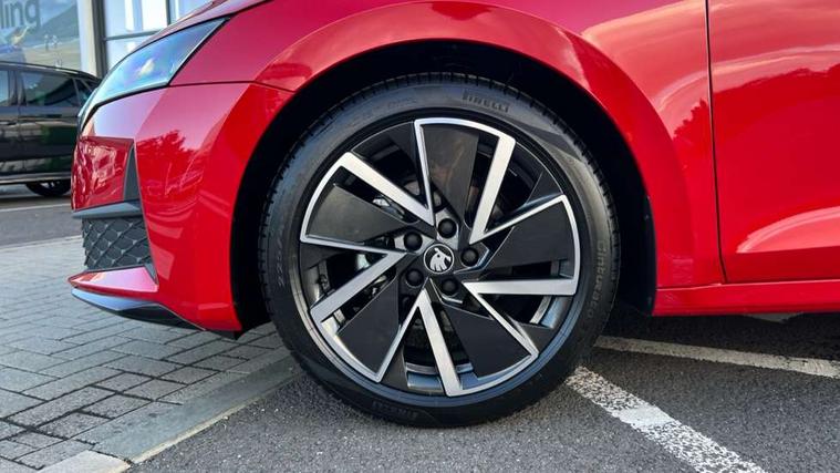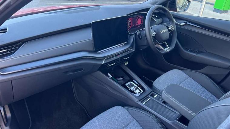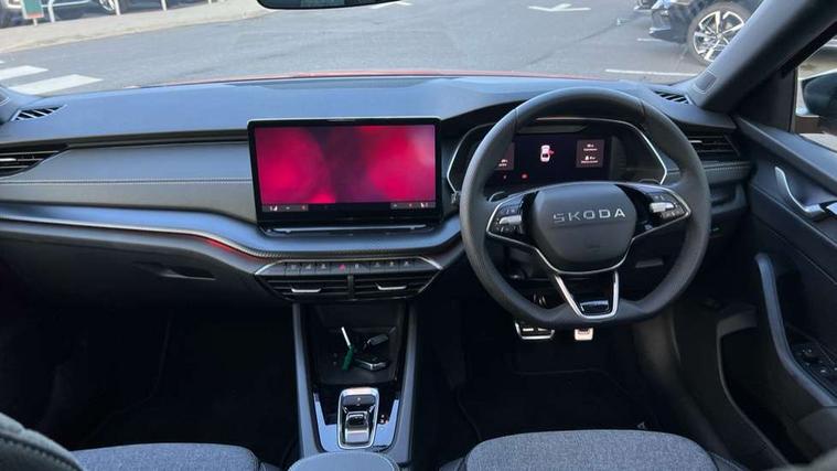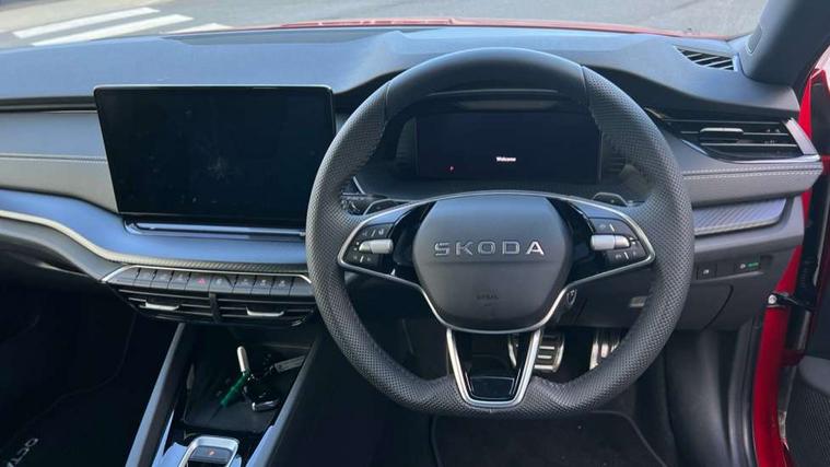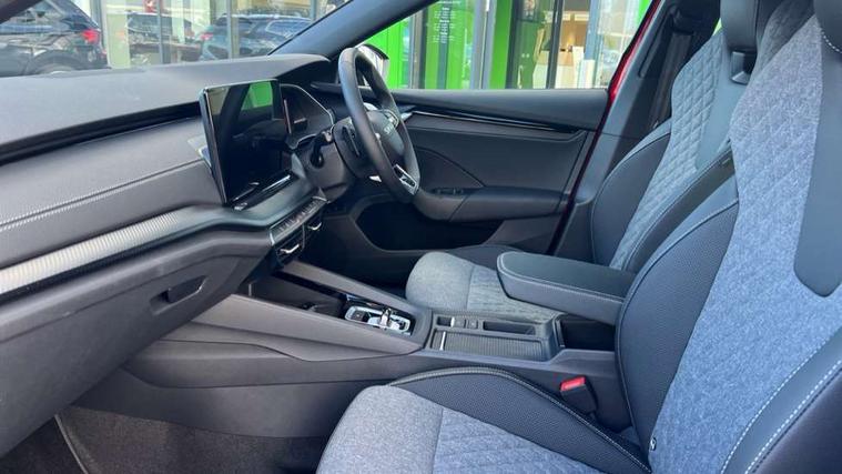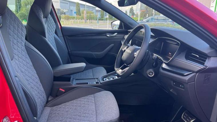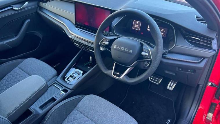 1x USB Typc C port in rear view mirror, 4x USB Type C ports - 2x in front centre console and 2x in rear (45W), Drive mode selection, Driver fatigue sensor, eCall emergency system, Front assist system, Progressive dynamic steering, Traffic sign recognition, Turn Assist, Virtual Cockpit - 10.25" digital display, Voice control system, Wireless charging (15W) with cooling function, Wireless SmartLink for Apple CarPlay and Android Auto, Sports suspension with 15mm lower, 13" touchscreen display with navigation, DAB Digital radio, Aero front windscreen wipers with intermittent function, Auto dimming rear view mirror, Body colour bumpers, Body colour door handles, Chrome strip in lower front bumper, Electric front and rear windows, Exterior gloss black sports styling including front grille, window surrounds, door mirrors and badging, Gloss black diffuser, Gloss black spoiler, Heated rear windscreen, High beam control, High level third brake light, Ice scraper in fuel cap, LED daytime running lights, Logo projection in front doors, Rain and light sensors, Rear fog light on one side and reversing lights on both sides, Rear privacy glass, Rear side wing doors, Rear wiper, 12 volt socket in boot, 3 rear headrests, 3 seat bench in 2nd row, 4 foldable roof handles, Aluminium pedals, Boot net programme, Front head restraints, Front sport seats, Heated front seats, Illuminated glovebox, Interior door handles in dark chrome, Jumbo Box storage, Luggage compartment lighting x2 lights, Mechanical rear seat release from boot, Parcel shelf - folding, Single front passenger seat, Steering wheel in black leather with black stitching, Storage compartments in left and right of boot, Sun visors with mirrors, Sunglasses storage, Three spoke leather sports multifunction steering wheel with paddles, Ticket holder, Umbrella in door panel, Unsplit rear bench seat, split folding backrest with centre armrest with cupholder, SportLine Design Selection pack - Octavia, 3x3 point rear seat belts, Alarm with interior monitoring, tilt sensor and back up horn, Curtain airbags and front side airbags, Driver and front passenger airbags, Drivers knee airbag, Electronic parking brake, ESC including ABS, EBV, MSR, ASR, EDS, HBA, DSR, Front central airbag, Hill hold assist, ISOFIX on front passenger seat and outer rear seats, Passenger airbag deactivate switch, Three point seat belts in front and rear, Two tone horn, Tyre pressure monitor, Visual and acoustic seat belt reminder, Warning reflectors in front door, Anti-theft wheel bolts, Keyless entry and start/stop, Remote central locking, Gloss black air vent surrounds,