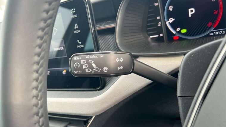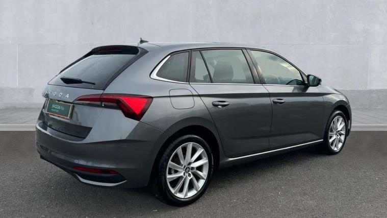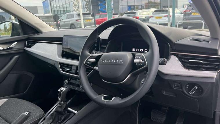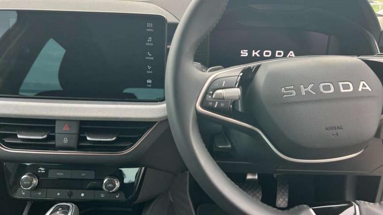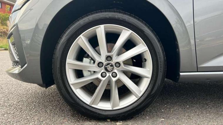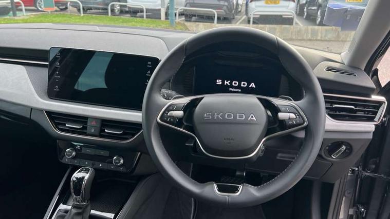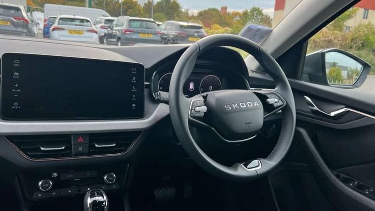 Advanced driver attention and drowsiness monitor, Bluetooth, e-Call (emergency call), Front assist system, PAS, Rear parking sensors, Rear view camera, Speed limiter, Tailgate, Traffic sign recognition, Virtual Cockpit - 10.25" digital display, Voice control system, Wireless smartlink, 4 USB C ports, 8 Speakers, 9.2" Skoda navigation display, DAB radio, Auto dimming rear view mirror, Automatic headlamp activation with Coming home and Leaving home feature, Automatic high/low beam, Automatic intermittent wipers, Body colour bumpers, Body colour door mirrors and handles, Chrome moulding around grille, Chrome window frames, Front and rear electric windows, Heated rear window, LED 3rd brake light, LED brake lights, LED daytime running lights, LED front turning lights, LED high beam, LED low beam, Light sensors, Privacy glass, Rear LED fog light, Rear side wing doors, Rear wiper, Tinted windows, Unique dark chrome design logo on alloy wheels, 12V socket in luggage compartment, 3 seat bench in 2nd row, Ambient lighting in white/red, Black / Copper armrest stitching, Cargo elements, Chrome inner door handles, Copper hotstamping, Door inserts in accent black, Driver and passenger sun visors with vanity mirror, Dual zone climate control, Front and rear roof lights, Front centre armrest, Front head restraints, Glasses storage in roof liner, Height adjustable driver seat, Height adjustable passenger seat, Ice scraper, Illuminated glove compartment, Inner circulation control with pollen filter, ISOFIX for front passenger seat, Isofix preparation for back seats, Leather gearknob and handbrake lever, Lodge cloth upholstery, Luggage net under rear parcel shelf, Manual lumbar support for front seats, Net package and top tether hooks in boot space, Pearl grey ceiling, Pocket on the back of both front seats, incl. mobile phone pockets, Rear centre armrest, Single front passenger seat, Skoda lettering on steering wheel, Textile floor mats, Third rear headrest, Ticket holder, Top tether for front passenger seat, Umbrella in driver's door, Convenience pack without rear camera - Scala, 3x3 point rear seatbelts, ABS, Child locks, Curtain airbags and front side airbags, Disc brakes, Driver and front passenger airbags, ESP, Hill hold control, Manual leather parking brake, One tone horn, Passenger airbag switch off function, Seatbelt reminder for driver and front passenger, Tyre pressure monitoring system, Anti theft alarm system with interior monitoring, backup horn and towing protection, Anti-theft wheel bolts, Remote central locking with 2 remote folding keys, SAFE function for remote central locking, Decorative inserts,