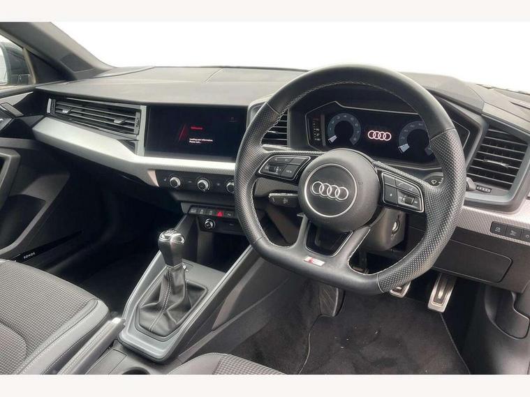 10.25" Digital instrument cluster display classis style instrument dials + speed, odometer, time, outside temperature, telephone menu + fuel level warning, Audi connect safety emergency and service including E-call, Audi drive select - power steering assistance + engine, Audi smartphone interface with connect compatible smartphone via USB directly MMI display + Nav, music, third party apps controlled via MMI controller, Automatic start/stop system, Bluetooth interface, Cruise control, Driver's information system, Electromechanical power steering, Emergency services call system, Lane departure warning system, Service interval indicator, Speed limiter, Voice control system, Washer fluid level indicator, Sports suspension, 1 x SDXC card reader, 2 x USB type C connection points, DAB Digital radio, MMI radio plus with 8.8" colour MMI display screen and MMI touch, Auto dimming rear view mirror, Black door mirrors, Black side skirts, Body coloured bumpers, Door sill trims with aluminium inlays and logo, Electric front and rear windows, Electrically adjustable, heated, folding door mirrors with integrated LED side indicator, Front side air inlets in grained matt black and C frame in titanium black, Heat insulating glass windscreen and side windows, Heated rear windscreen, High level LED brake light, LED headlights with LED rear lights + dynamic rear indicators + headlight adjustment and high beam, turning light + LED daytime running lights, Radiator protective grille frame in matt aluminium silver, Rain and light sensors, Rear diffuser strip in matt titanium black, Rear fog lights, Rear side wing doors, Rear wing door, Rear wiper, Side front spoiler lips in grained matt black, 12V socket in centre console with two cup holders, 3 rear seats with headrests, 3 seat bench in 2nd row, 3 spoke flat bottomed multi-function plus leather steering wheel with S badging, grips in preforated leather and contrast stitching, 40:60 Split folding rear seat or folded fully, Black cloth headlining, Driver and passenger seat with manual height adjust with forward and backwards adjustment, Front and rear black floor mats with contrast stitching in fine silver, Front head restraints, Front passenger seat, Height and reach adjustable steering wheel, ISOFIX child seat mounting for front passenger and outer rear seats including top tether attachment point of outer rear seats, Leather gear knob with aluminium trim, Luggage compartment light with front and rear reading lights, Manually adjustable lumbar support in front seats, Stainless steel pedals, Black styling pack - A1 Sportback Black Edition, LED interior lighting pack - A1, Luggage compartment pack - A1, 3x3 point rear seatbelts, Audi pre-sense front with pedestrain and cyclist recognition, Brake assist function, Driver and front passenger airbag with front side and head airbags, Electronic Stability Control including ABS, EBD, ASR and EDL, Front passenger airbag deactivation switch, Hill hold assist, Manual rear child locks, Seatbelt height adjustment for front seats, Seatbelt monitoring, Tyre pressure warning light, Warning triangle and first aid kit, Anti theft alarm, Anti theft wheel bolts and loose wheel warning, Immobiliser, Remote central locking with 2 foldaway keys, Aluminium trim for control switches, air vents and digital instrument cluster, Silver grey inlays polygon structure in diamond paint finish, Structured grey accent areas including air vents, door handle recesses and centre console in quartz paint finish, 18" 7 spoke rotor design alloy wheels in gloss anthracite black, diamond cut finish,